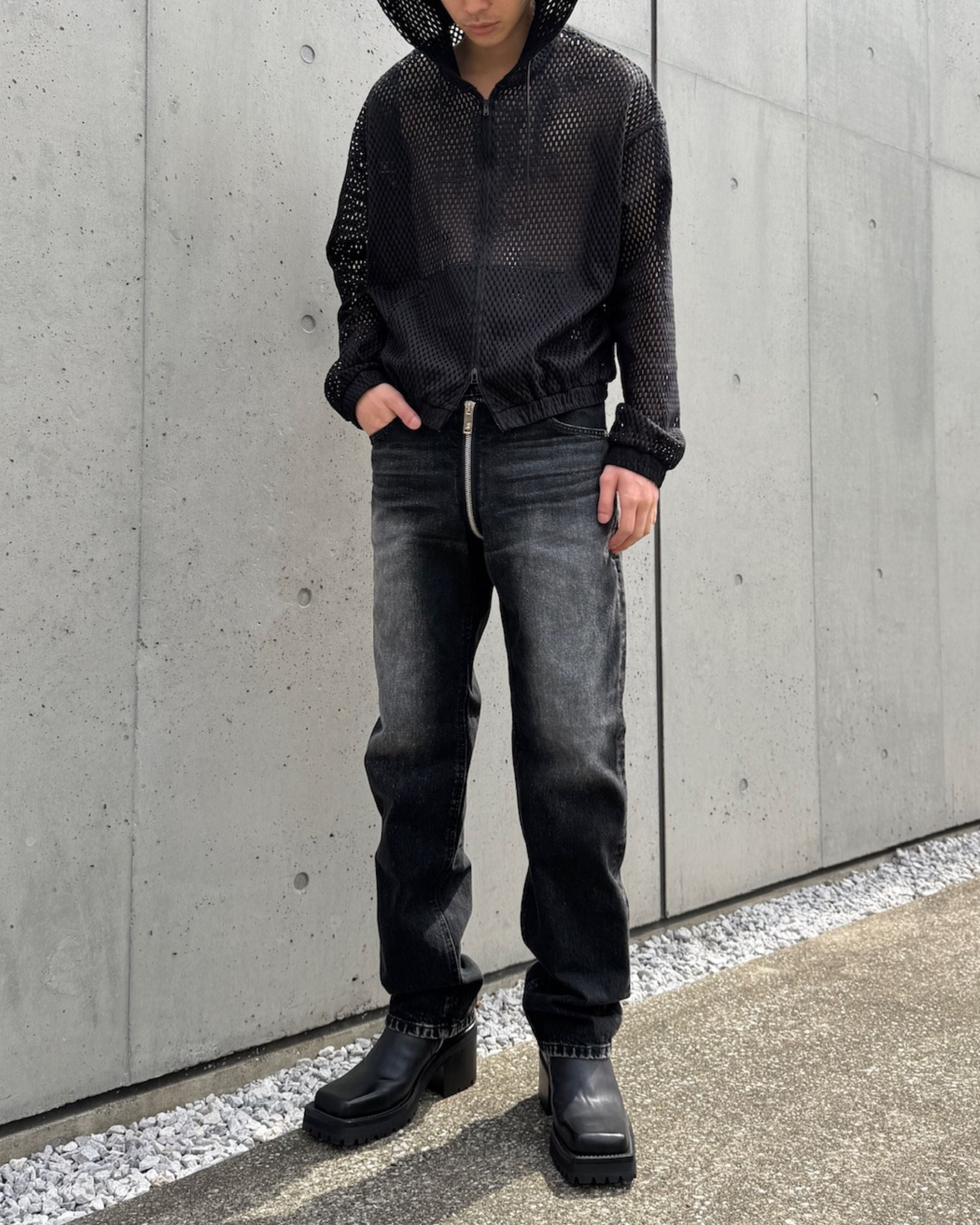 COTTON MESH ZIP-UP HOODIE