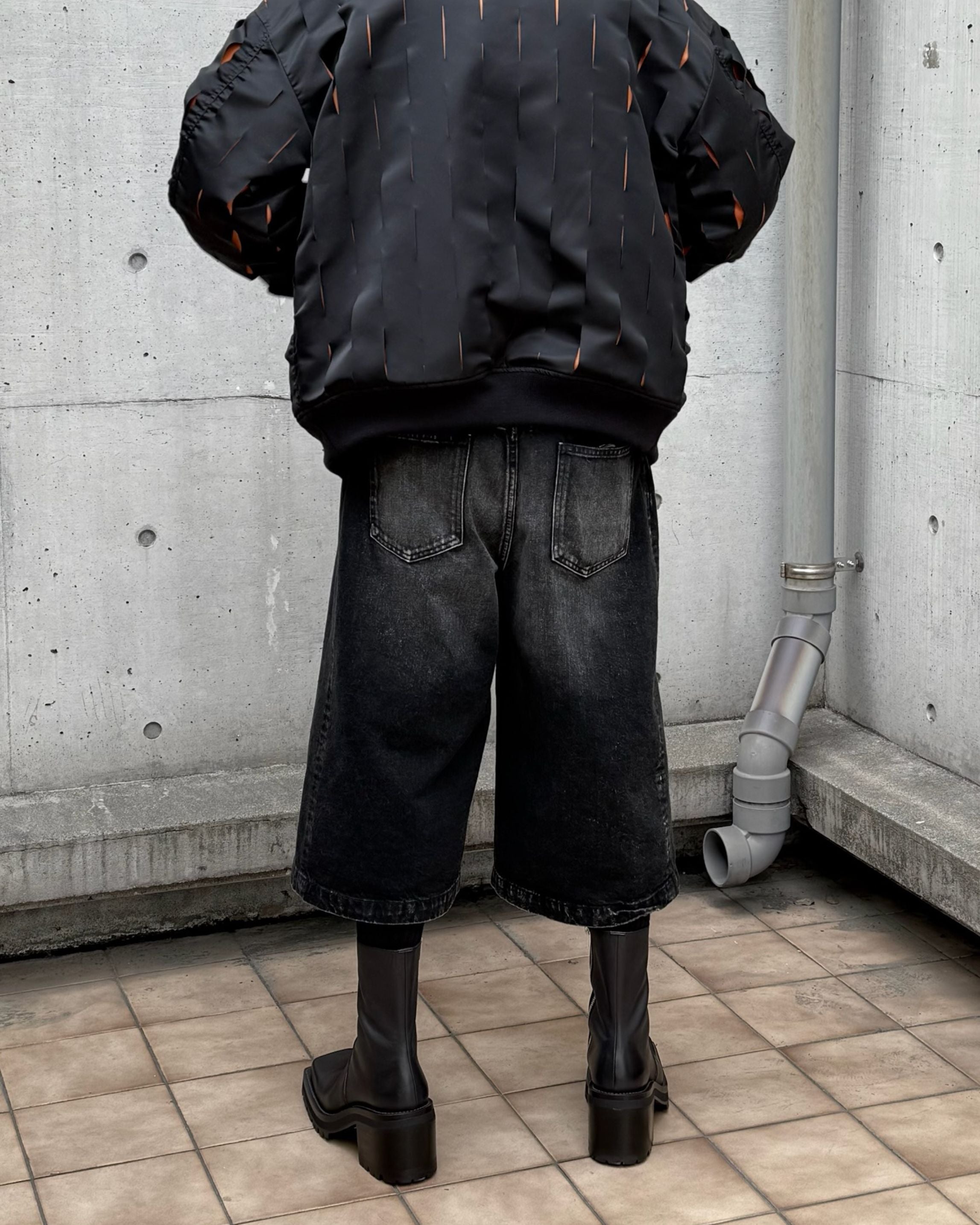 WASHED DENIM TUCKED WIDE SHORTS