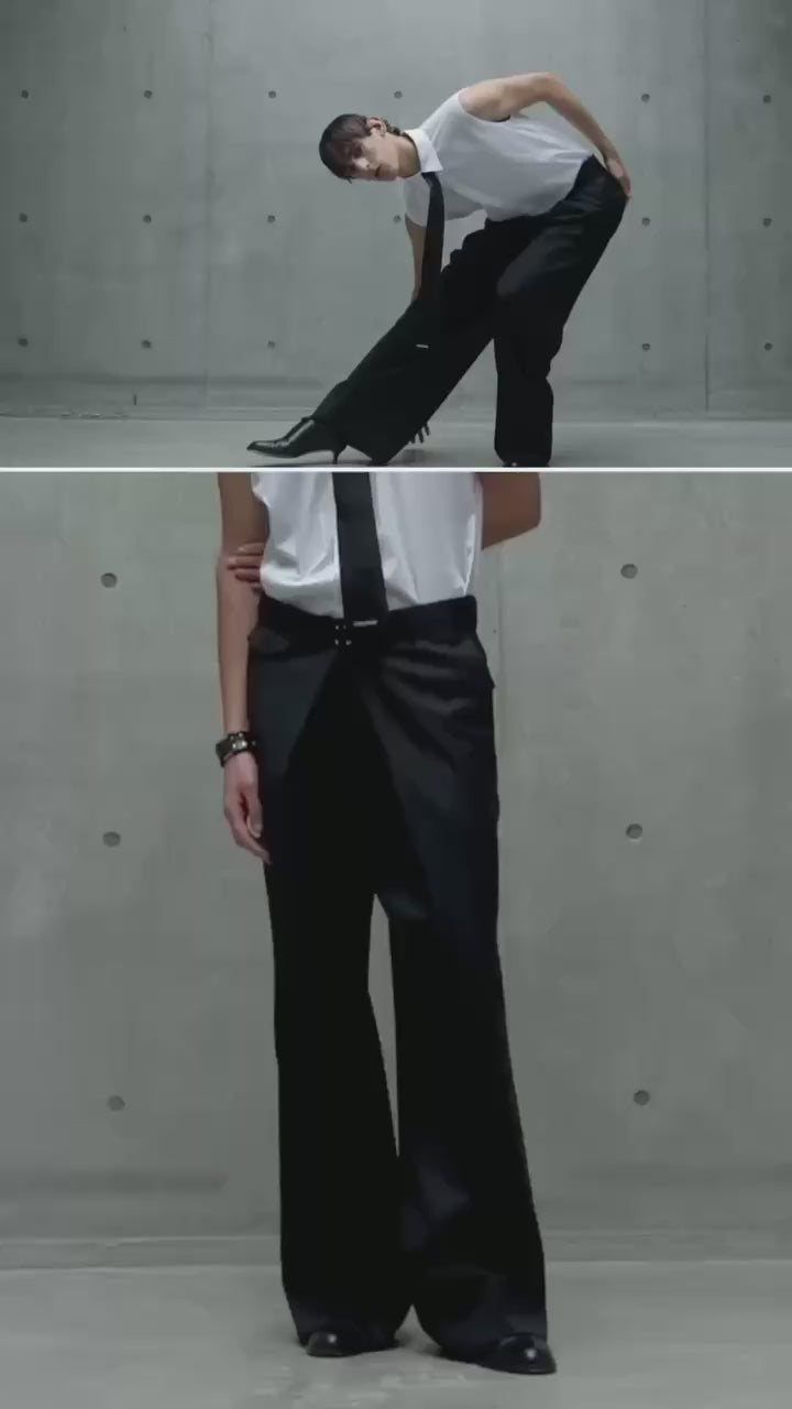 WOOL GABARDINE FOLDED WIDE TROUSERS