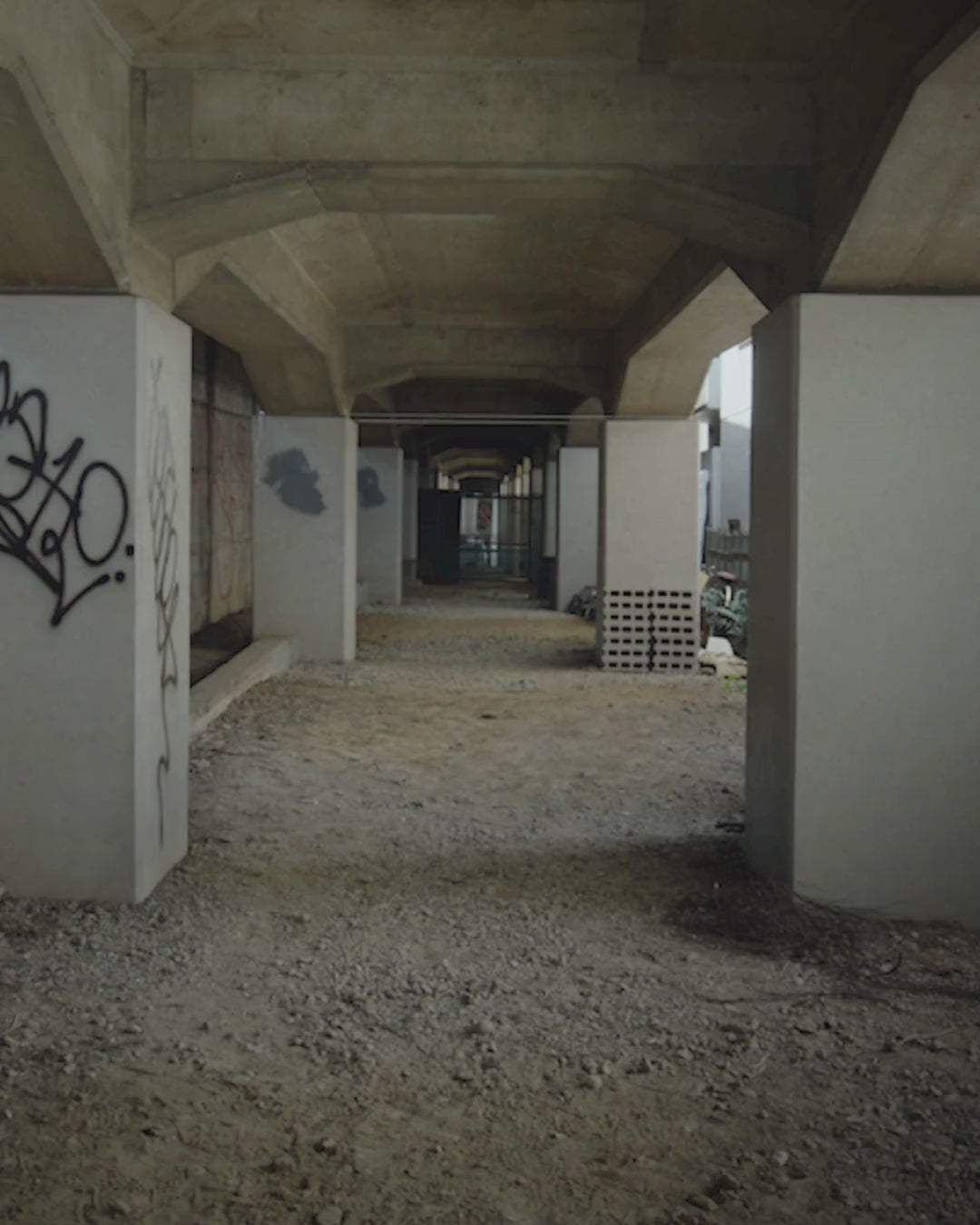 A cropped zip cardigan with a bold cut at the bust and corset details. A fetishistic design that combines the body parts.