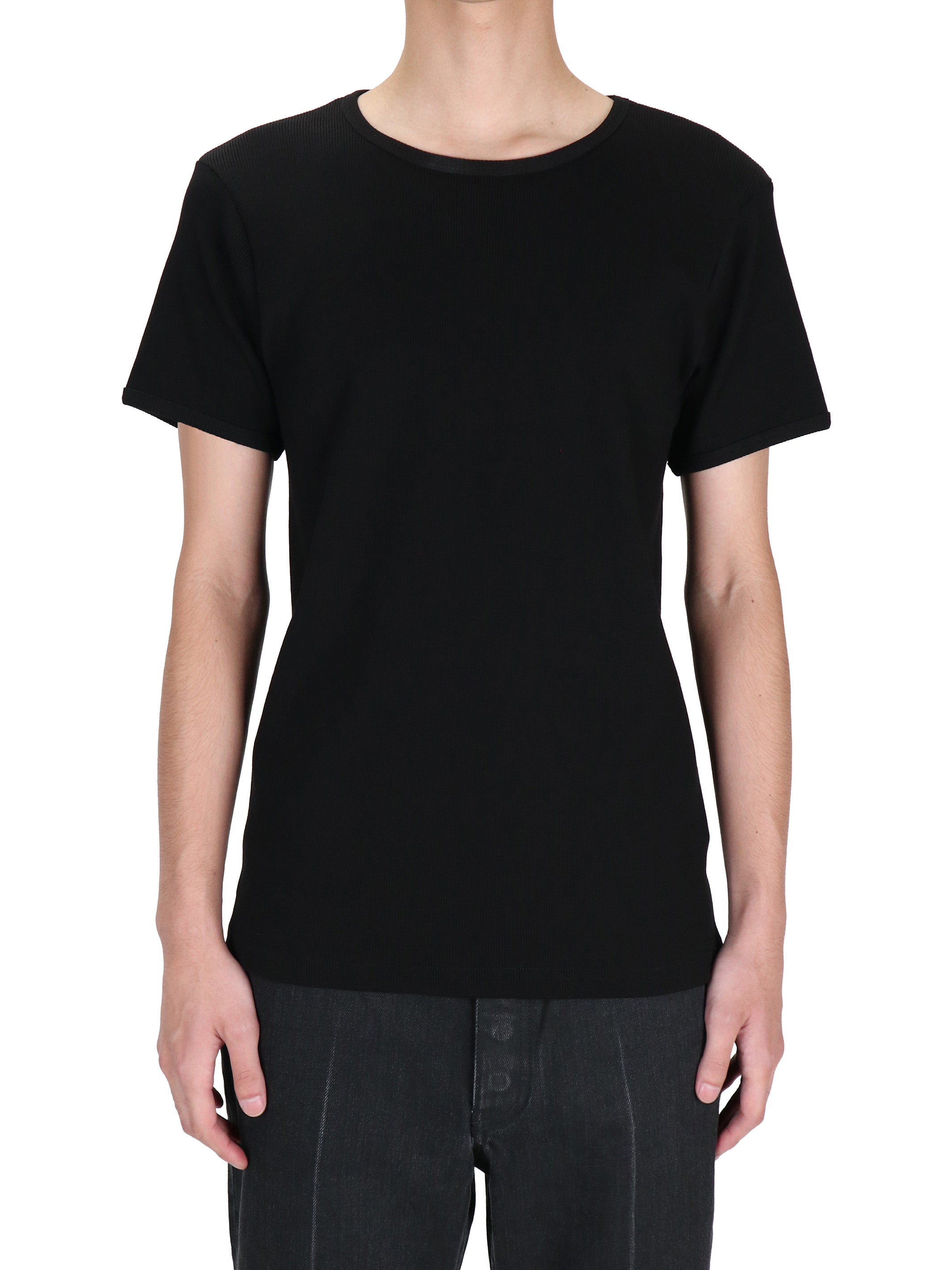 シームの肌あたりを最小限に抑えた仕様のコットンリブTシャツ。