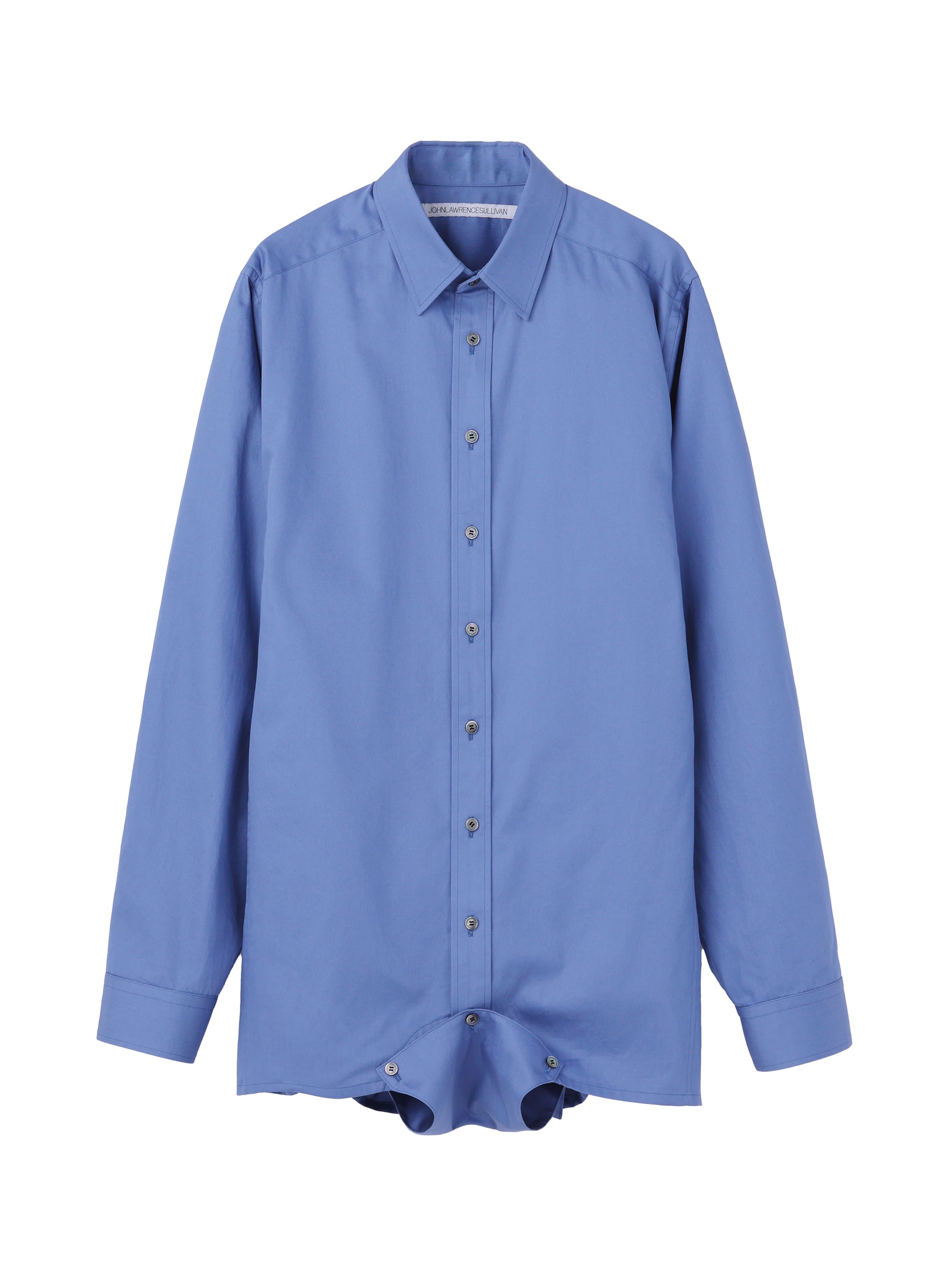 クロッチ部分は後身頃に収納でき、オーバーサイズシャツとジャンプスーツシャツの2WAYで着用が可能。
