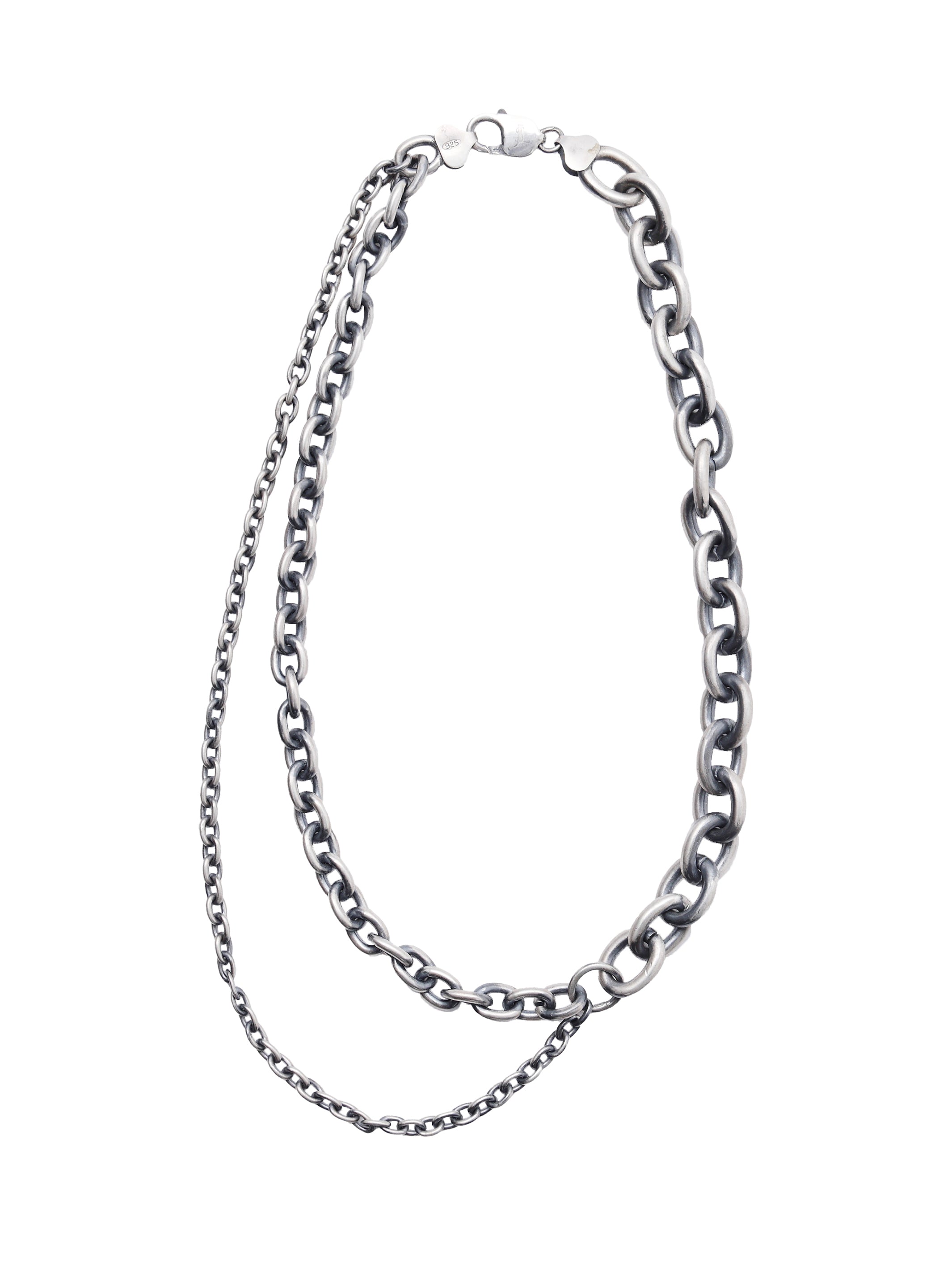 SILVER925のワイドチェーンを贅沢に使用した存在感のある2連チェーンネックレス。