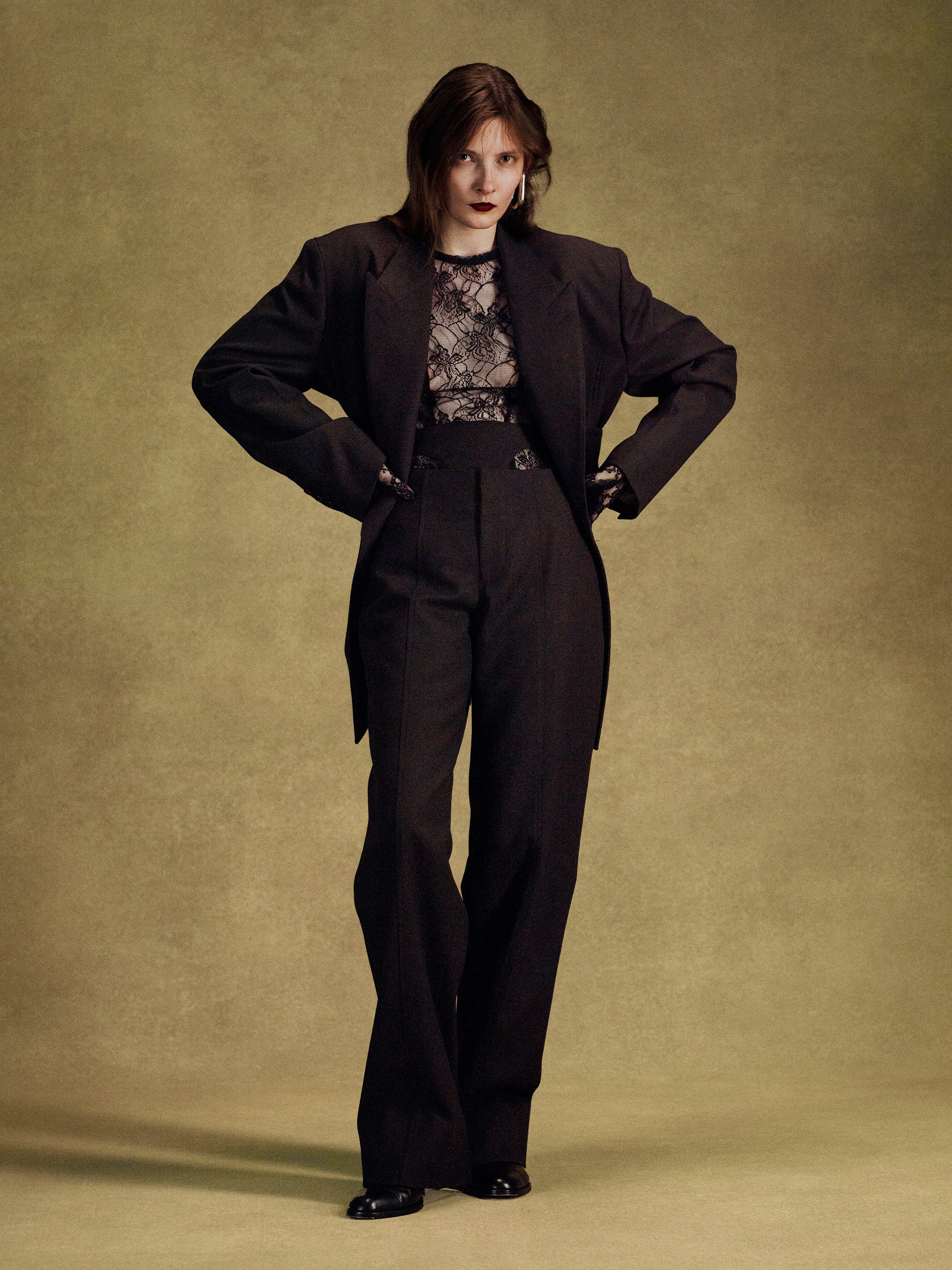 ヒップ下丈のIラインシルエット。