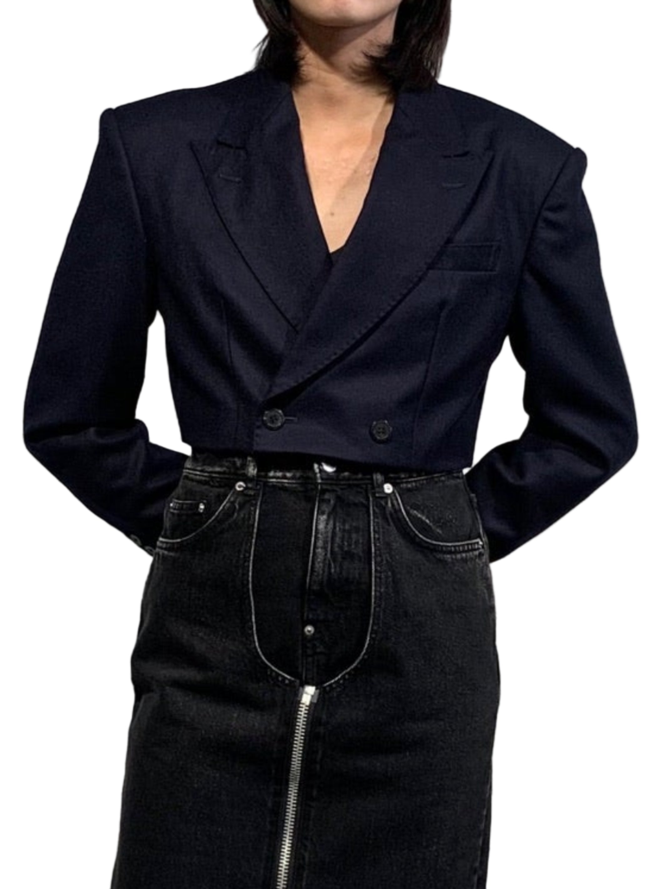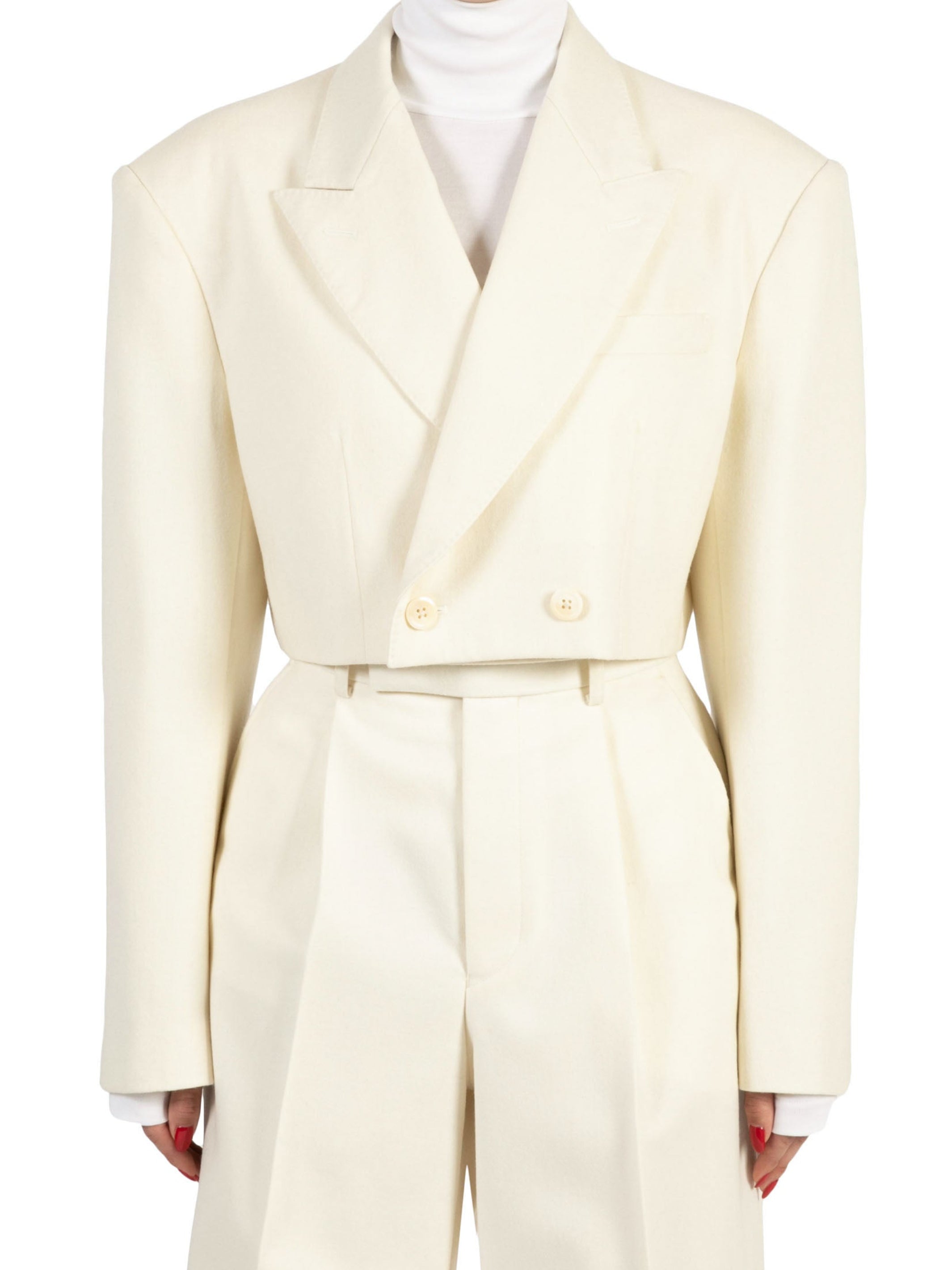 A spent survivor with a flan that has a fluff on the surface of the fabric. There are trousers and skirts of the same material.