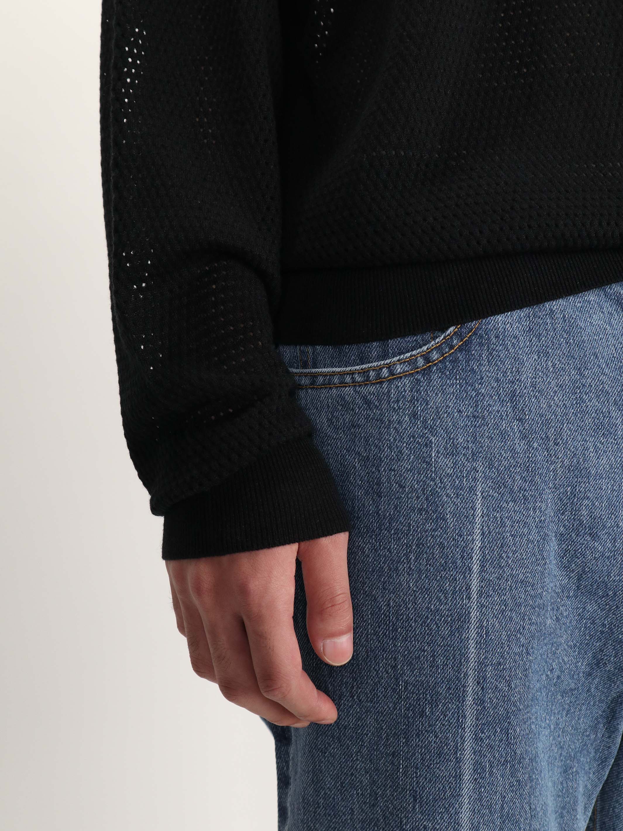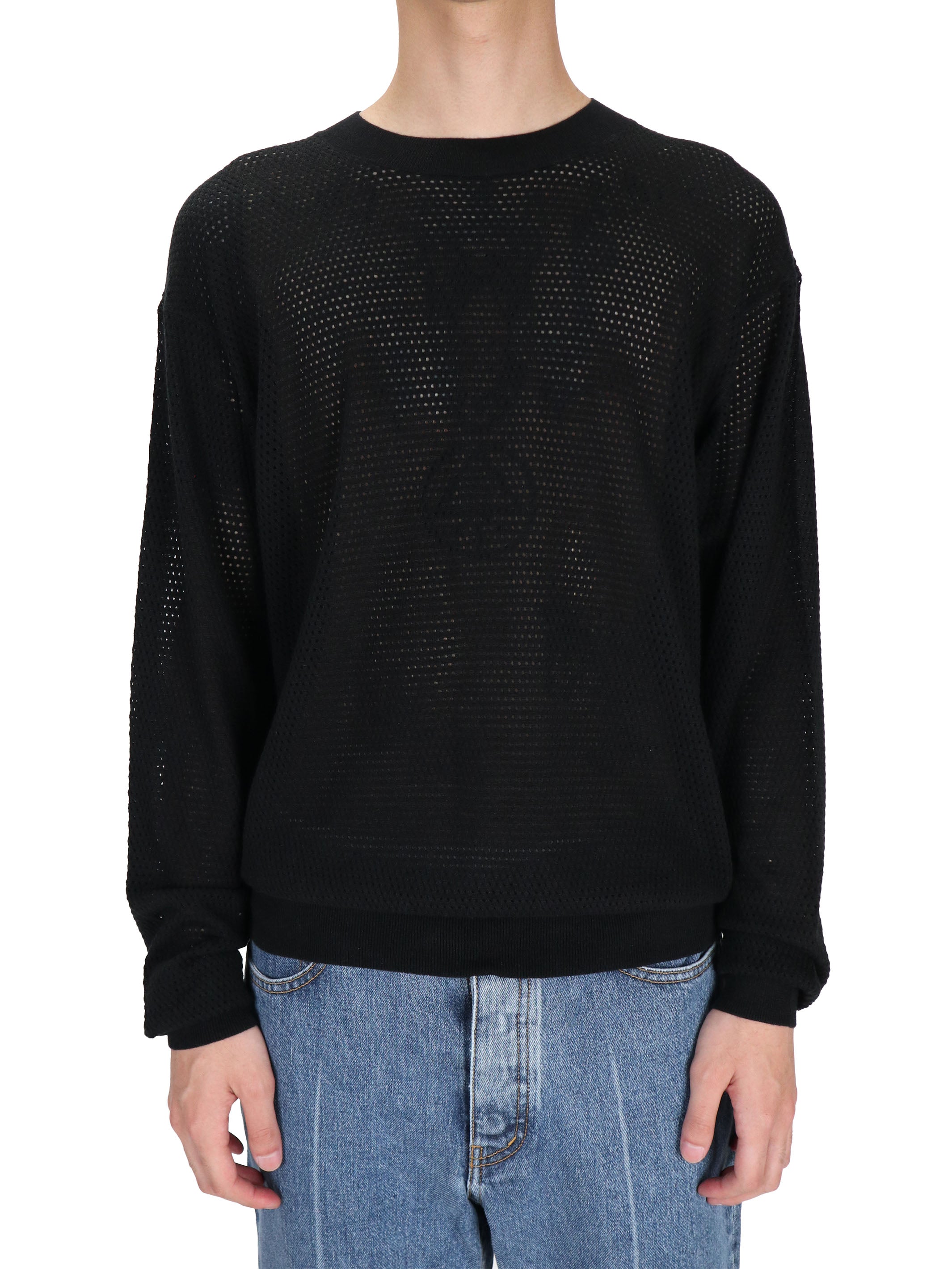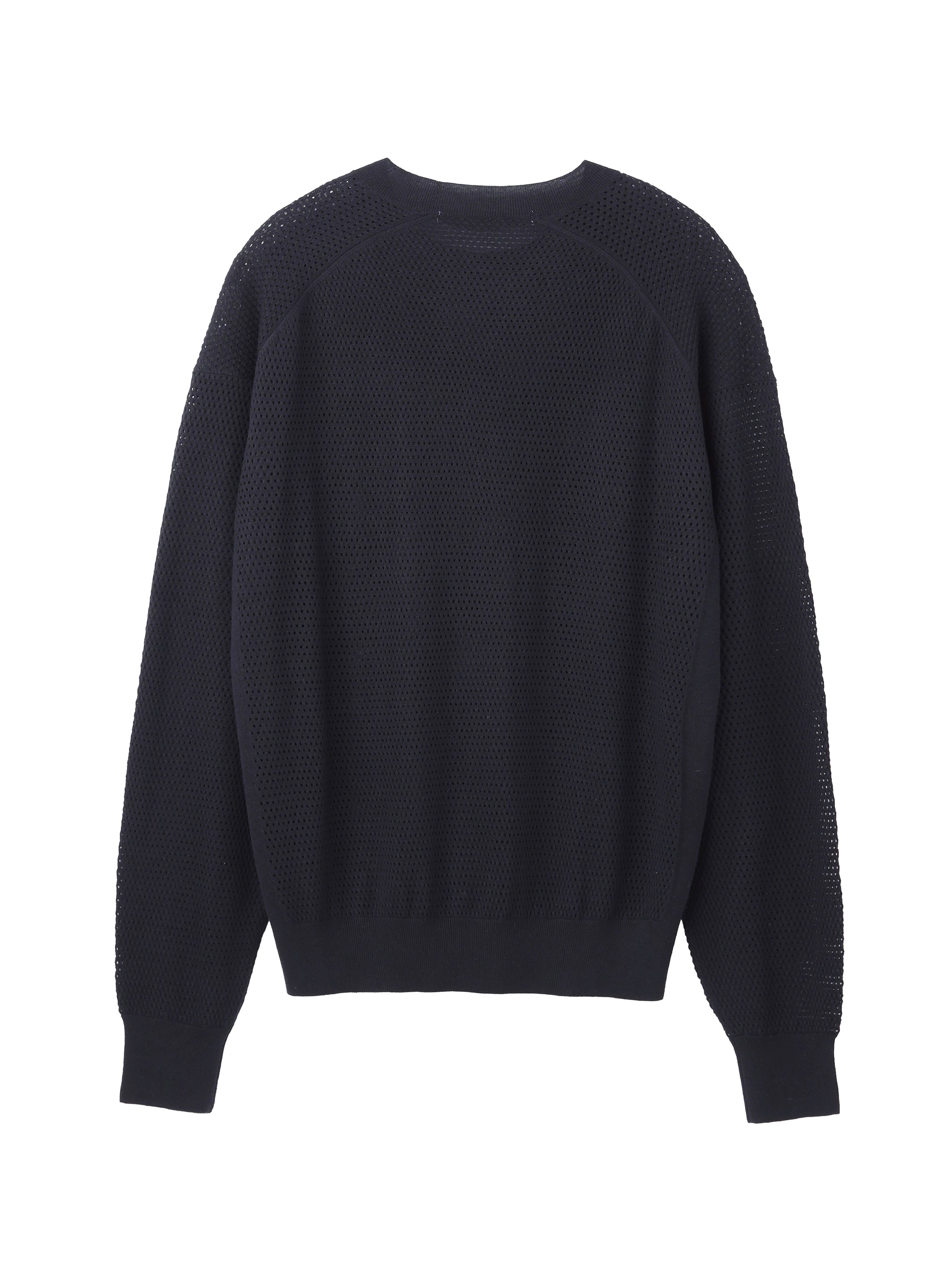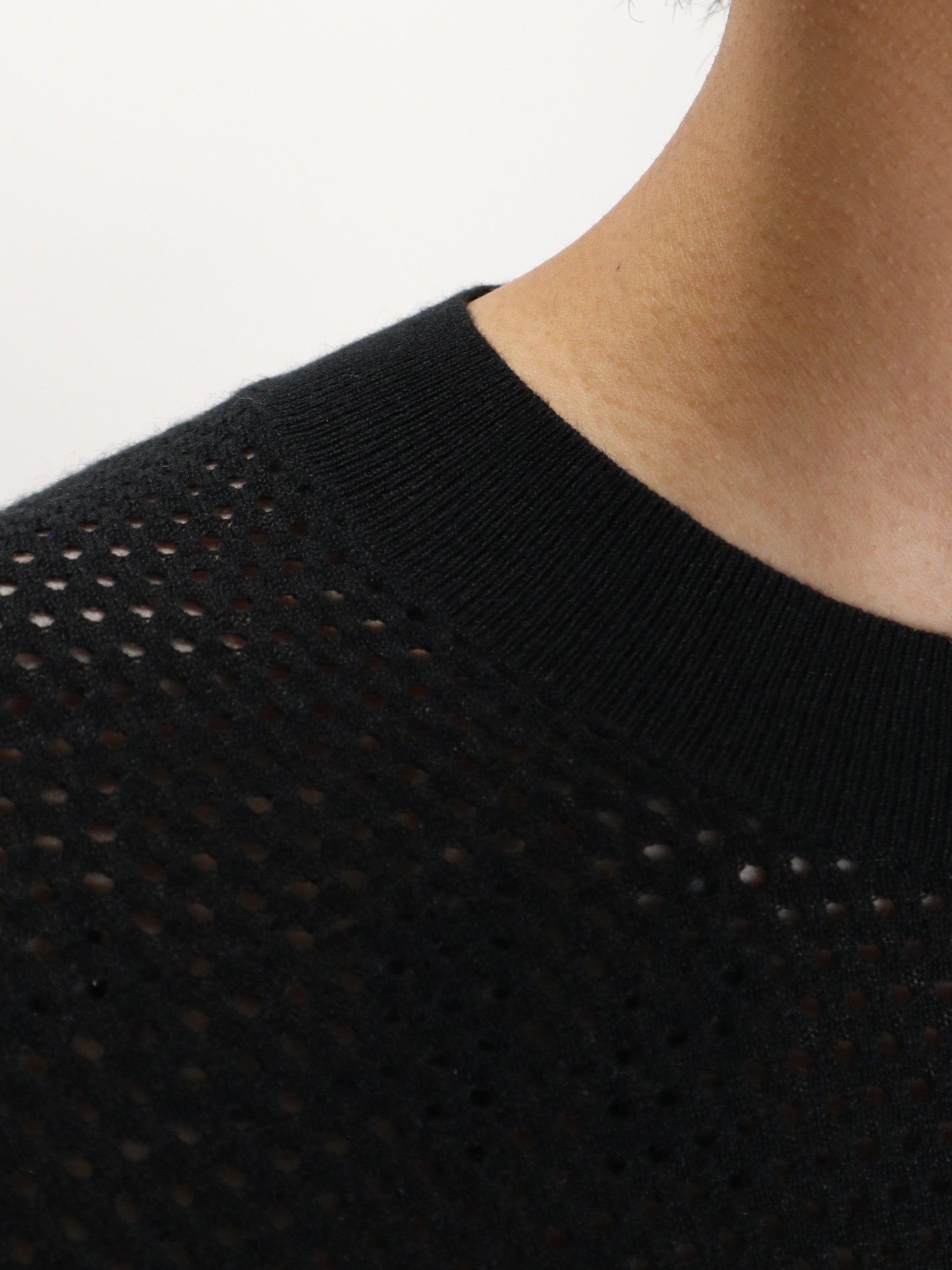 世界でも最高品質を誇る、中国内モンゴル産のカシミヤ山羊の産毛とシルク糸をブレンドした素材を使用した上質なクルーネックメッシュニット。