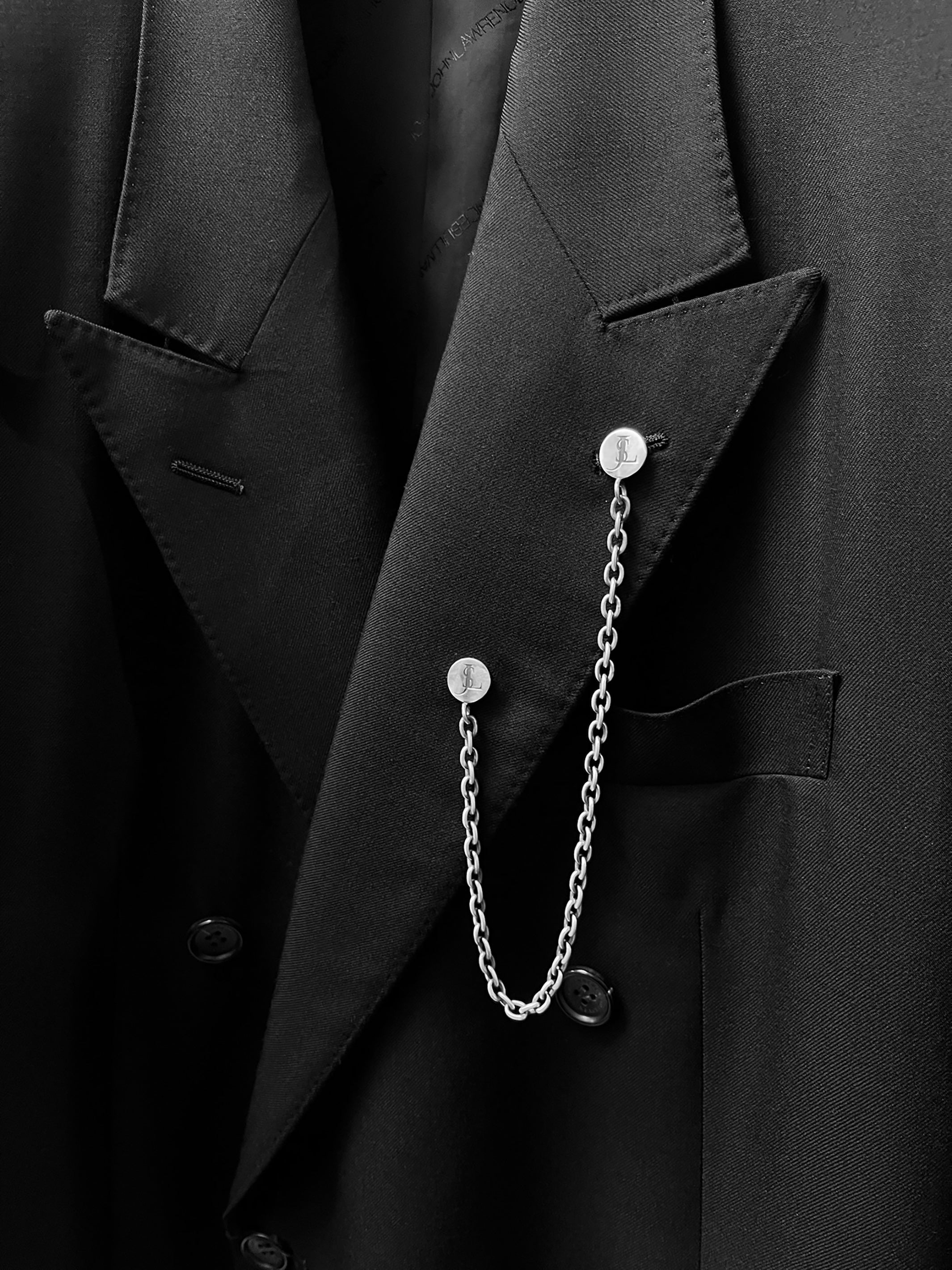 SILVER925のチェーンを使用した存在感のあるラペルピンチェーン。