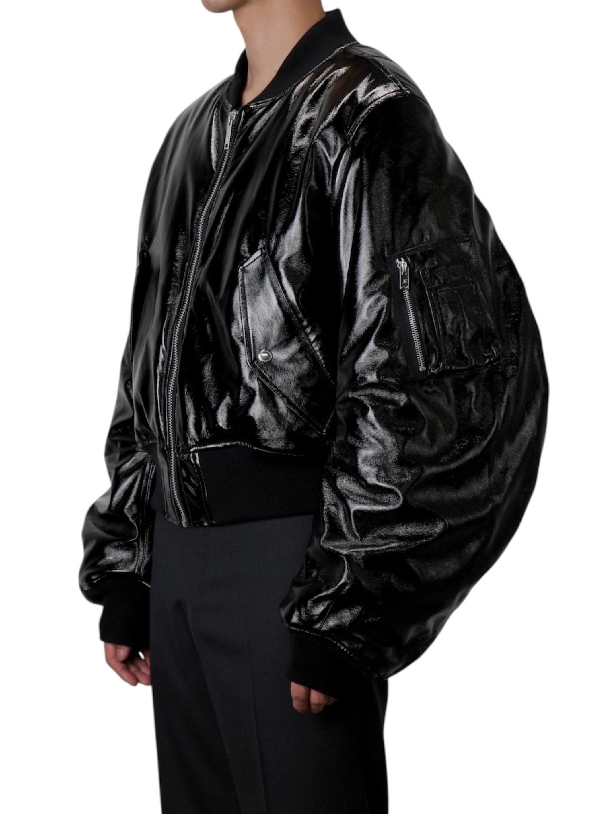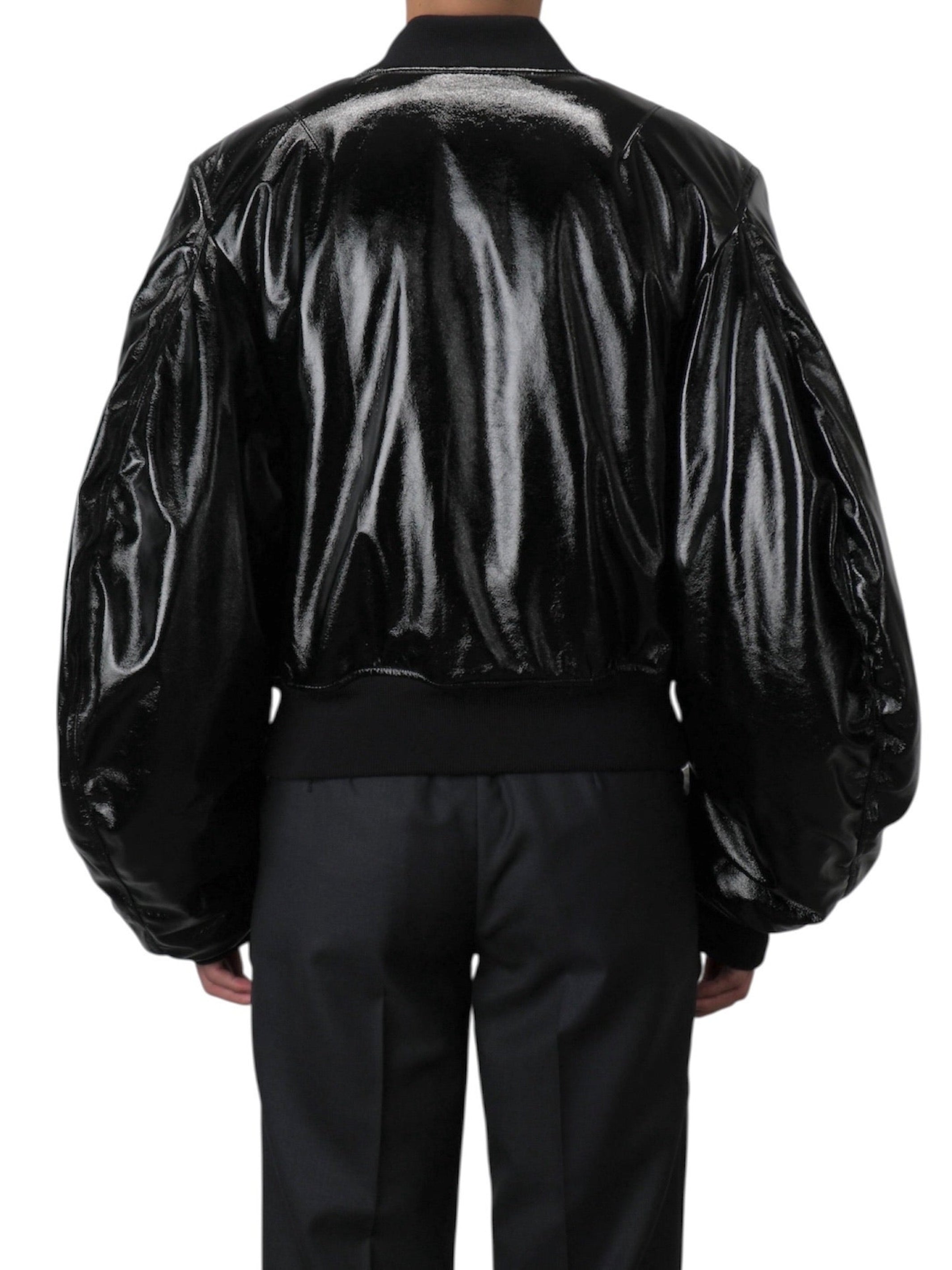 PATENT MASSIVE ROUNDED SLEEVE BOMBER JACKET