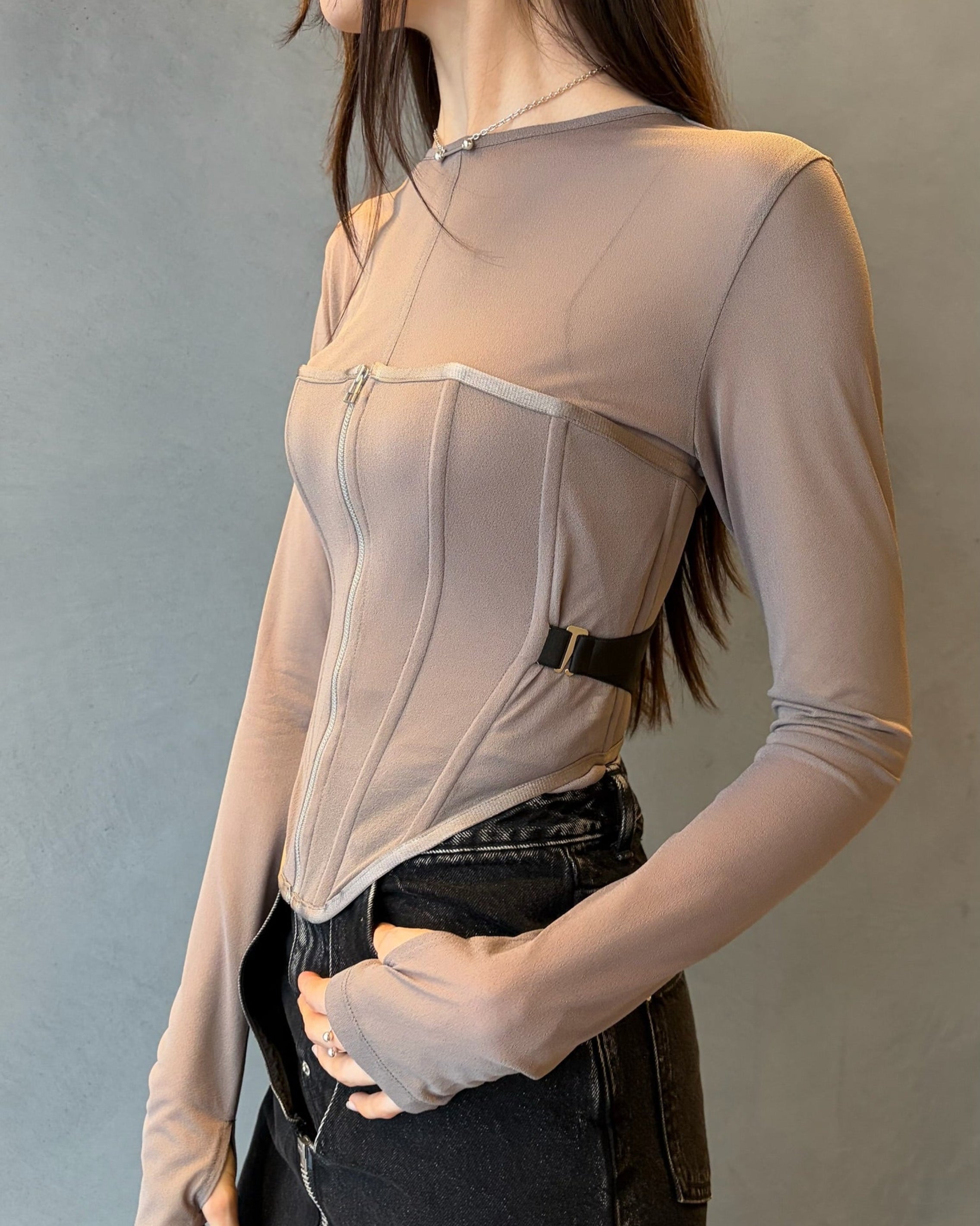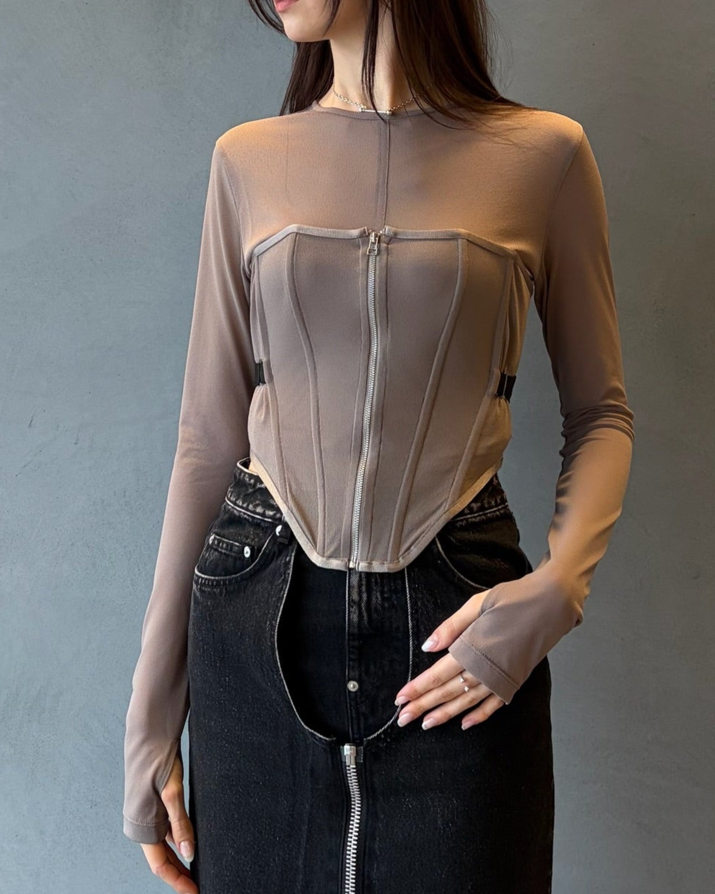 Another style is to wear it layered with a corset made of the same material.