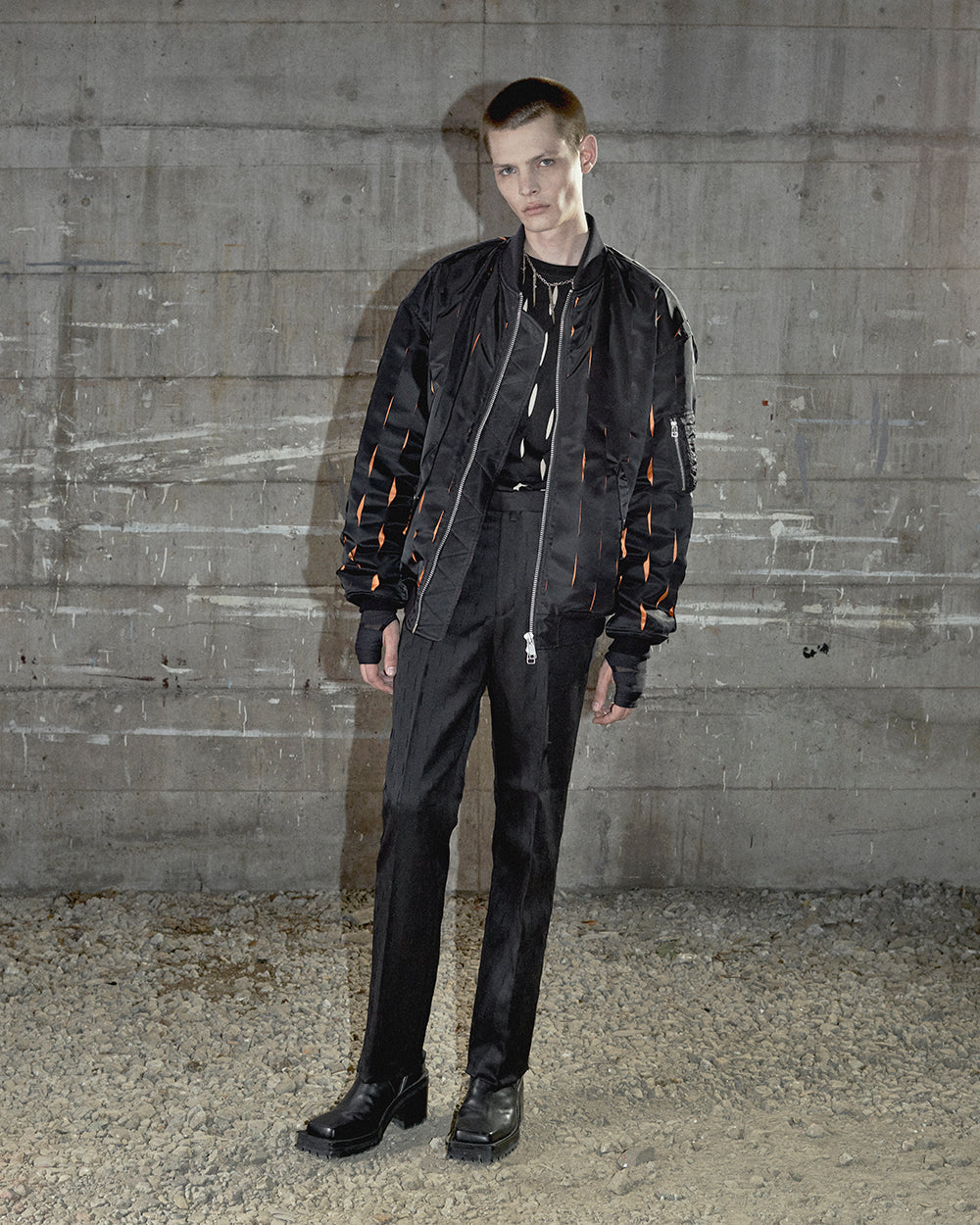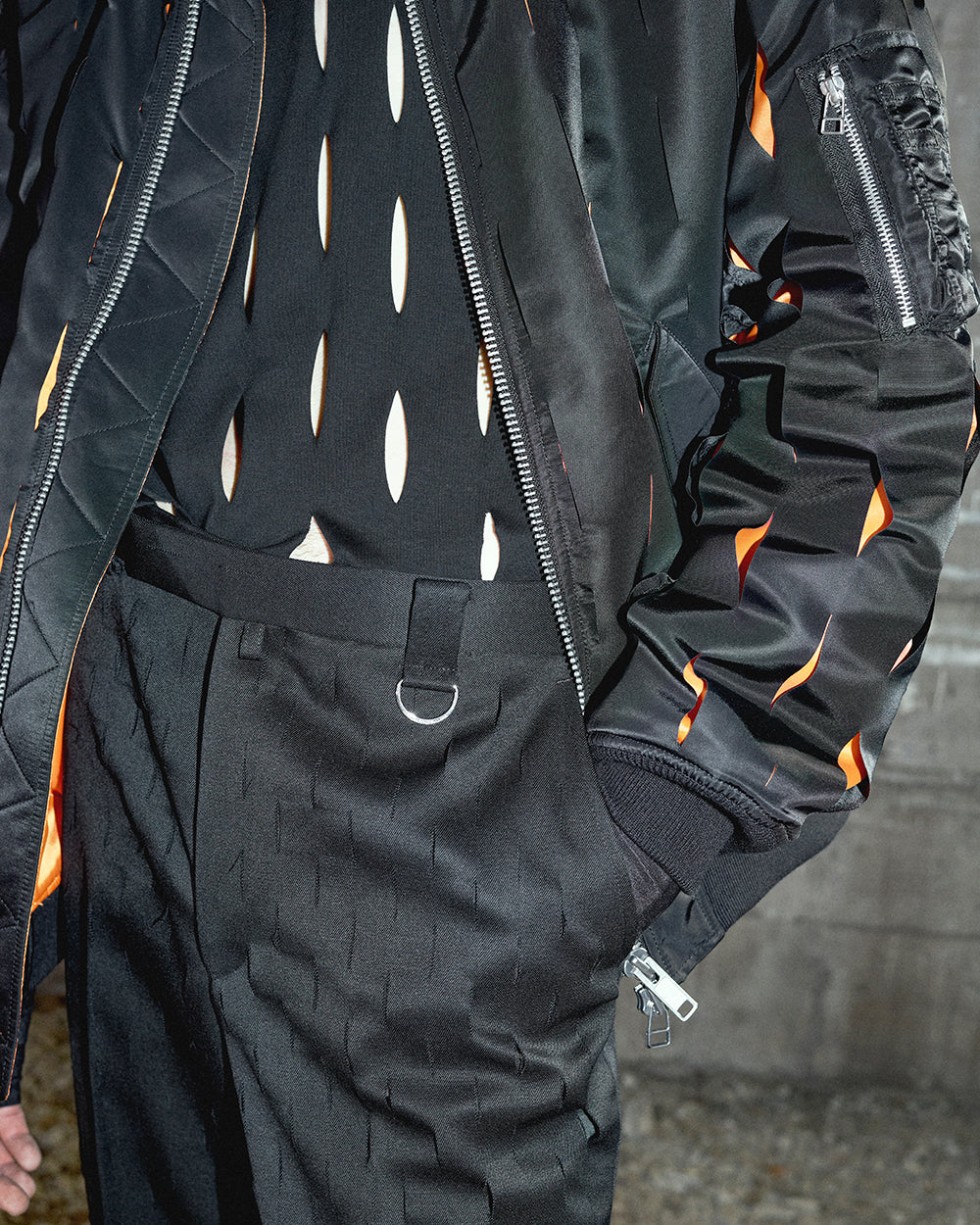 身頃全面をナイフで切りつけたようなカット加工を施したデザインが特徴。