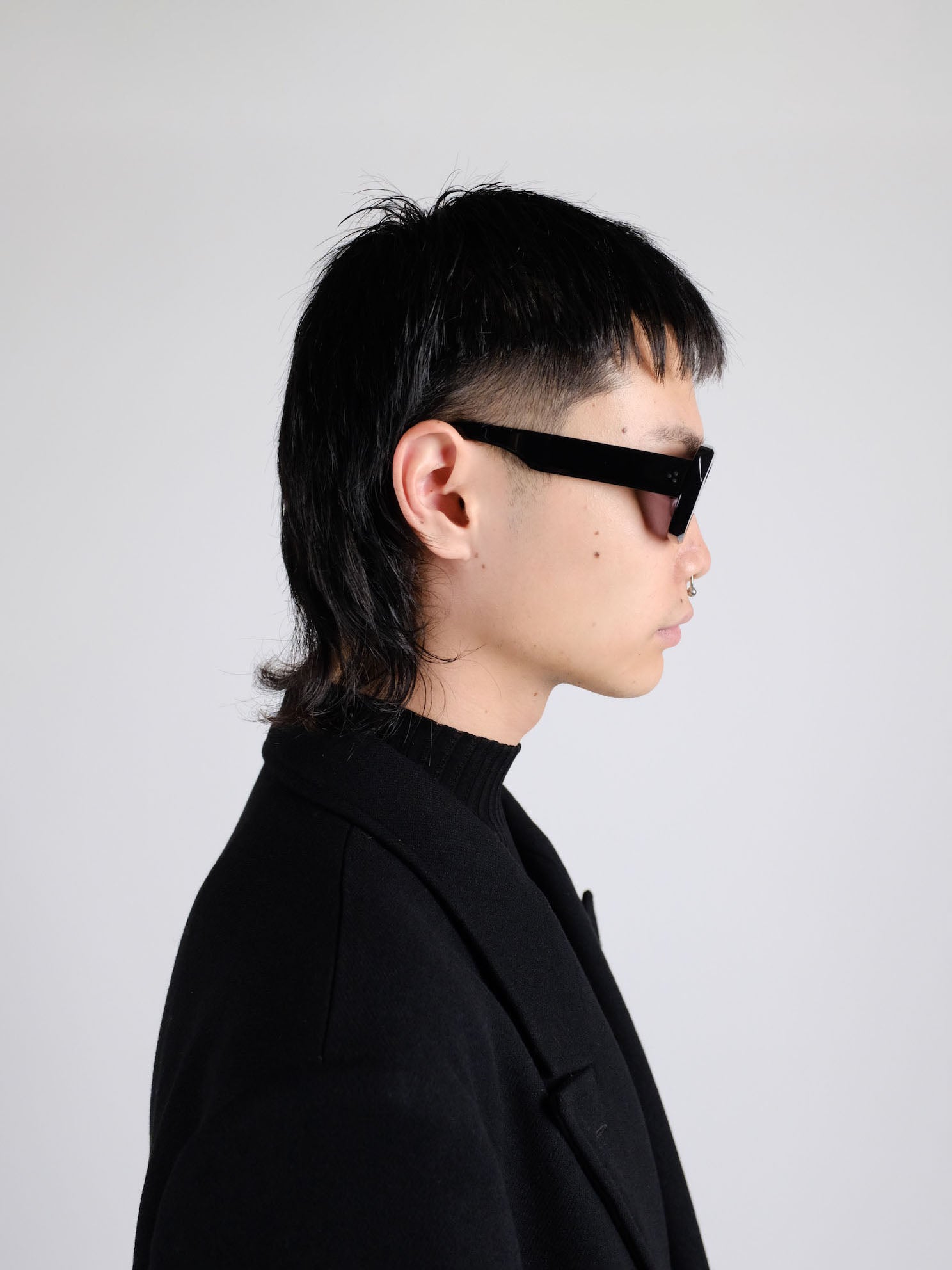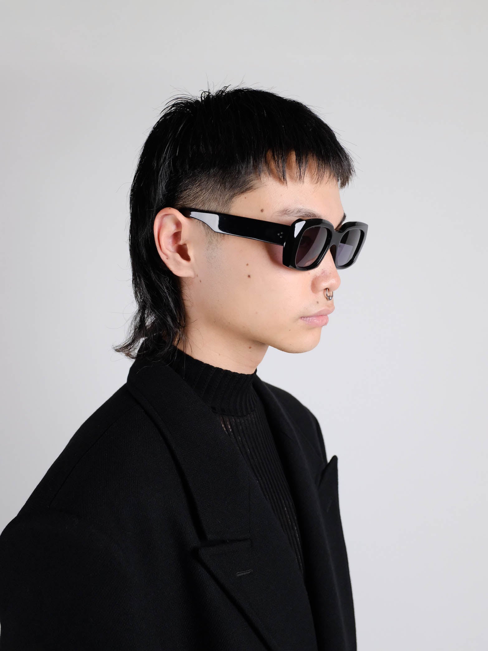 An item featuring a men's -like design with a thick, presence frame and bridge high.