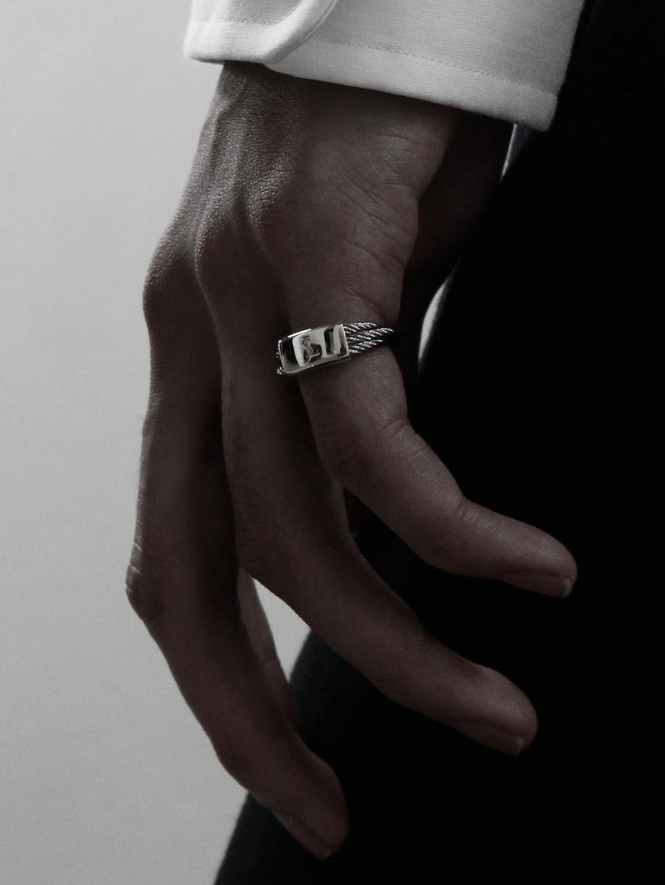 A triple ring inspired by the artist Jean Cocteau's portrait. Design that combines industrial atmosphere and elegance.
