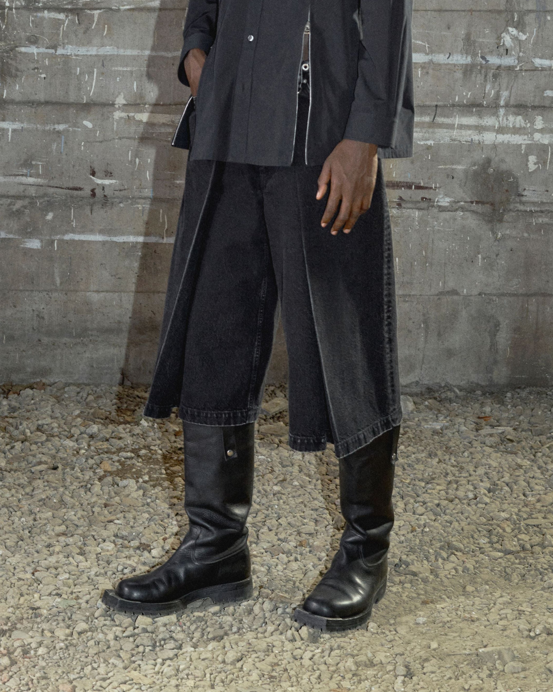 Made from 13.5oz denim with a distressed finish, the material's texture deepens over time.
