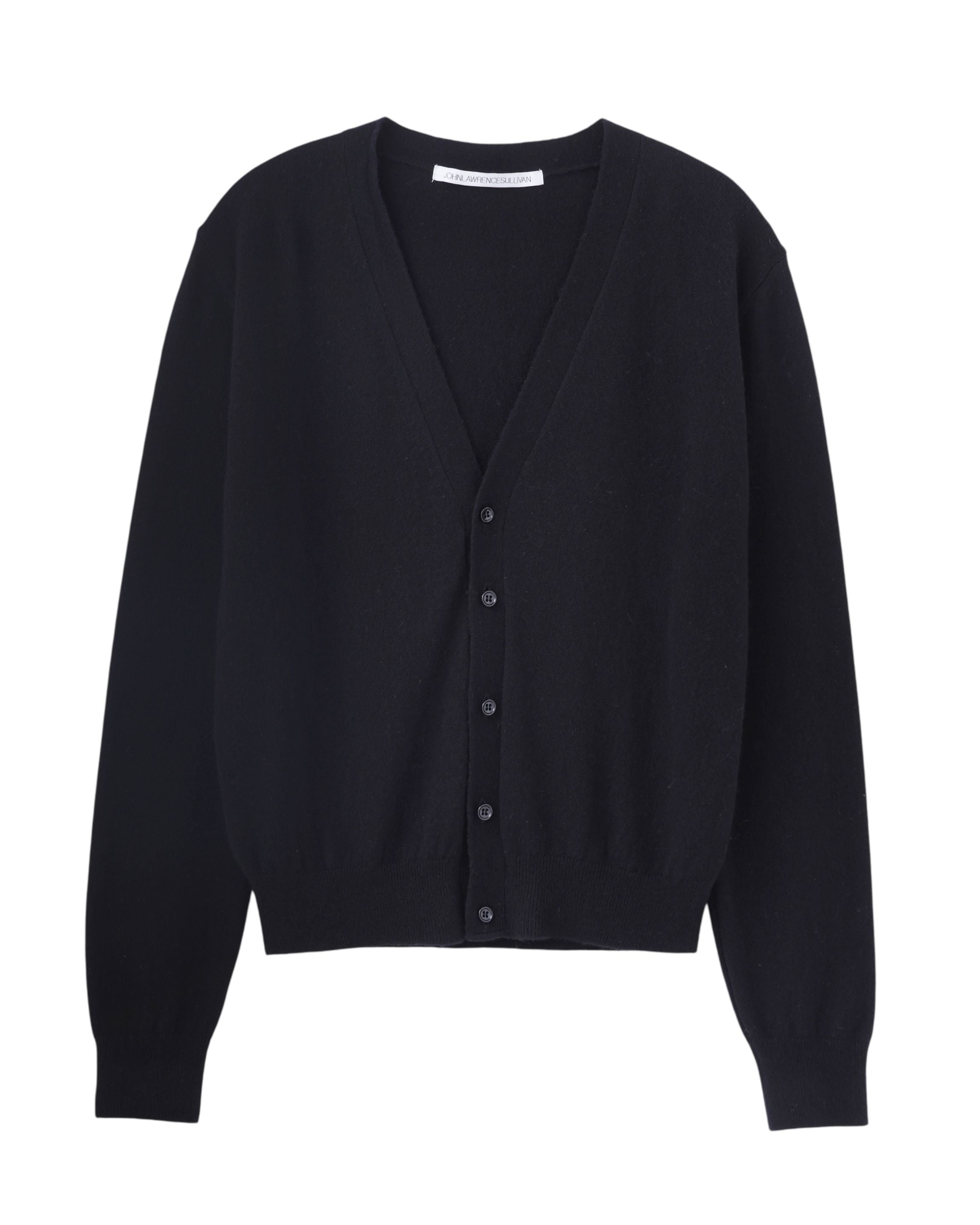 ウールカシミヤで編み立てたリブニットカーディガン。
