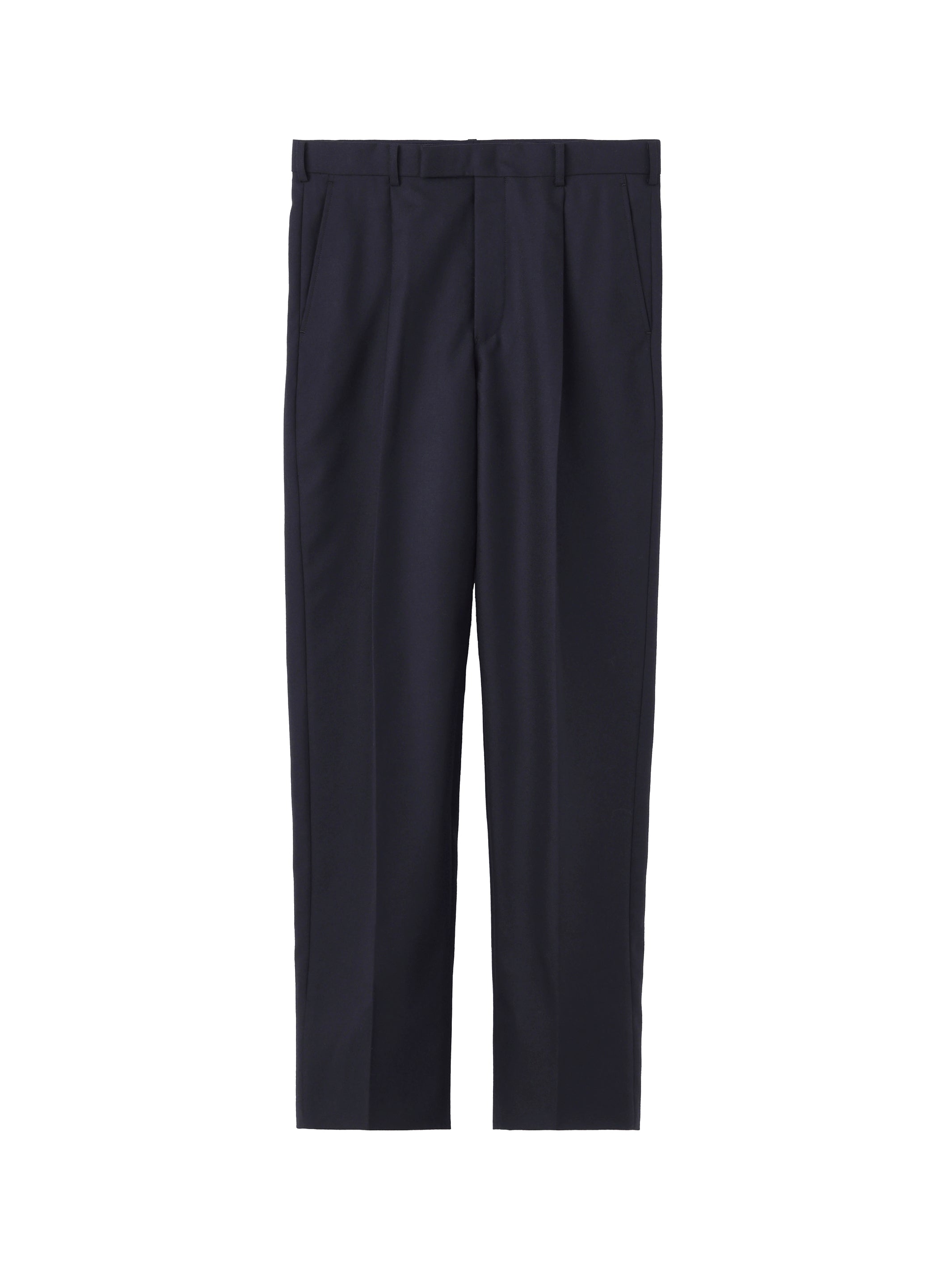 細身のきれいなテーパードラインの1タックトラウザーズ。
