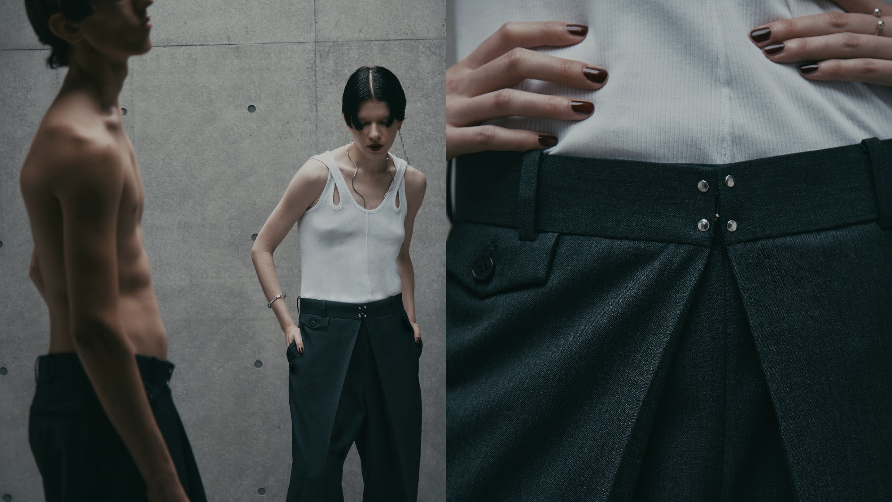 WOOL GABARDINE FOLDED WIDE TROUSERS|WOMENS