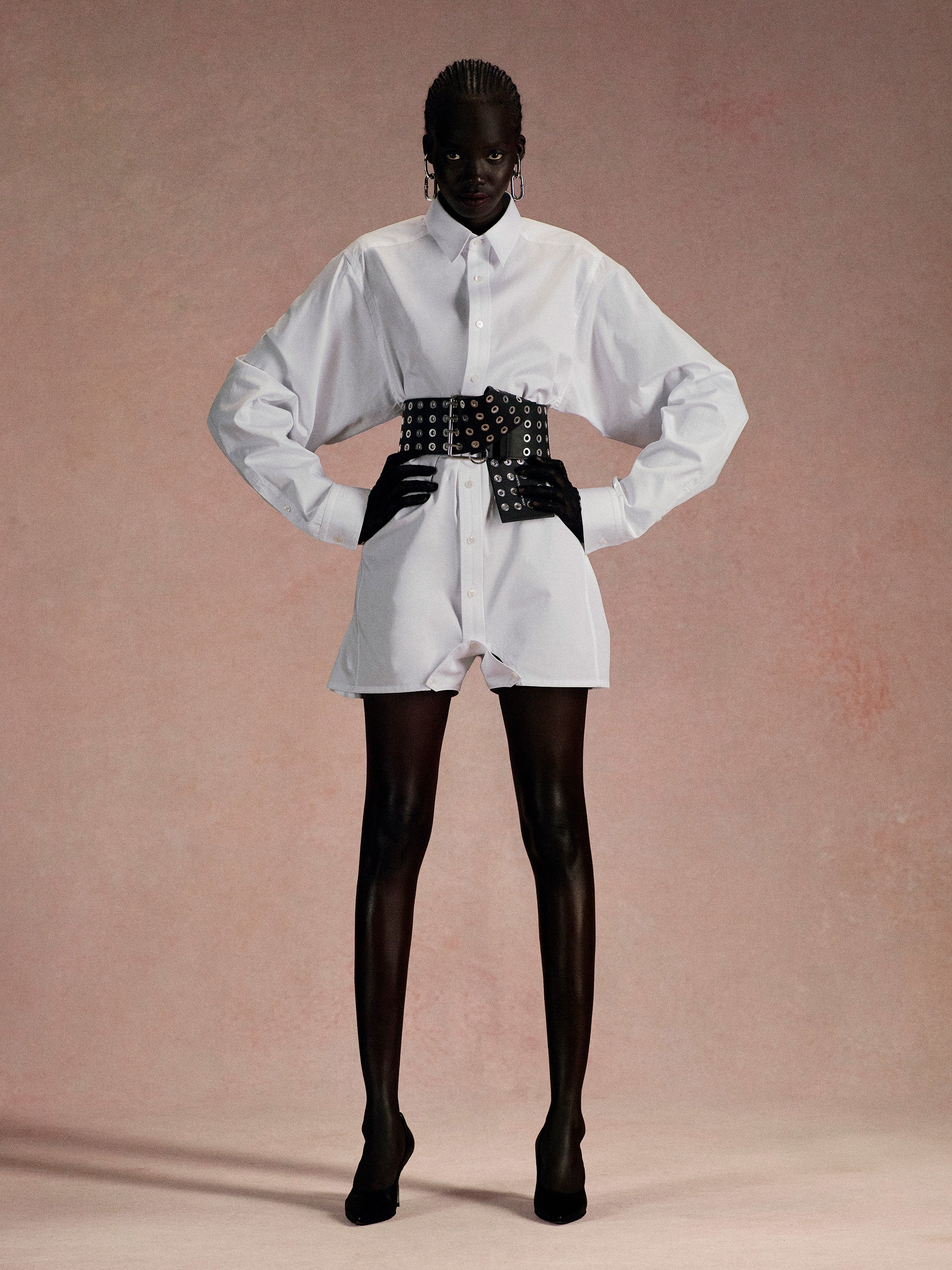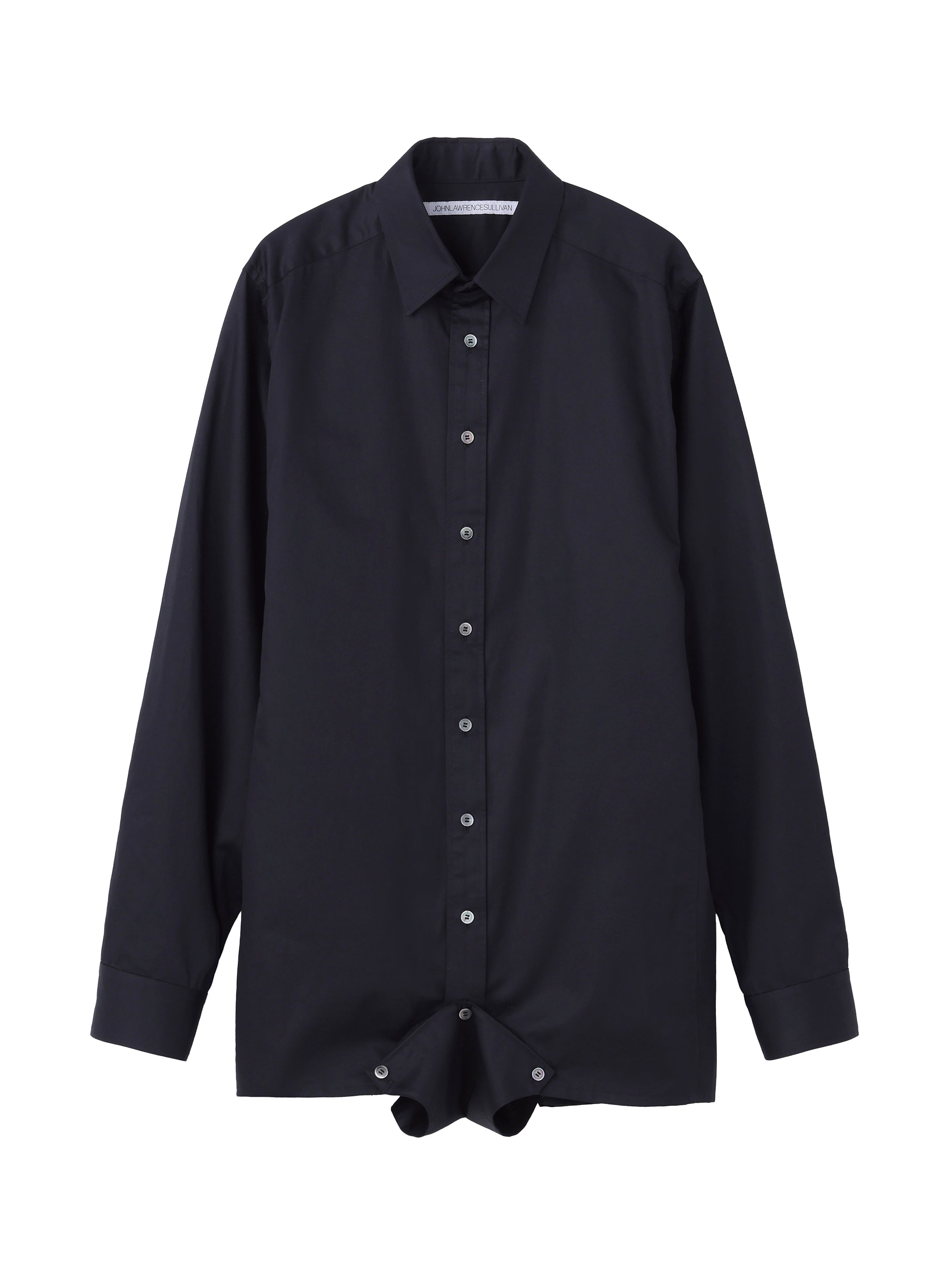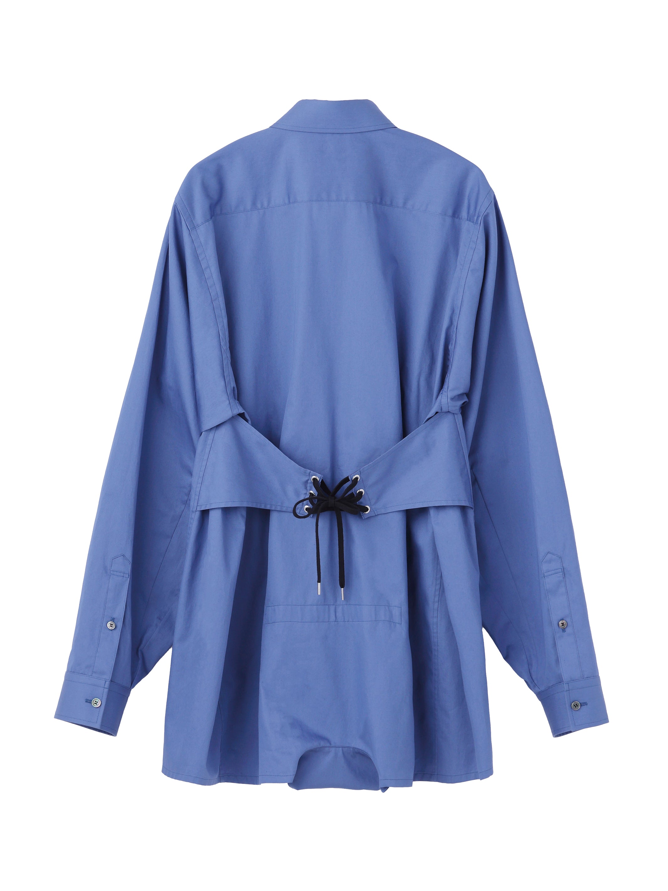 クロッチ部分は後身頃に収納でき、オーバーサイズシャツとジャンプスーツシャツの2WAYで着用が可能。
