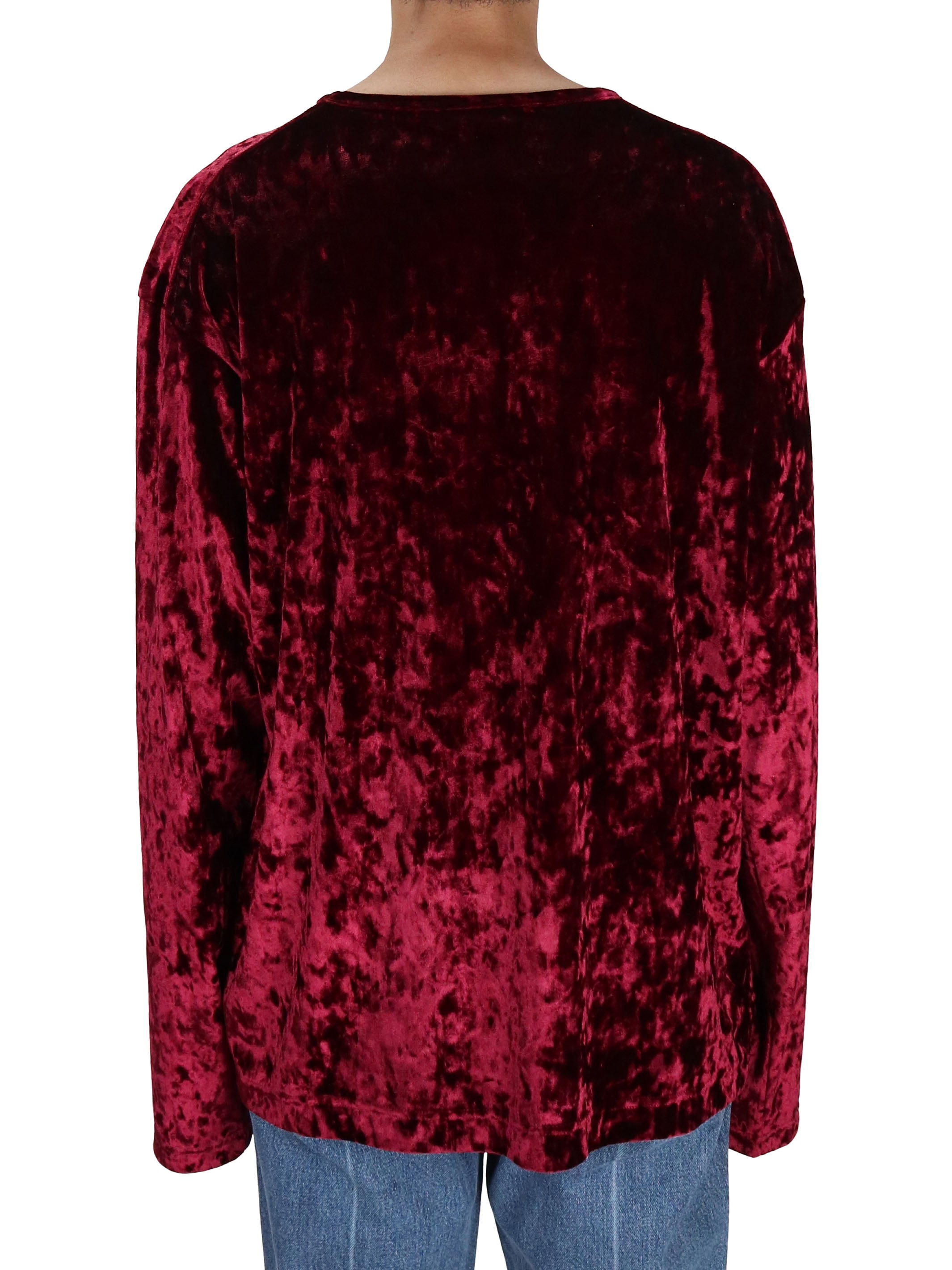 テーラードの様に、肩線を後ろへ流した立体的な構造が特徴のクルーネックトップ。ゆったりとしたオーバーサイズシルエット。