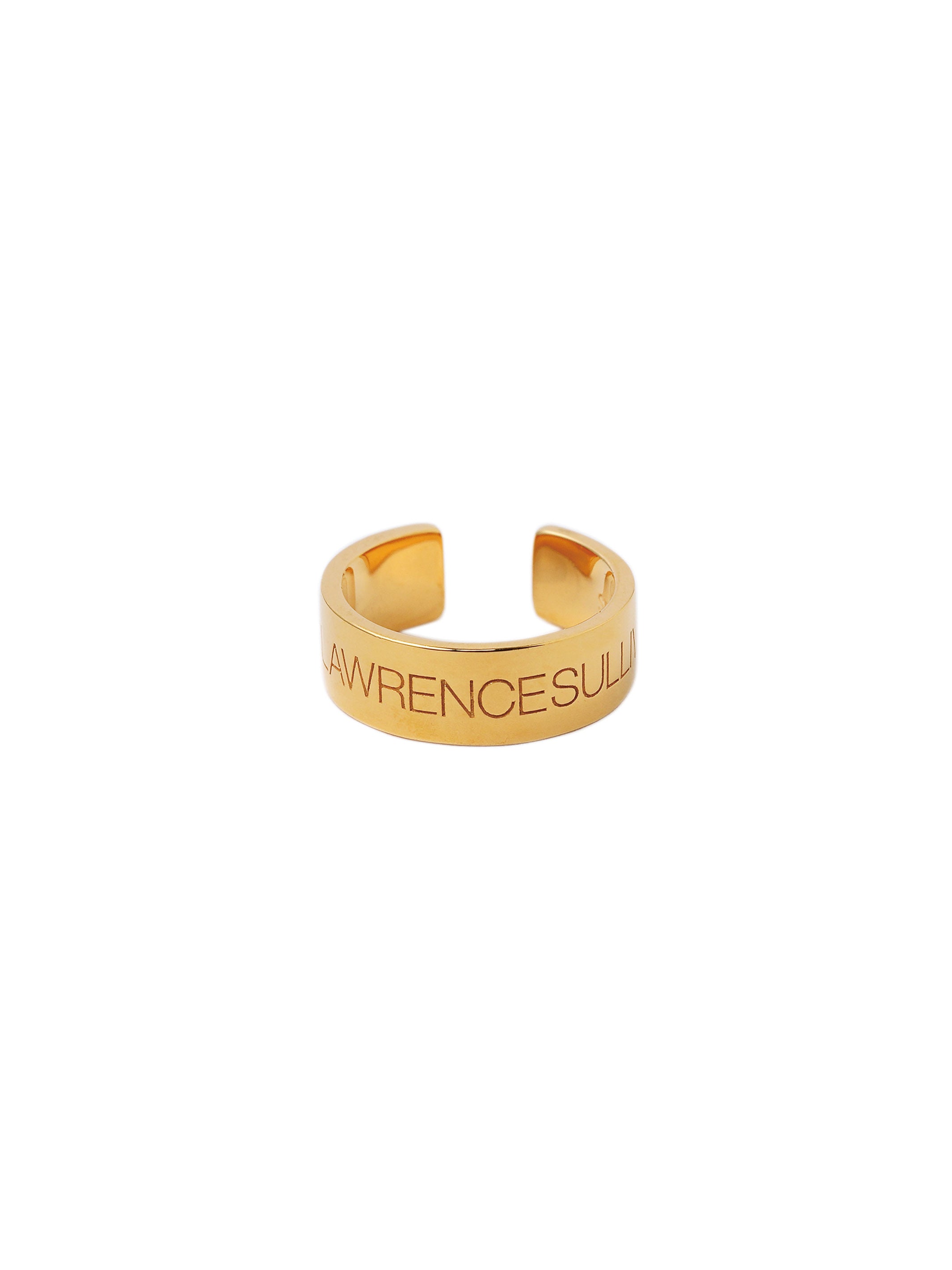 側面にロゴを刻印したリング型のイヤーカフ。2wayでリングとしても着用可能。