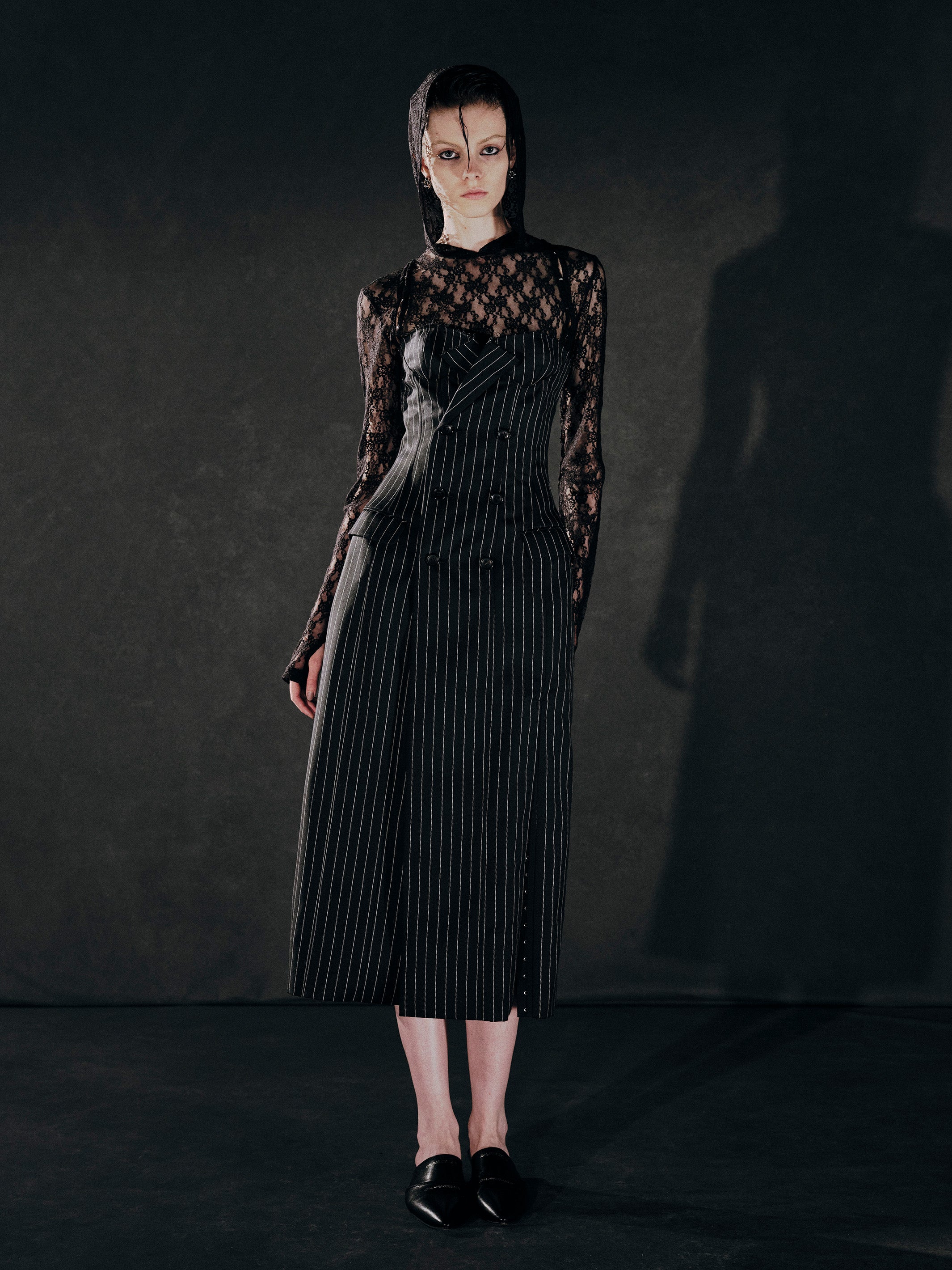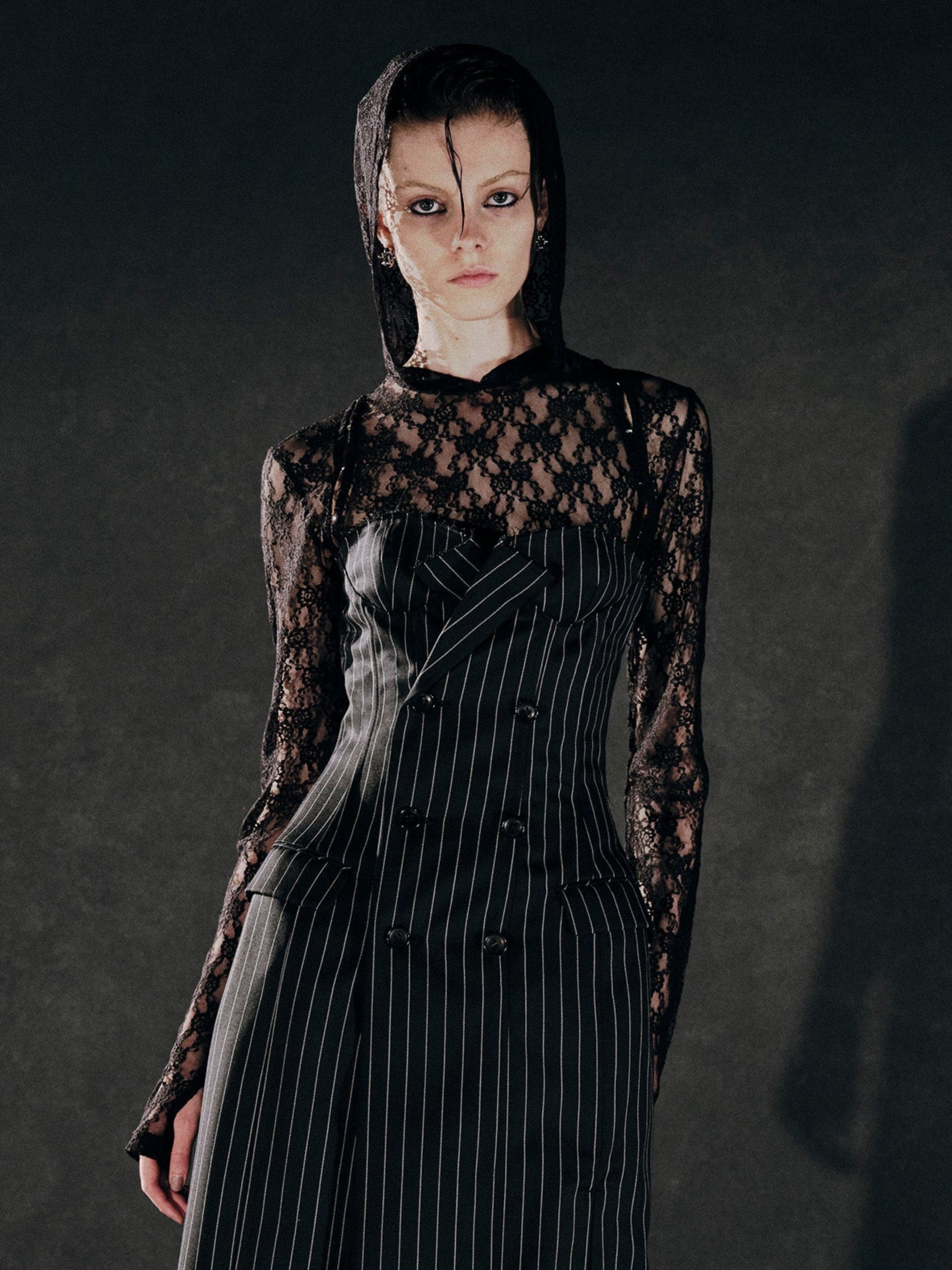 ラグラン線にランジェリーのようなスプリングホック切替えを入れたフェティッシュなデザイン。