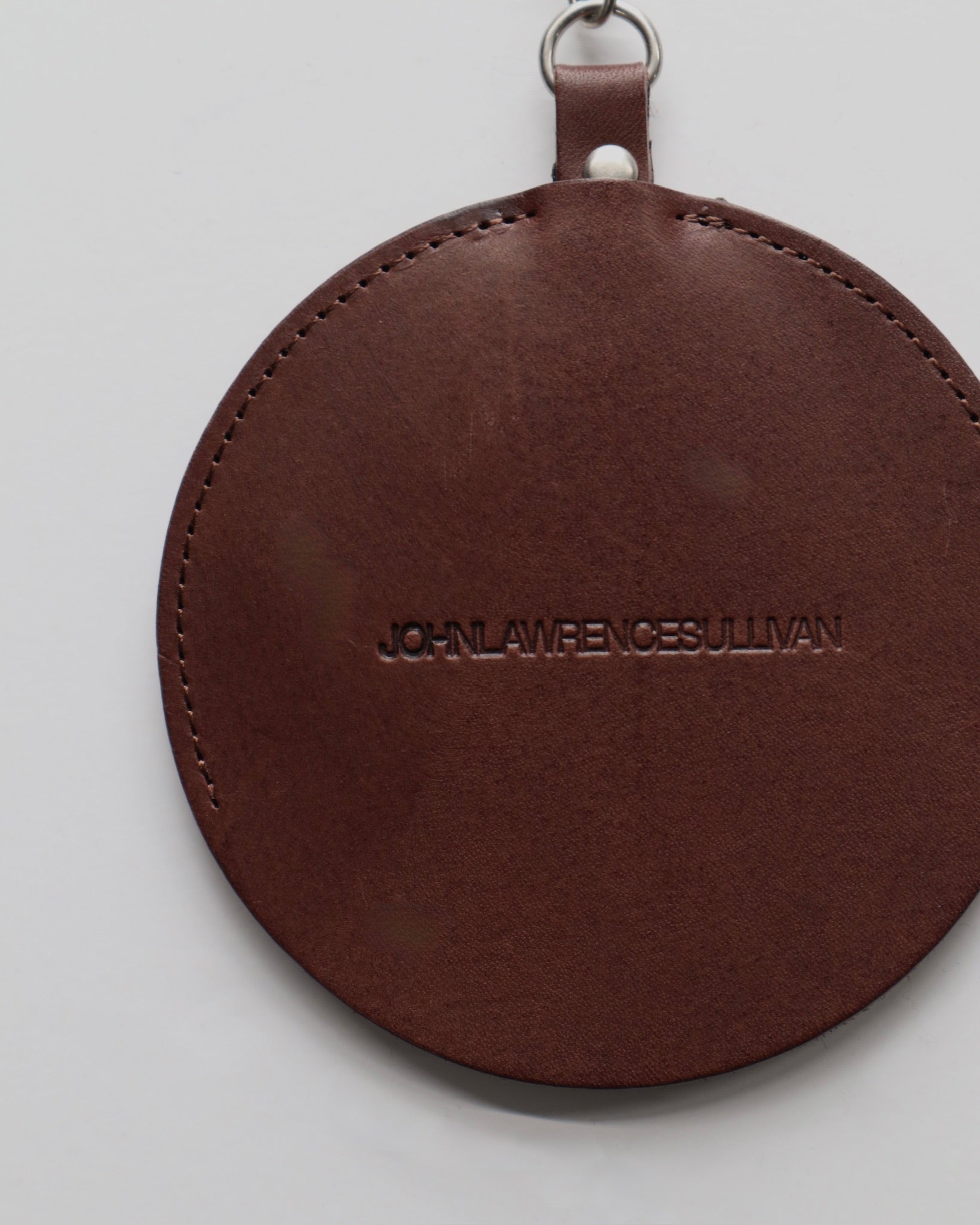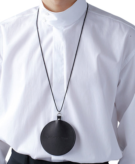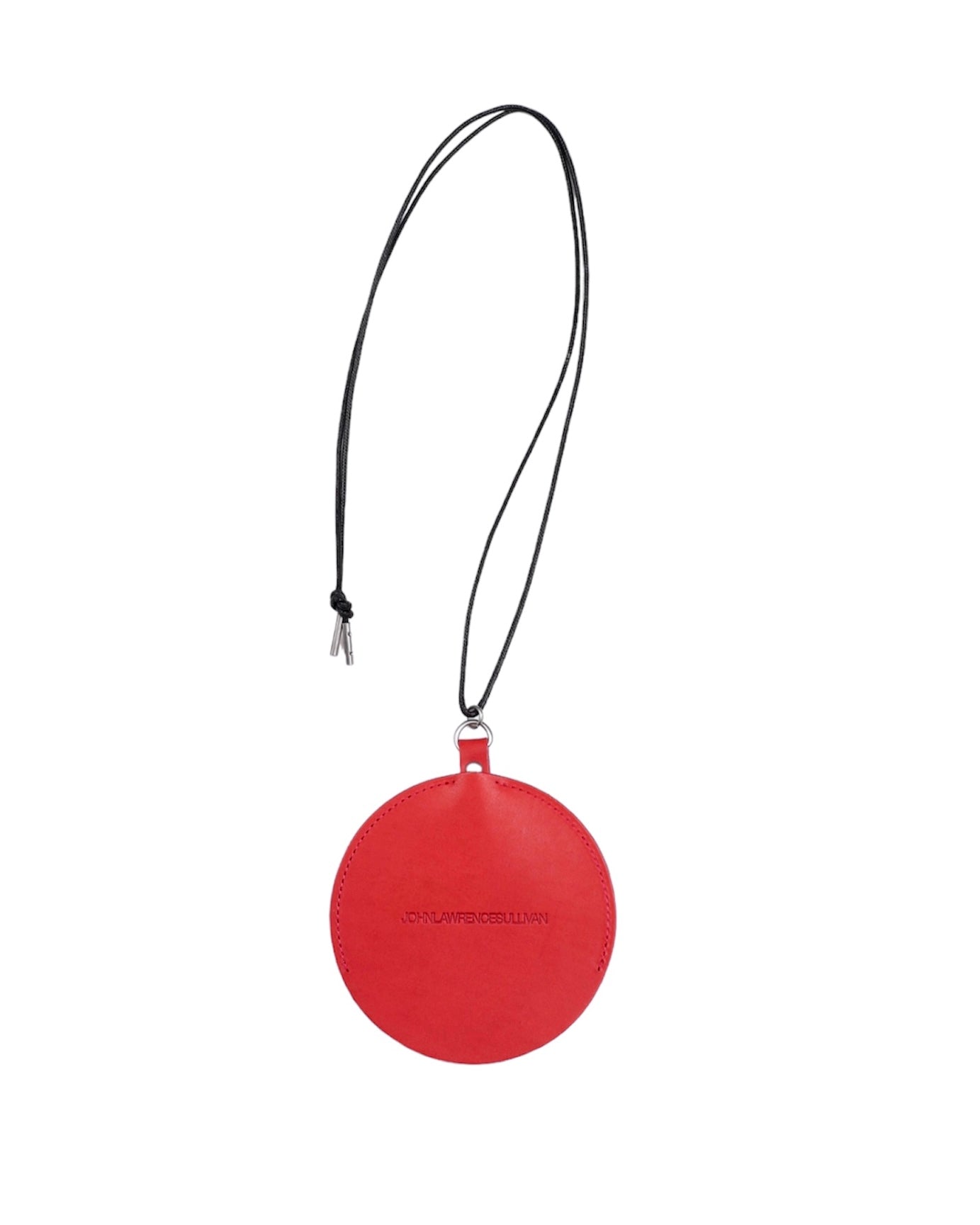 バウハウスデザインの基本形となっている丸、三角、四角をモチーフにしたシリーズ。丸はレザーのキーケースで4色展開。ネックレスとして、また紐を外して腰などにつけることができる2WAY仕様。