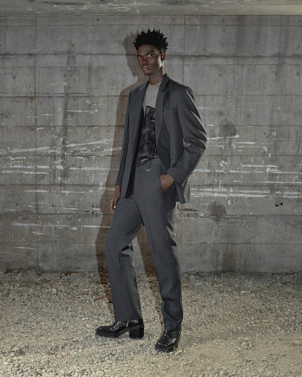 モーターサイクルジャケットをそのままコルセットにしたシャープながらもフェティッシュなデザインが特徴のレザーコルセット。