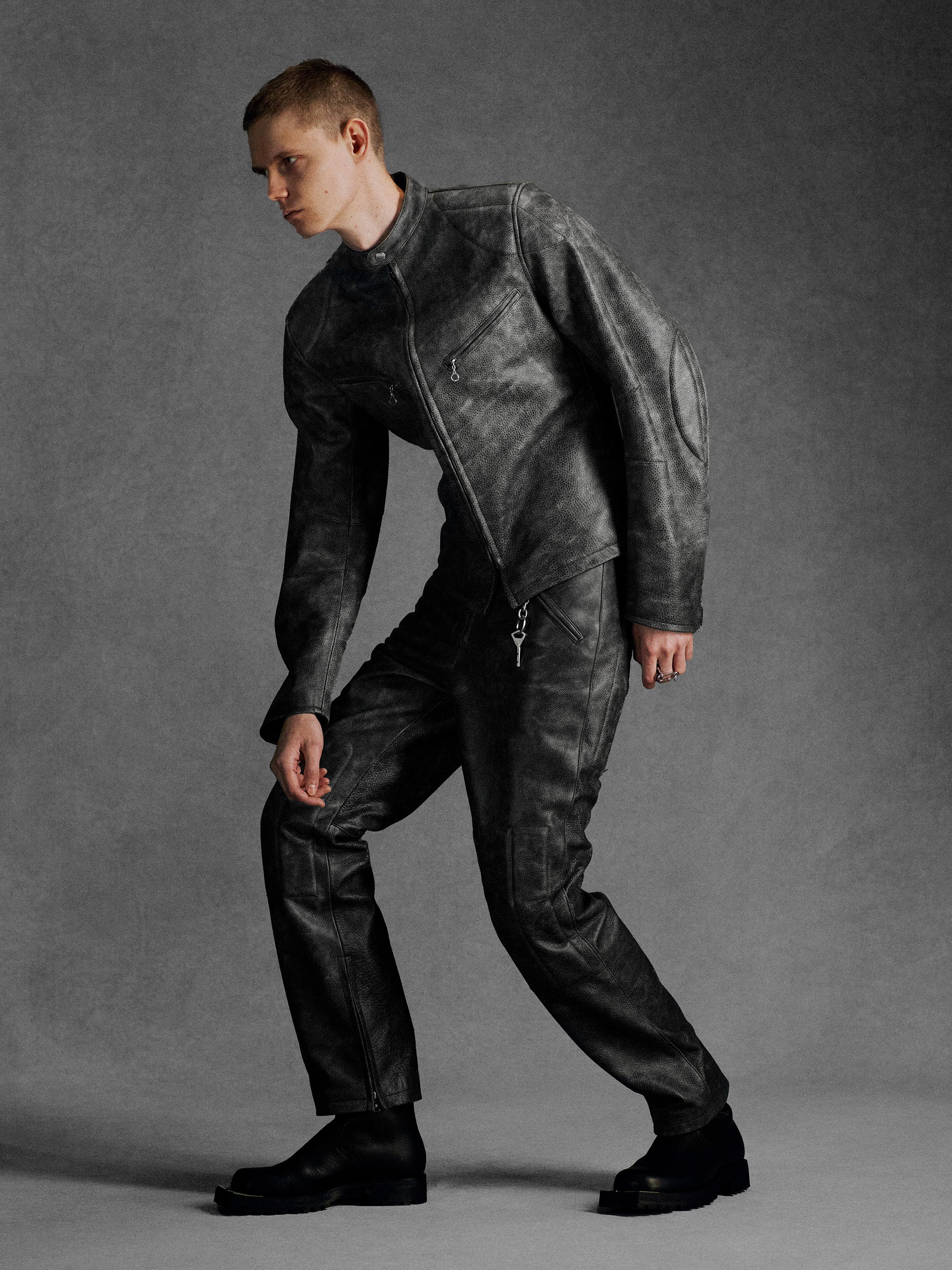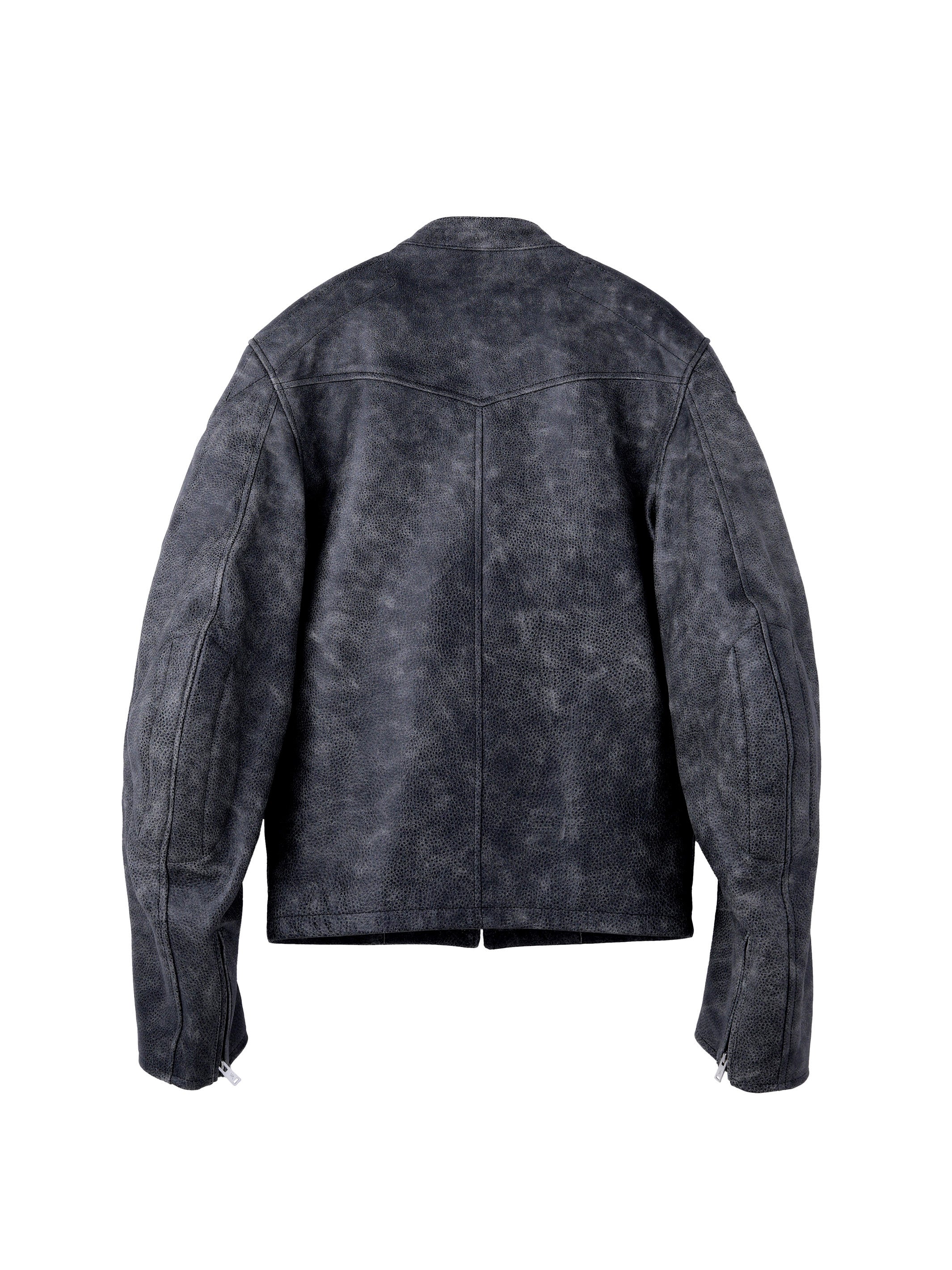 1960年代のレーシングジャケットをベースにデザインされたレザーバイカージャケット。