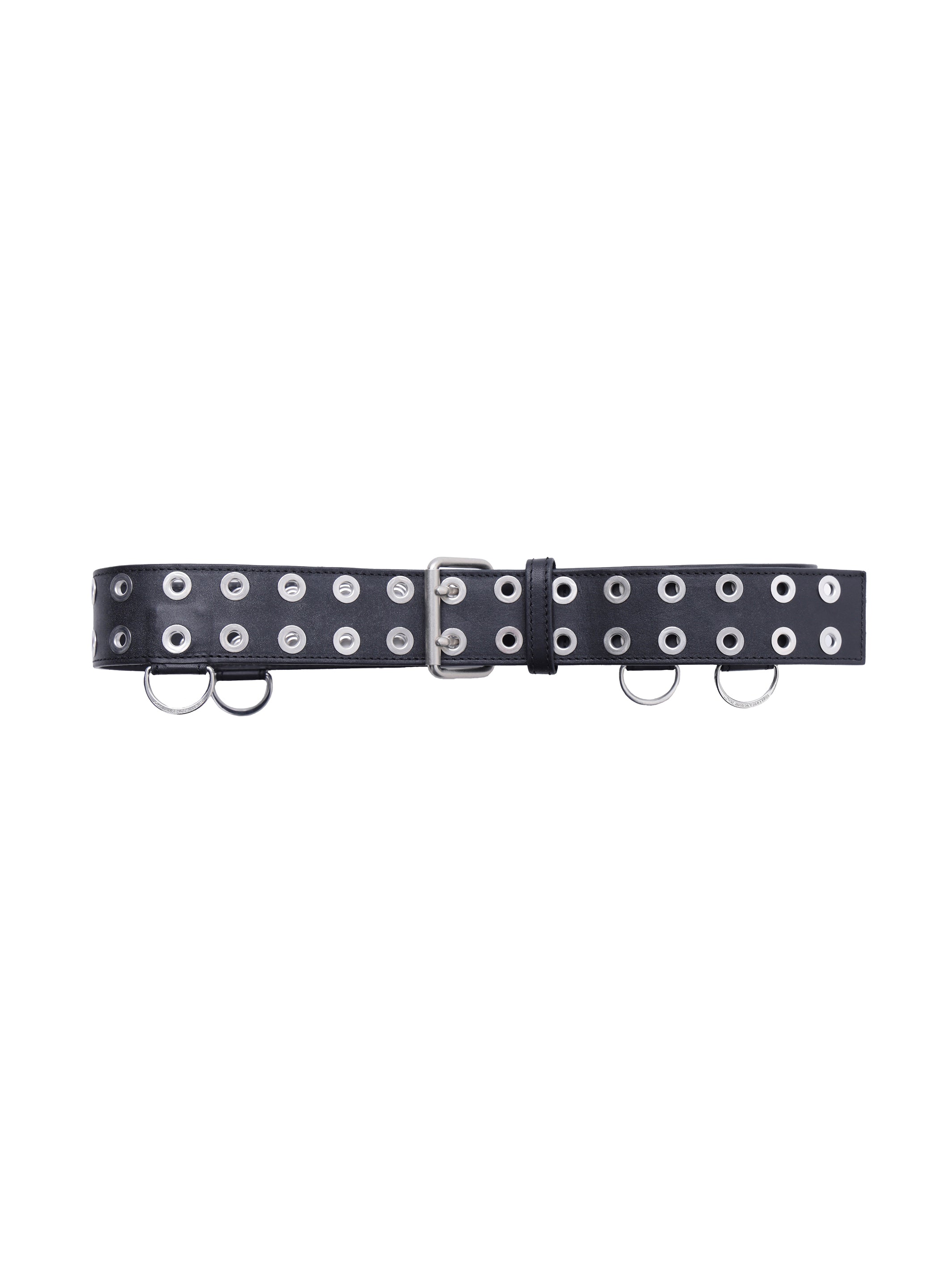 米軍ピストルベルトのデザインを昇華した、ダブルアイレットのレザーワイドベルト。