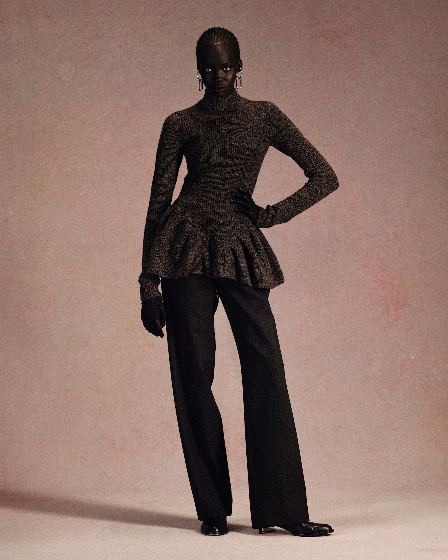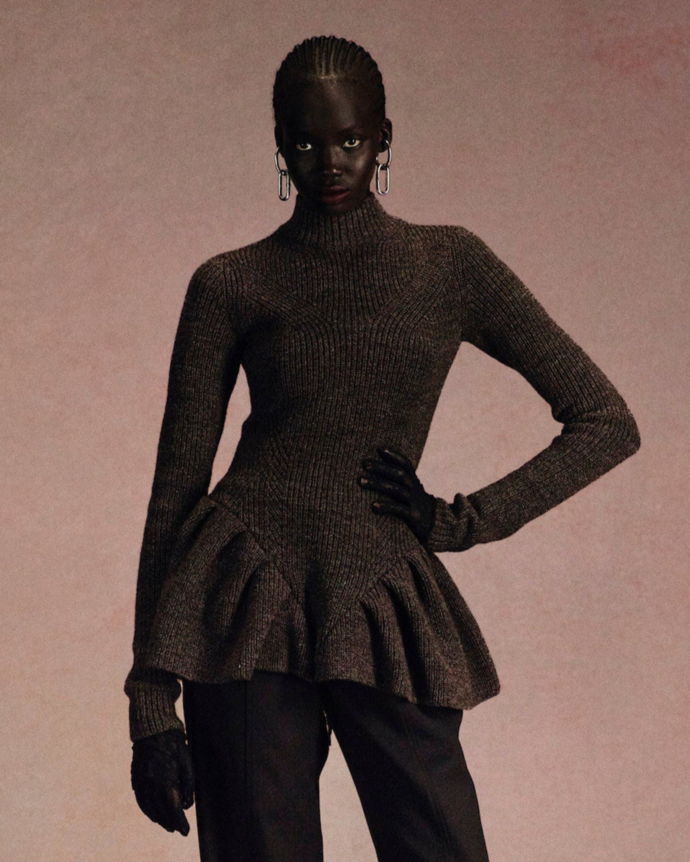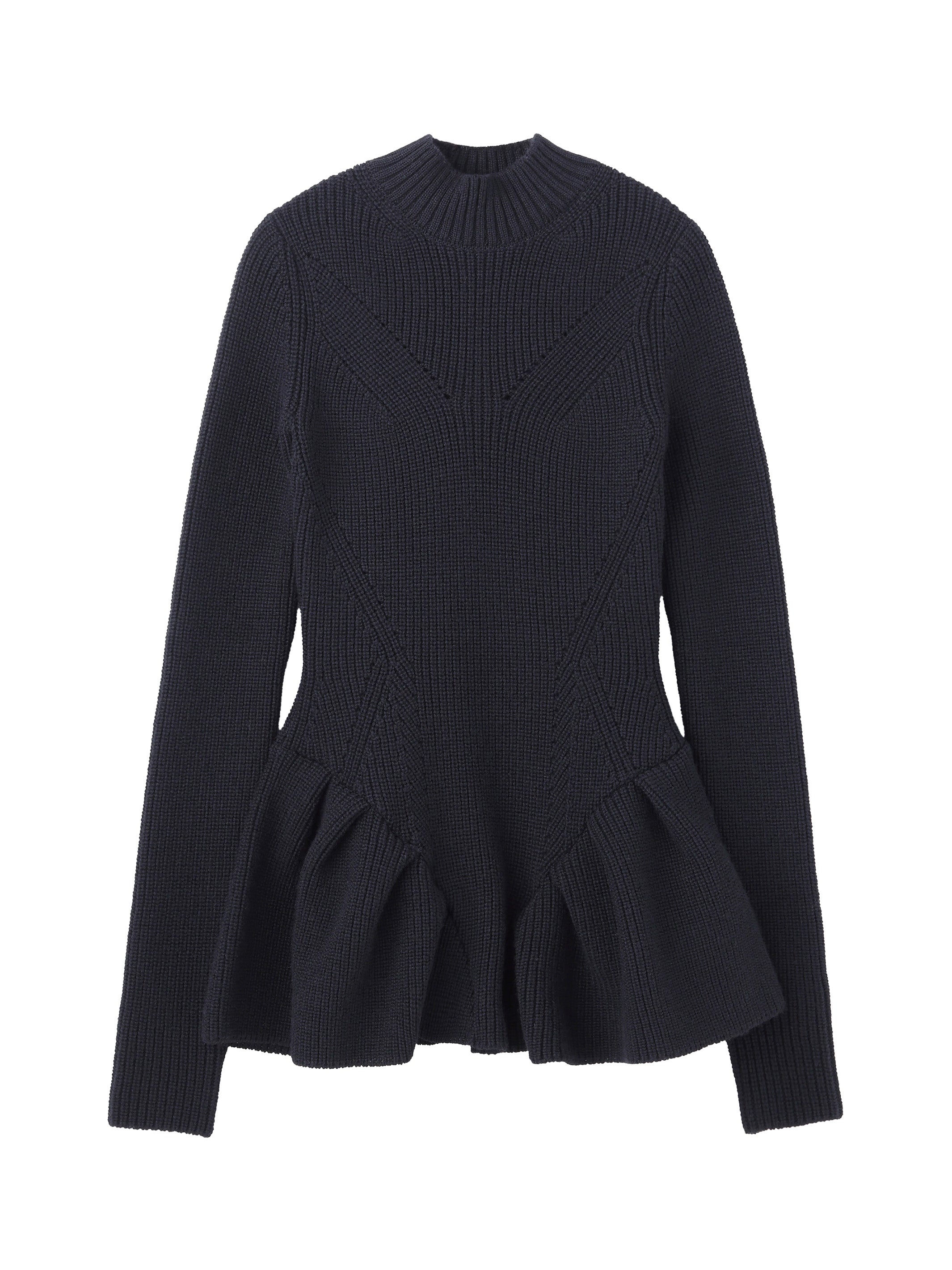 RIBBED PEPLUM HI-NECK KNIT SWEATER