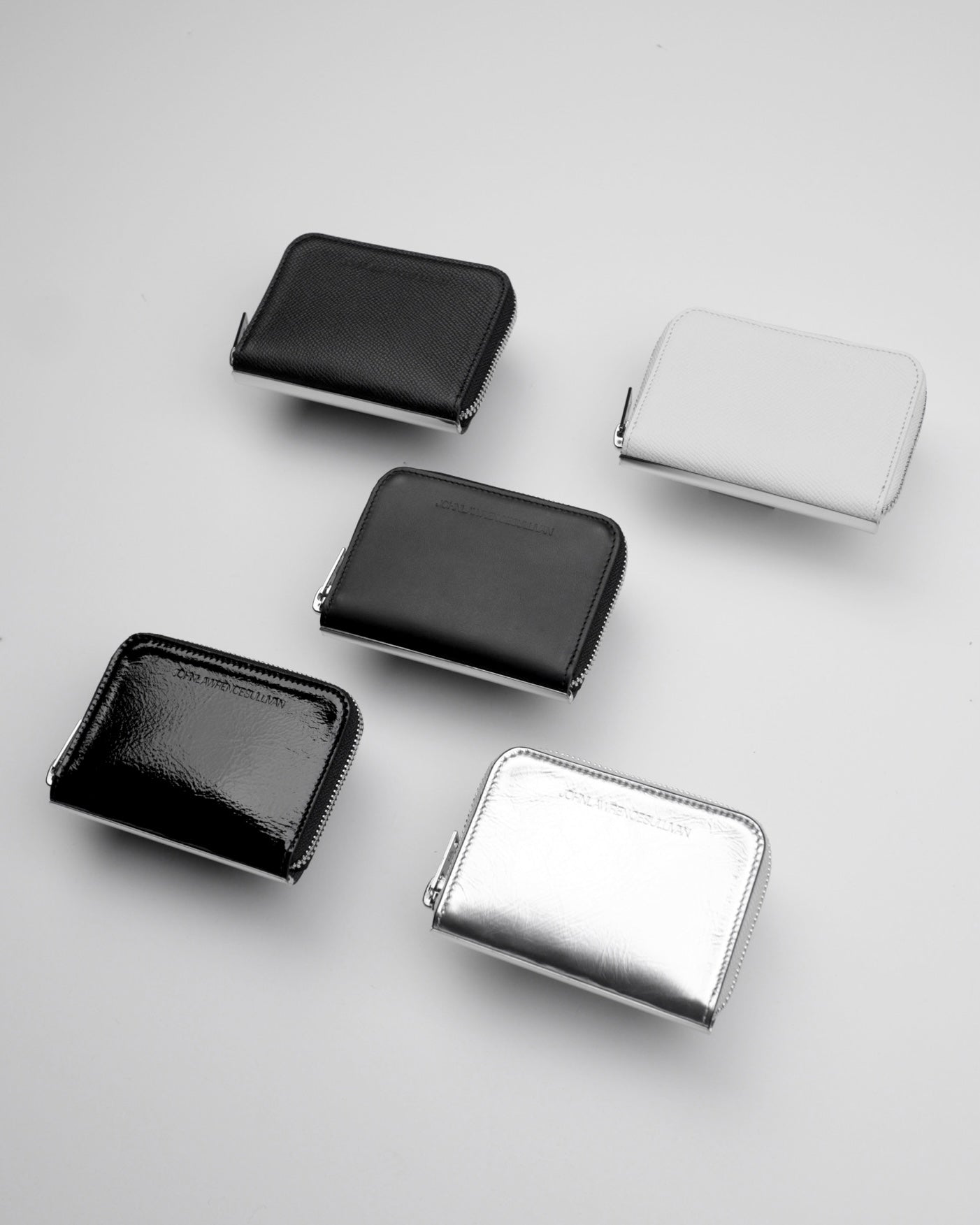 コンパクトなサイズ感のラウンドジップウォレット。シルバープレートが構築的に施された緊張感のあるデザイン。シンプルながらも使いやすさと素材に拘ったつくりとなっており、経年変化を楽しみながらお使いただけます。