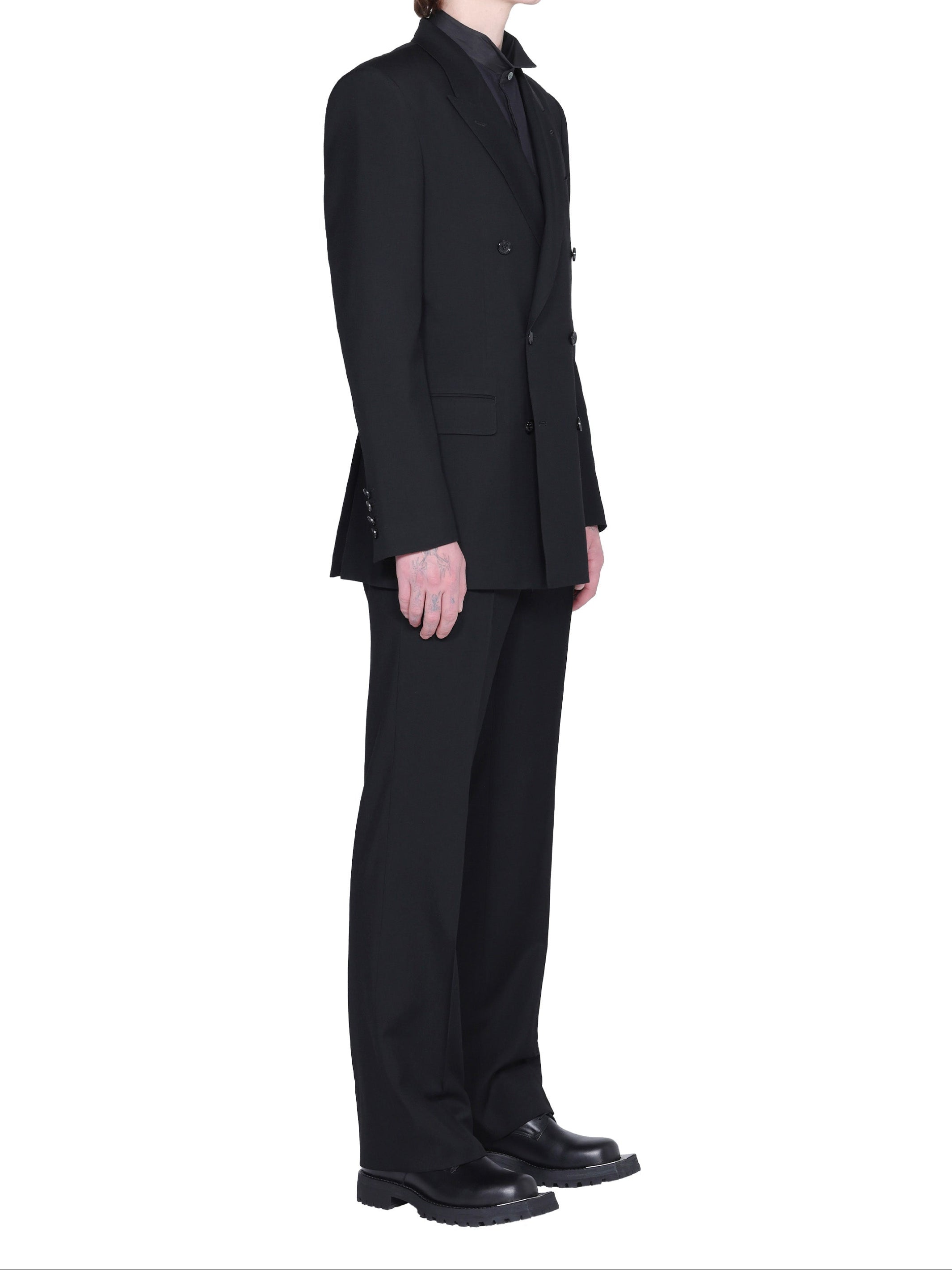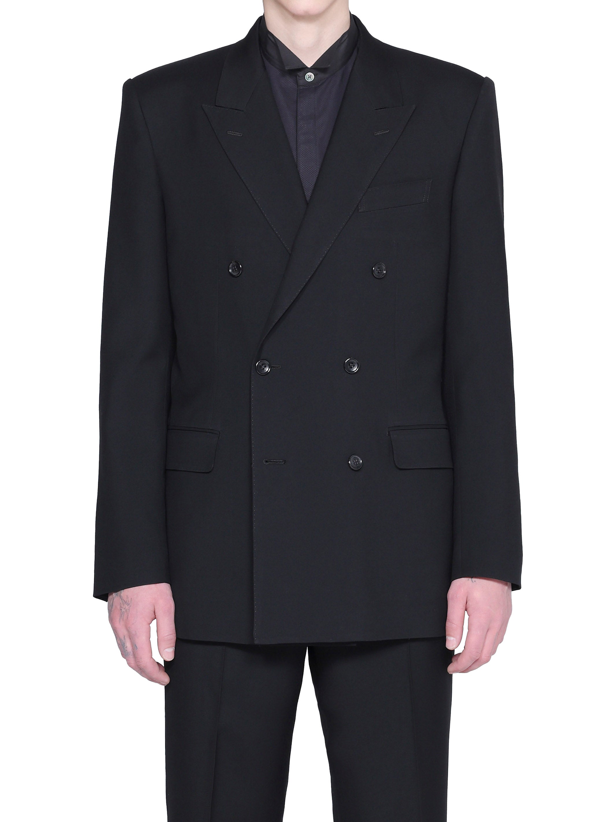 ミニマムで構築的なデザインの定番ダブルブレストジャケット。