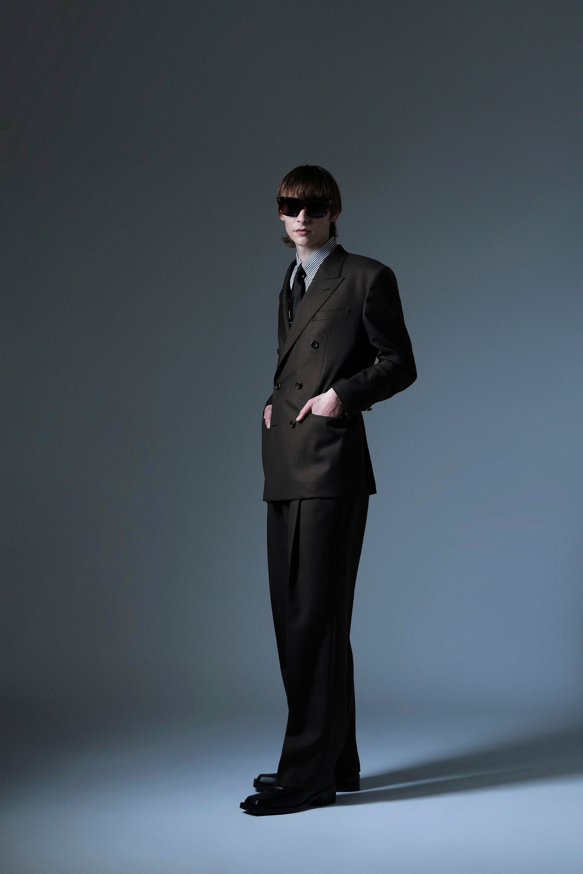 滑らかでハリとコシのある上質なウールサージを使用しており、シーズン問わず着用可能。
