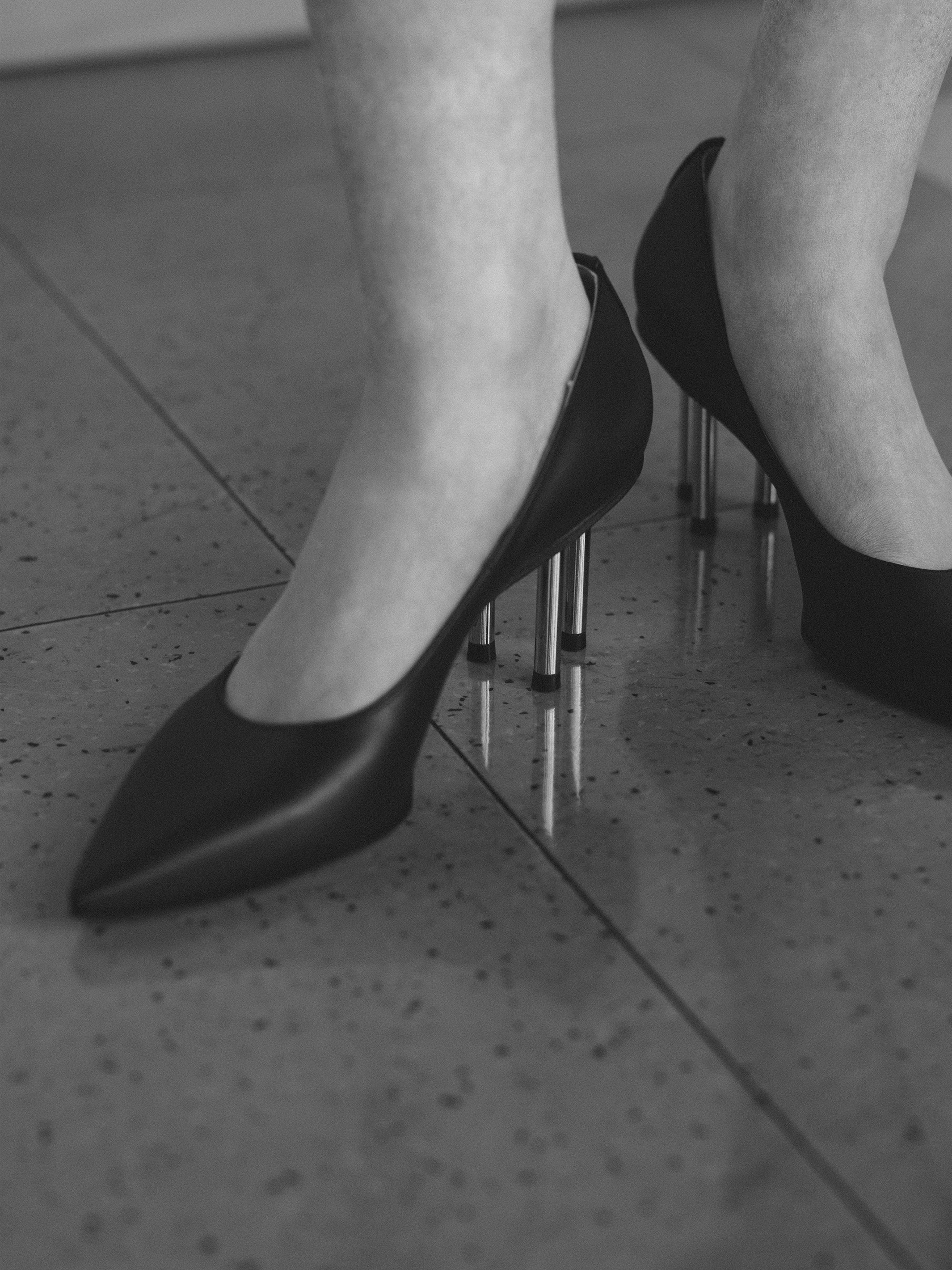 アントチェアの3本脚をウィメンズヒールに落とし込んだ3ピンズパンプス。