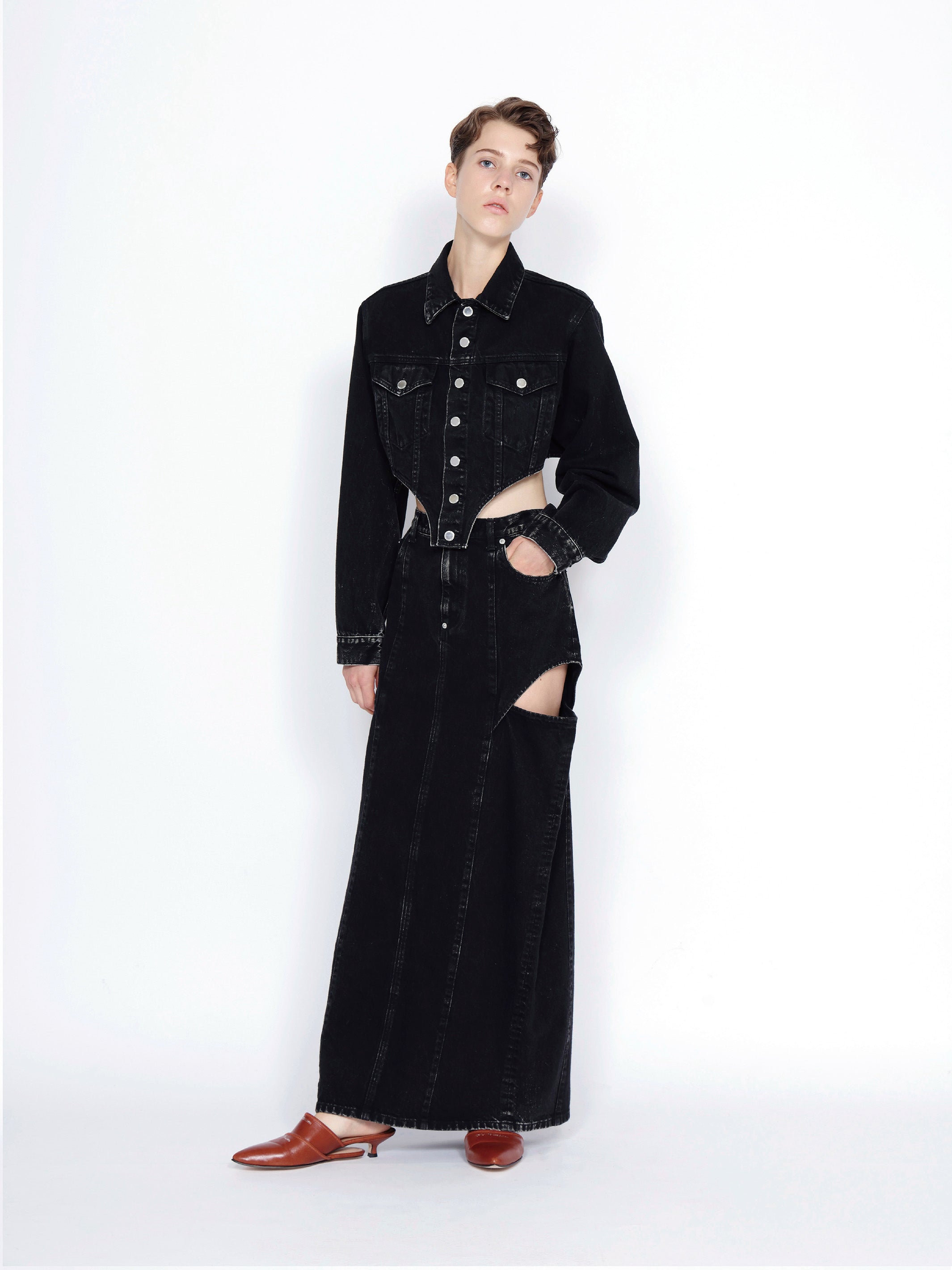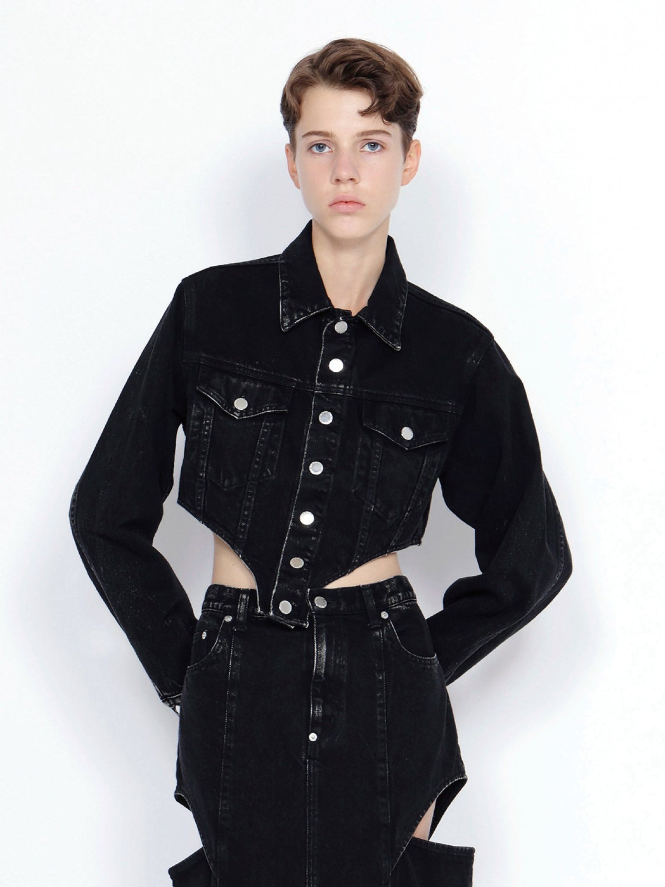 フェティッシュなカッティングのデニムジャケット。