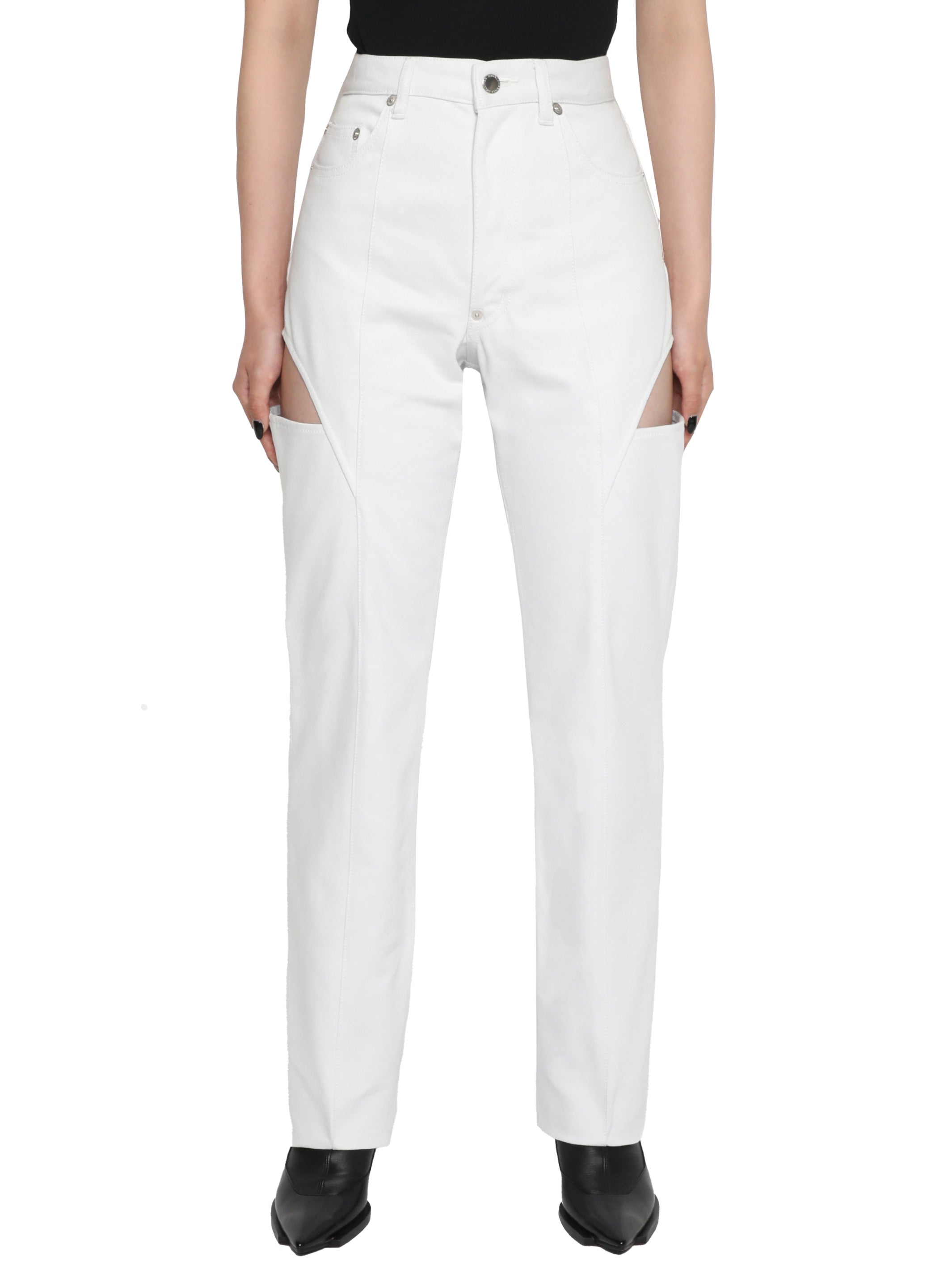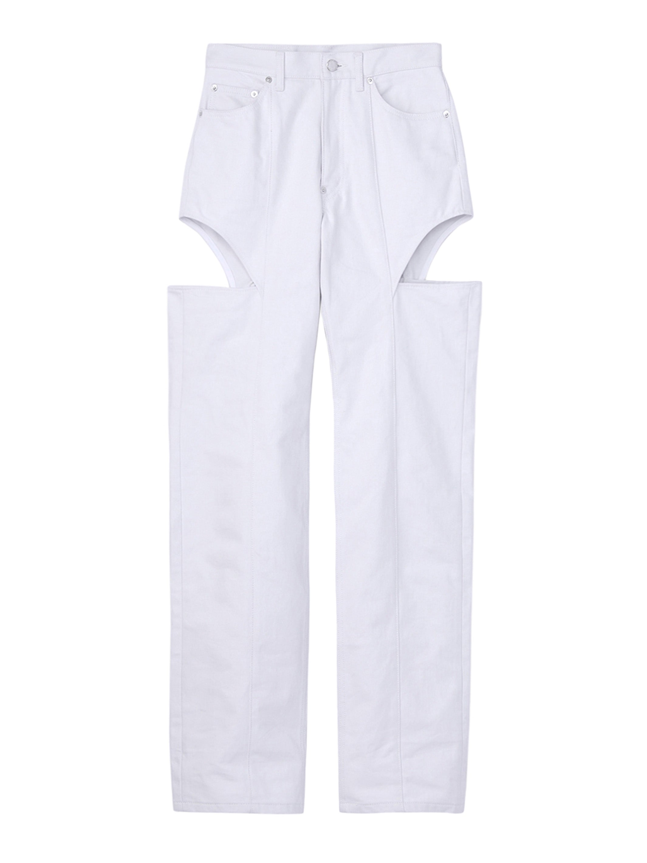 腿部分に入ったカットアウトディテールがポイントの5ポケットデニムパンツ。