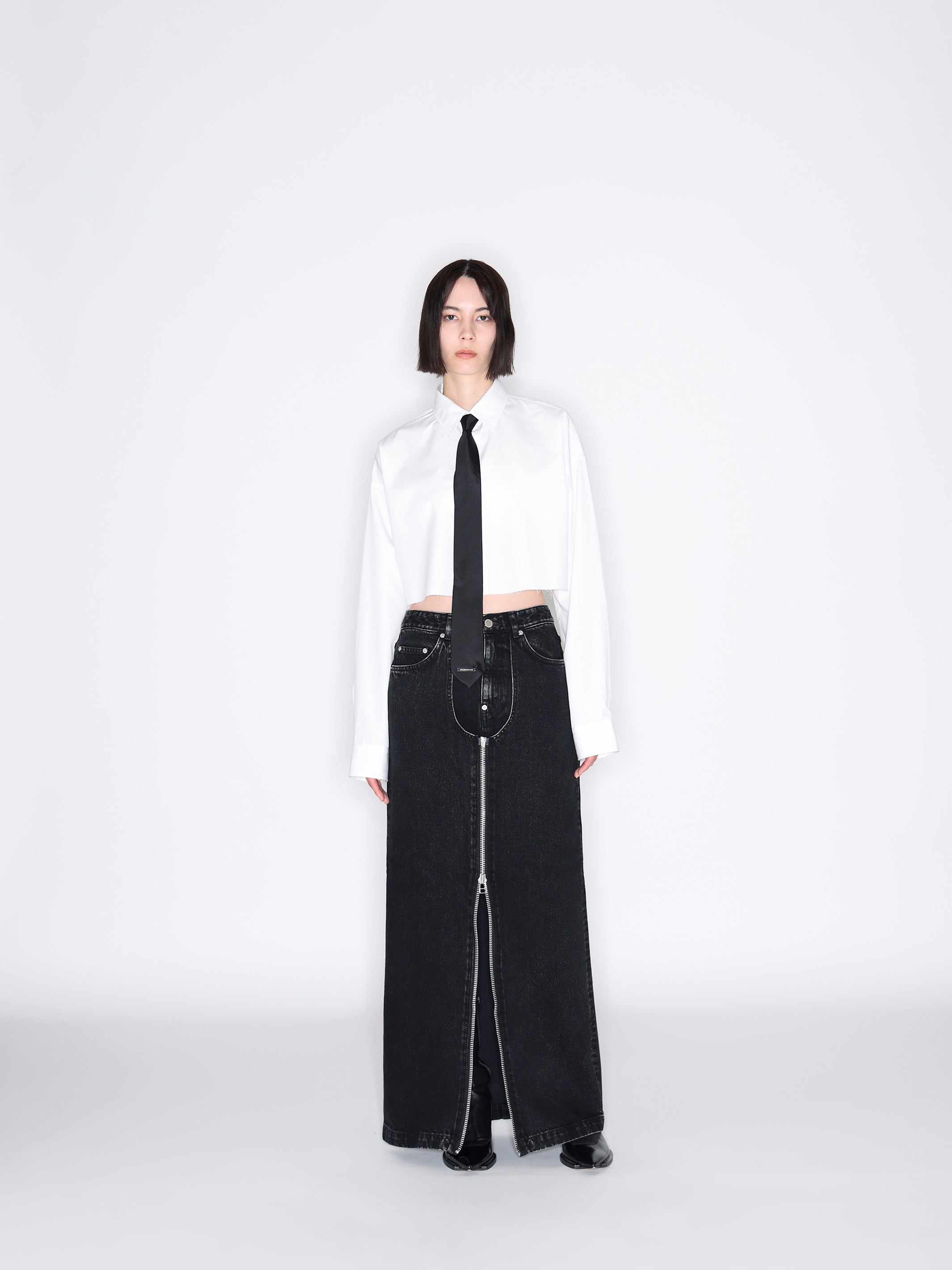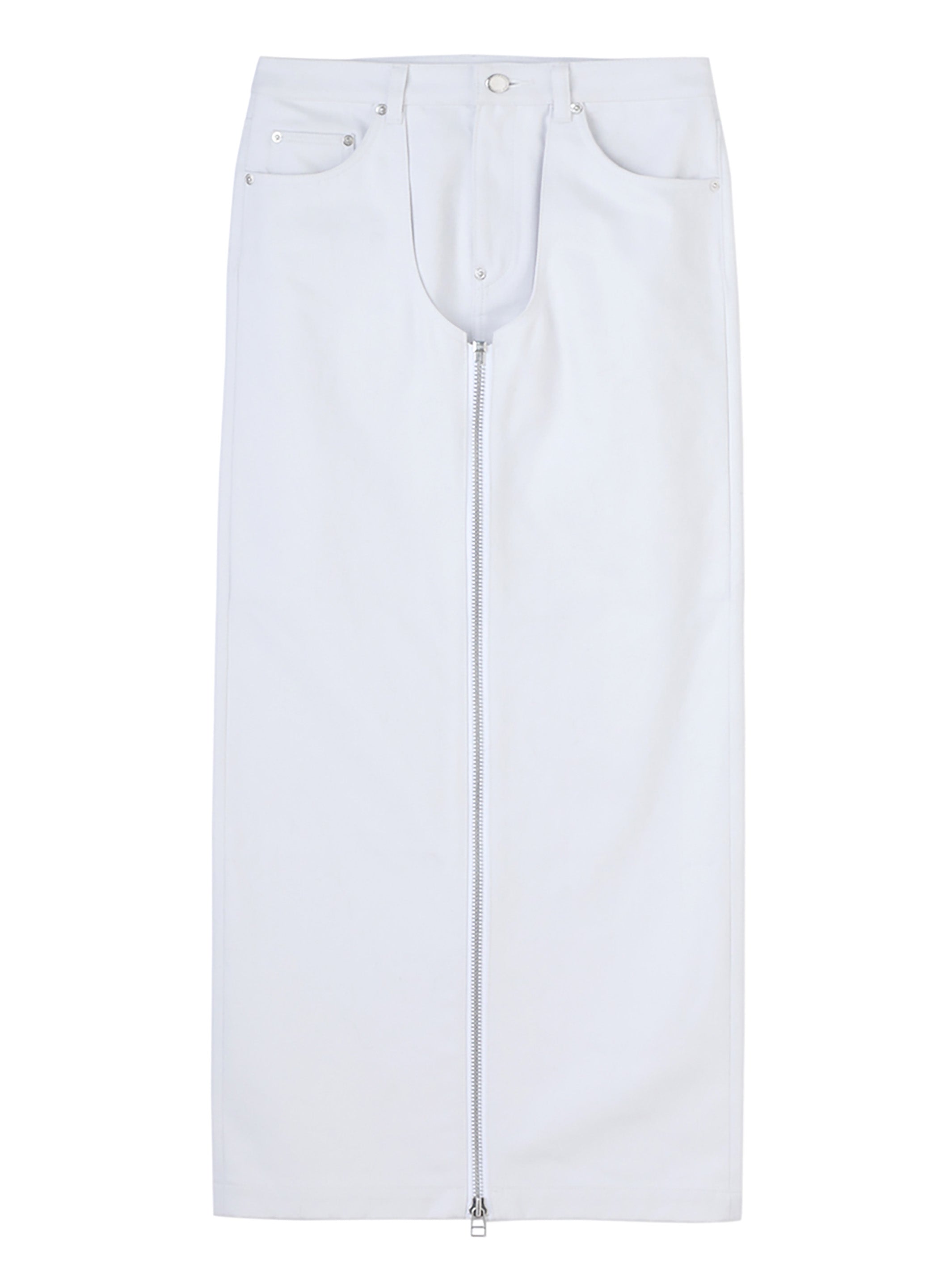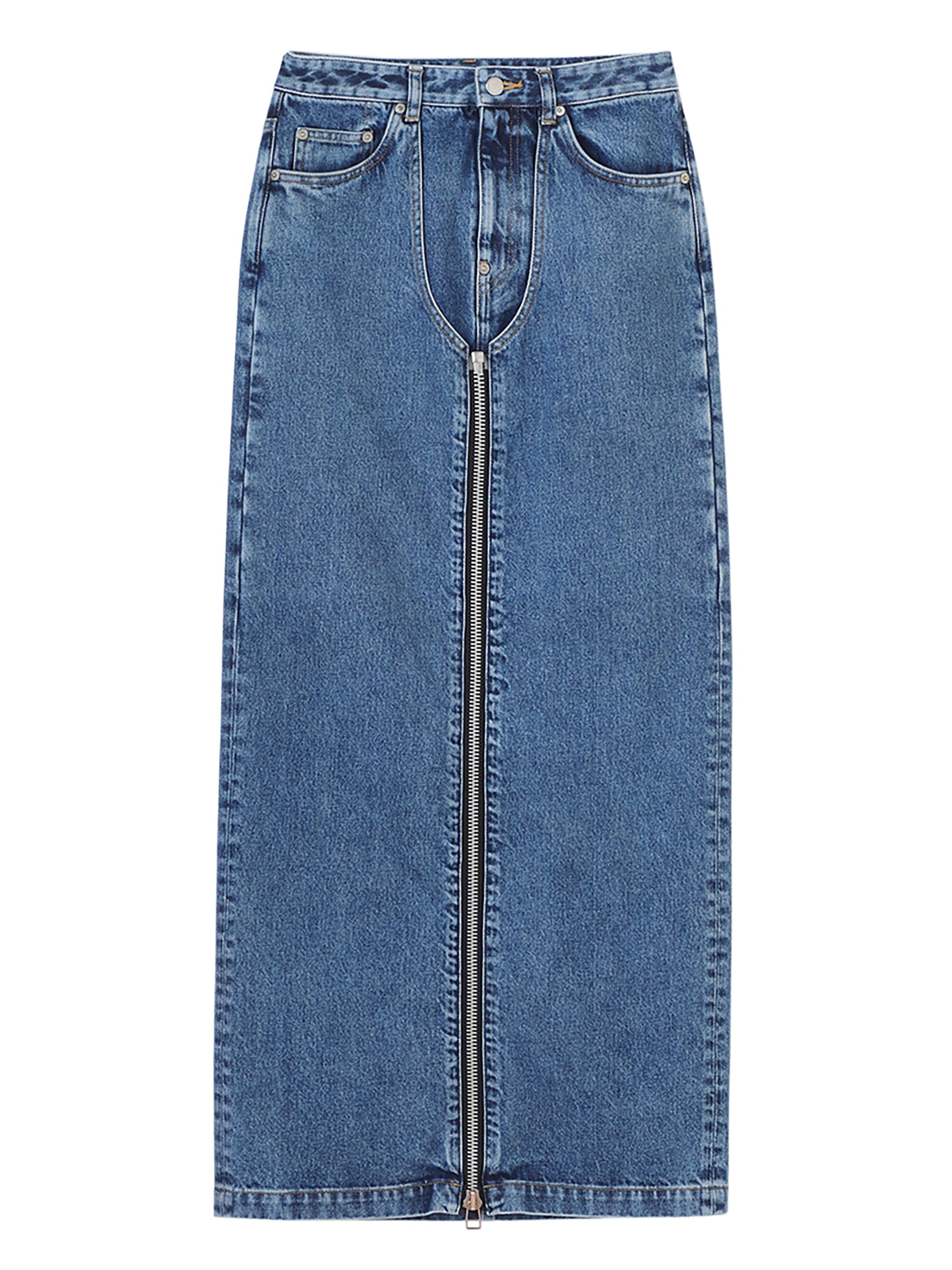 WASHED DENIM ZIPPED LONG SKIRT