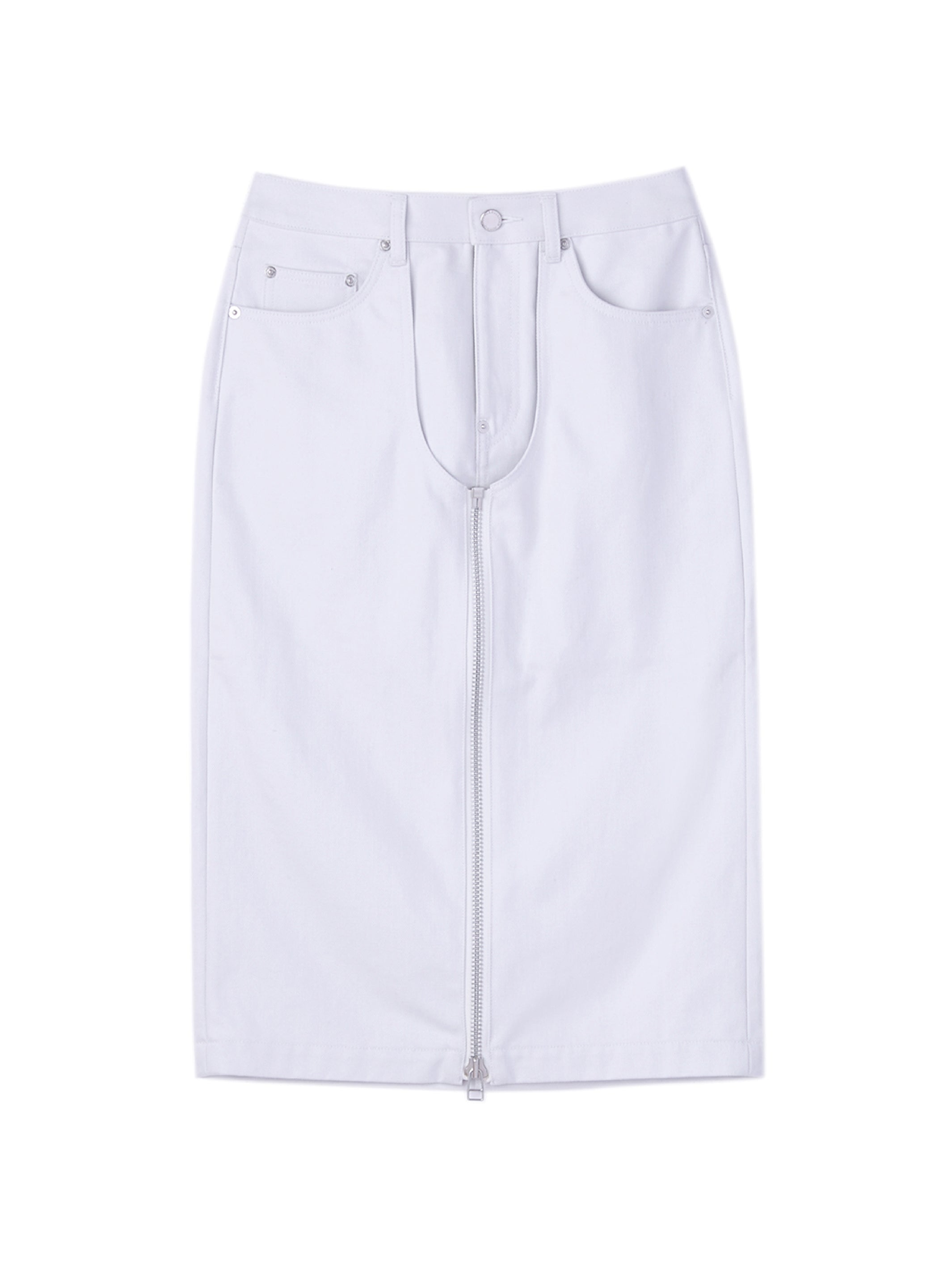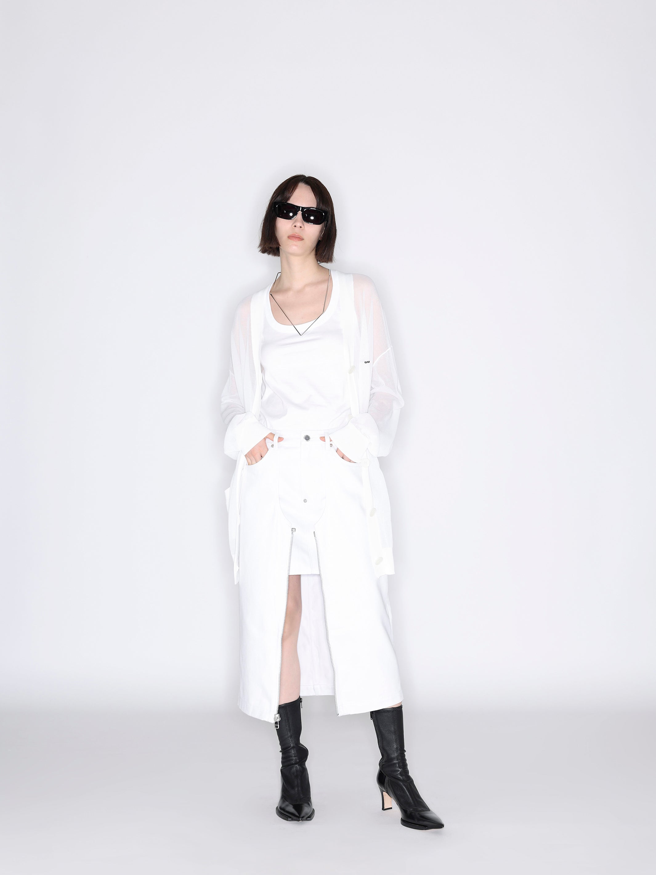 フロントのファスナーを開けることで中に膝上丈のミニスカートが覗き、レイヤードしているようなスタイルを楽しめます。