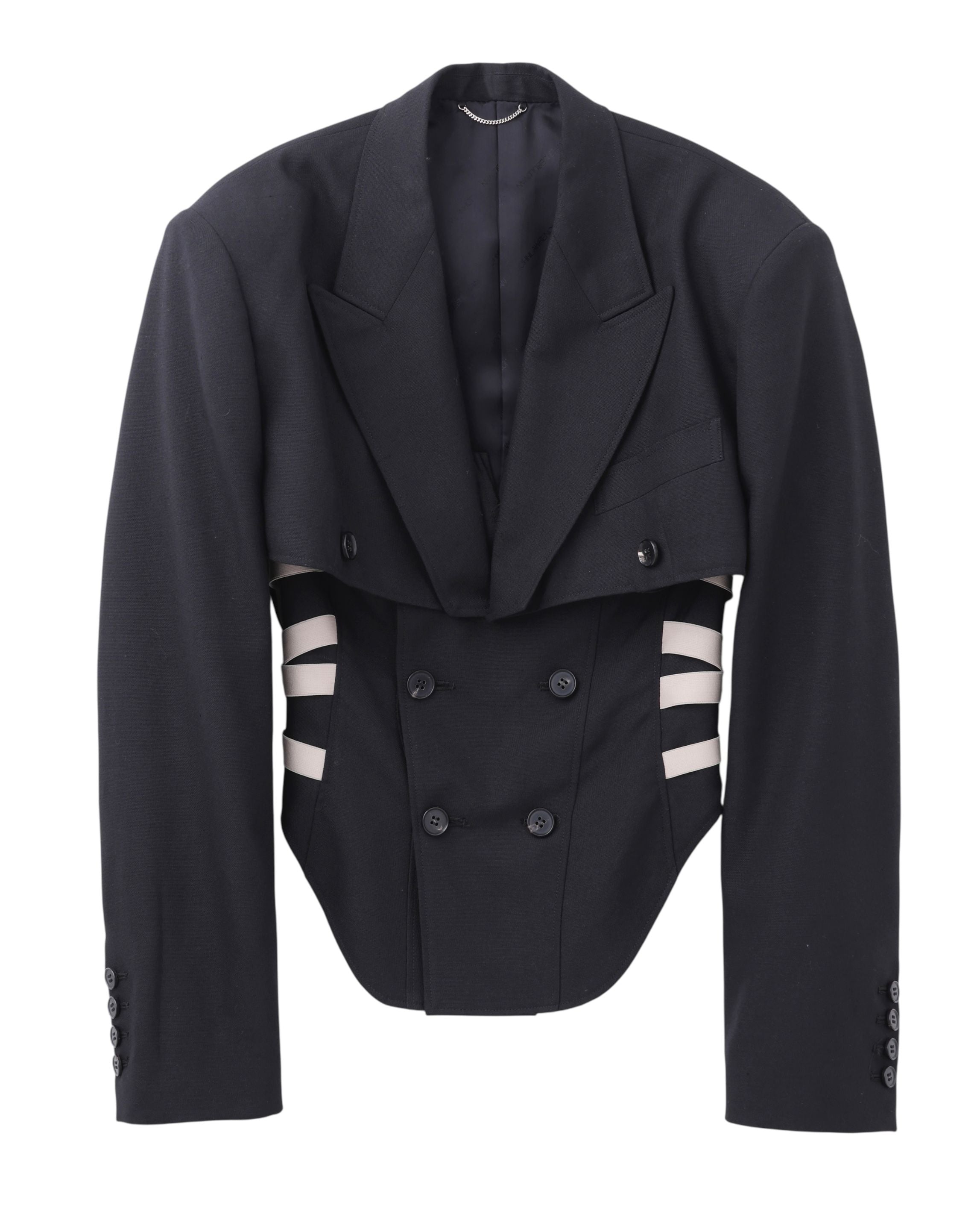 メンズテーラードを基調としたセパレートコルセット付きダブルショートジャケット。