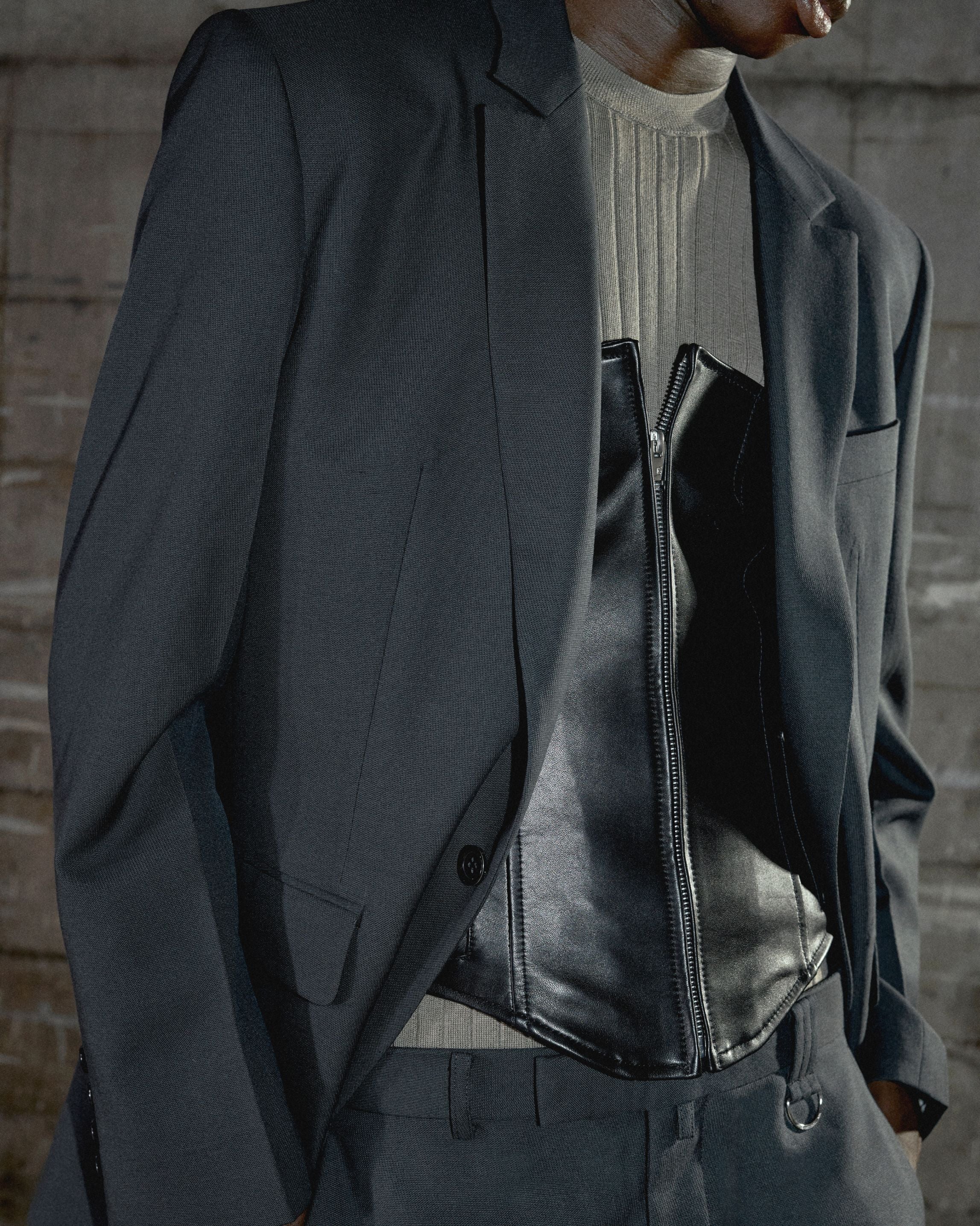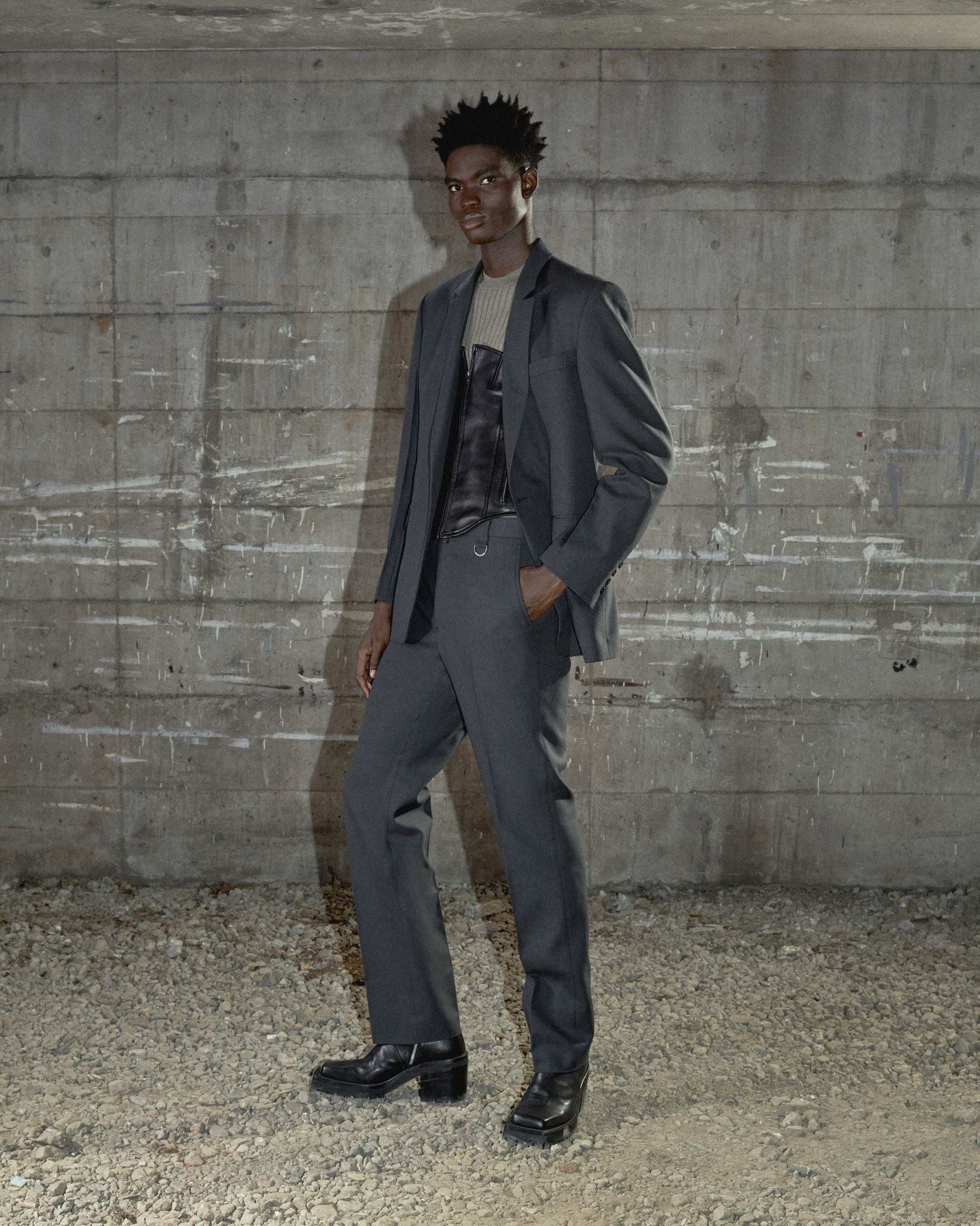 ボリュームのあるショルダーが際立つ、力強く構築的なシェイプシルエット。