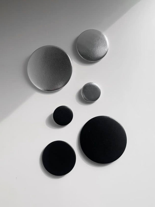 3サイズがセットになったレザーバッジは、ジャケットやカットソーなどのアクセントに。それぞれ、直径7.5cm、5.5cm、3.2cm。
