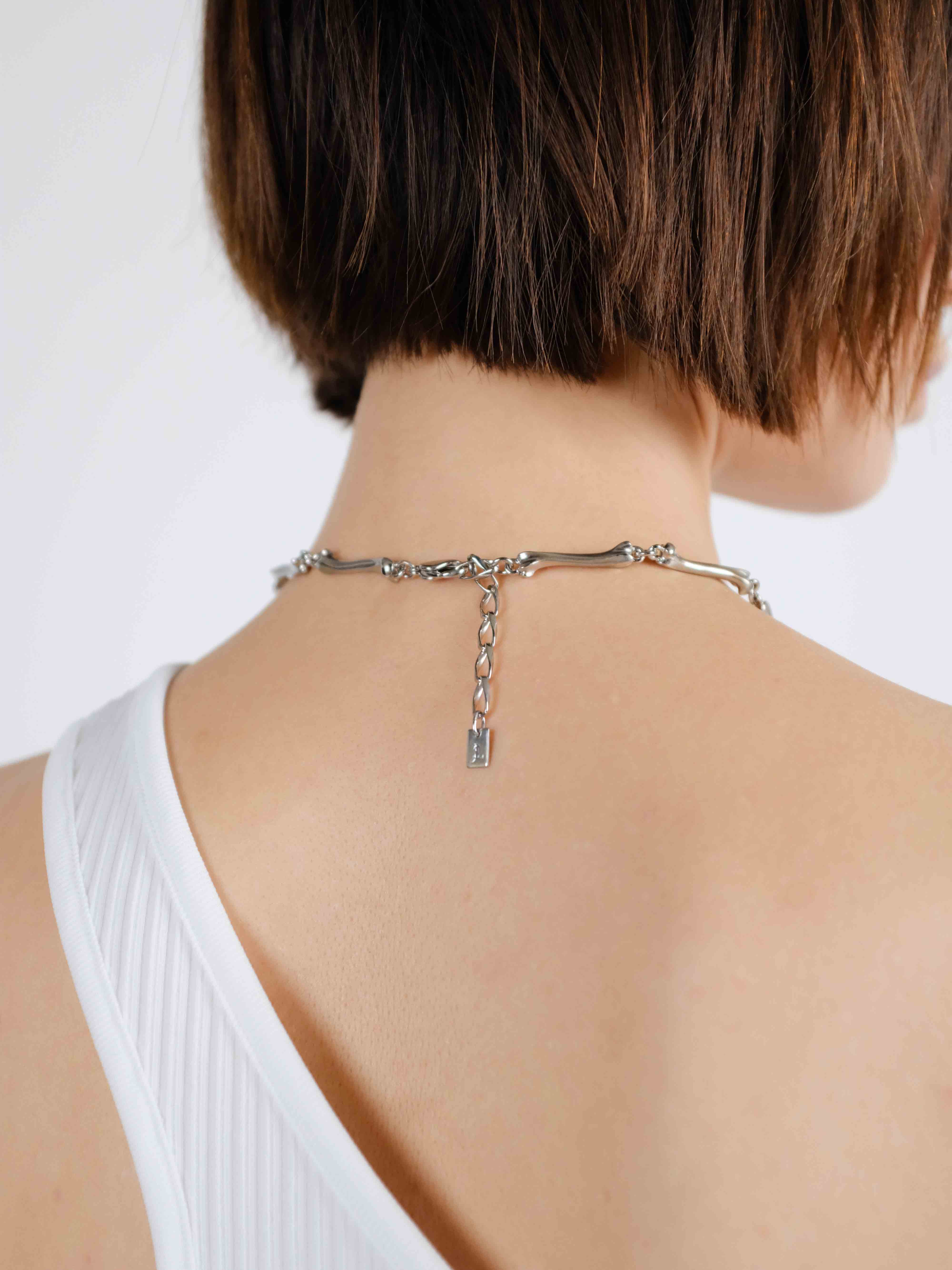 チェコ、クトナー・ホラにあるセドレツ納骨堂よりインスピレーションを得て製作されたボーンモチーフのネックレス。ユニセックスで着用可能なシンプルかつミニマルなデザイン。『JOHN LAWRENCE SULLIVAN x YOSHiKO CREATiON』コラボレーションアイテム。