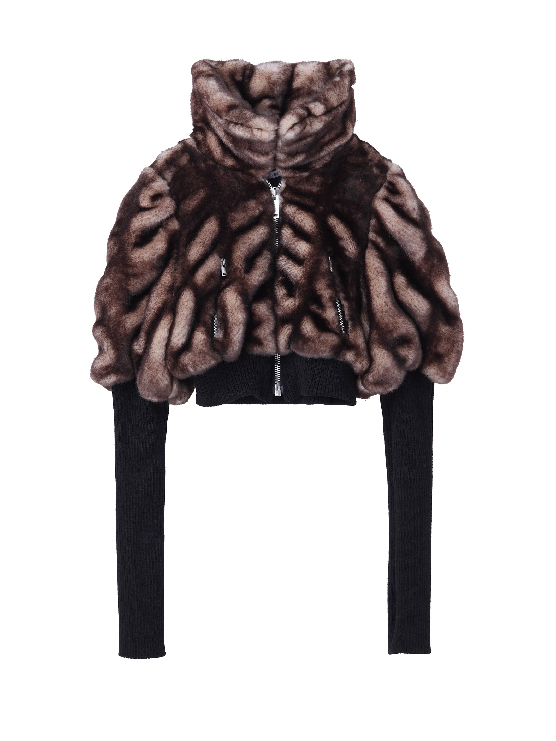 クロップド丈の身頃にボリュームのあるパフスリーブが特徴的なボレロファーブルゾン。