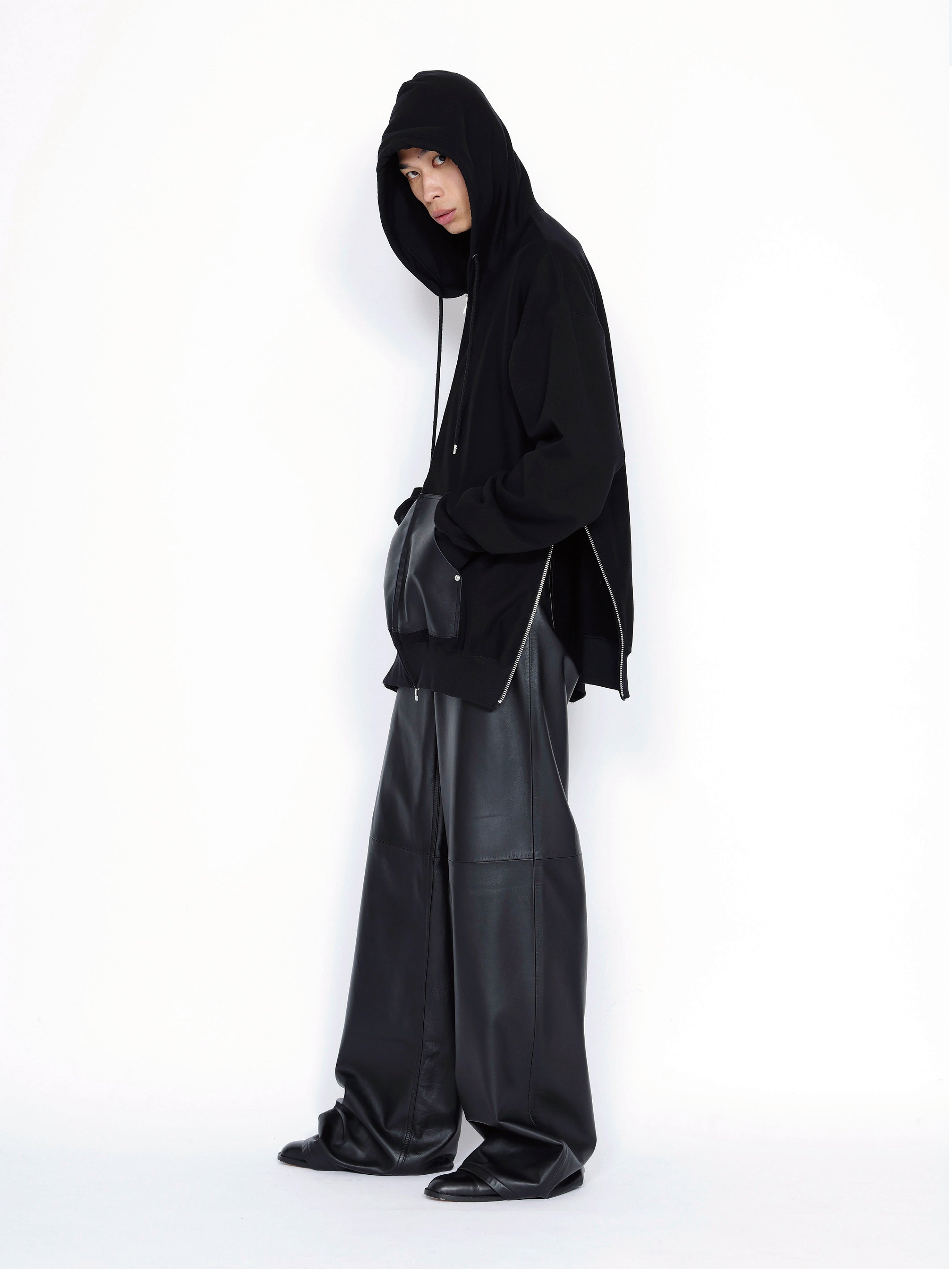 両脇に配置したジップデザインが特徴的で、ゆったりとしたオーバーサイズシルエット。
