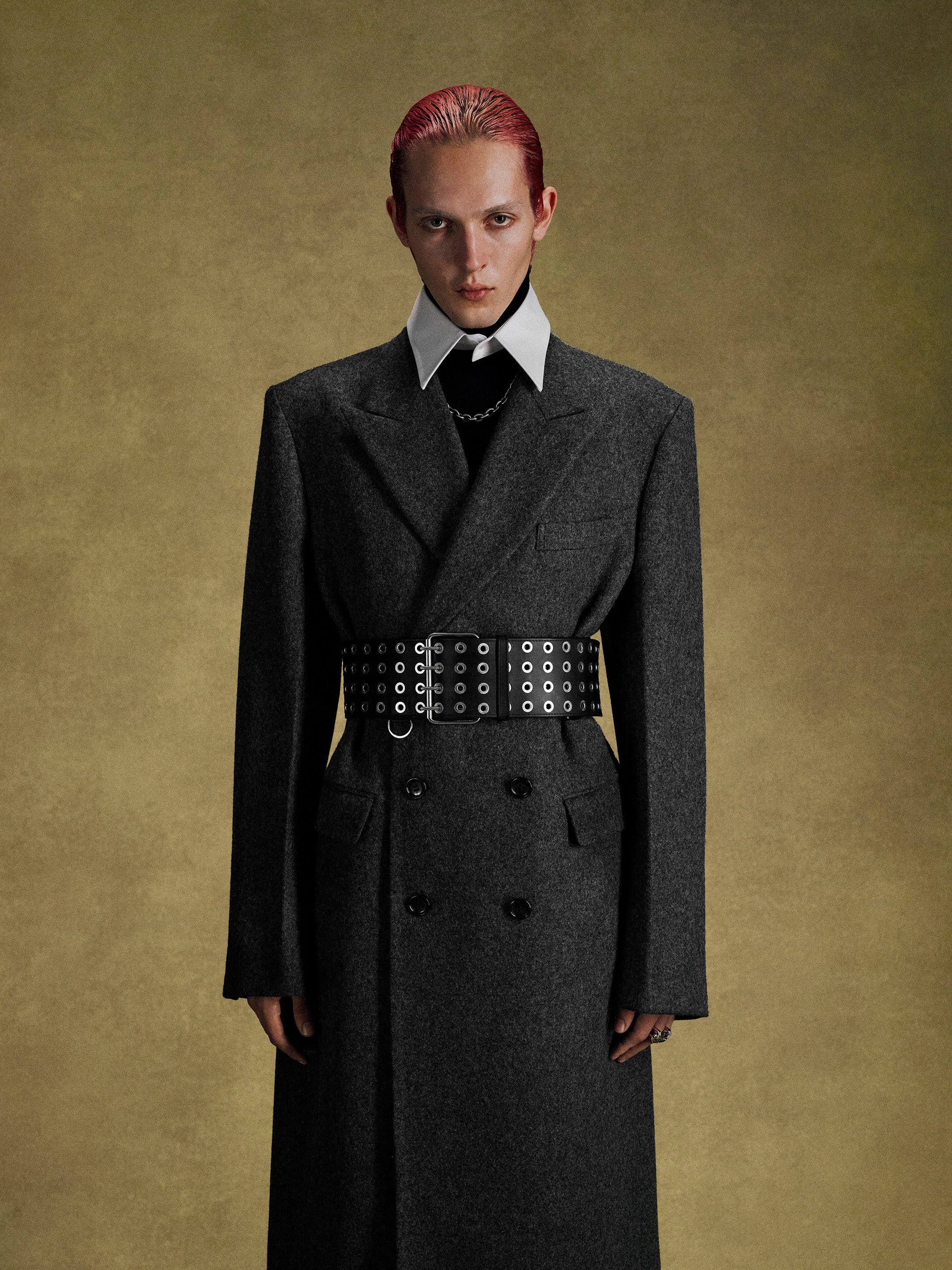 米軍ピストルベルトのデザインを昇華した、クアドラプルアイレットのレザーワイドベルト。