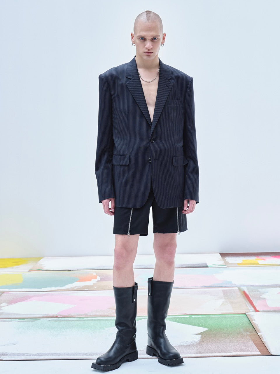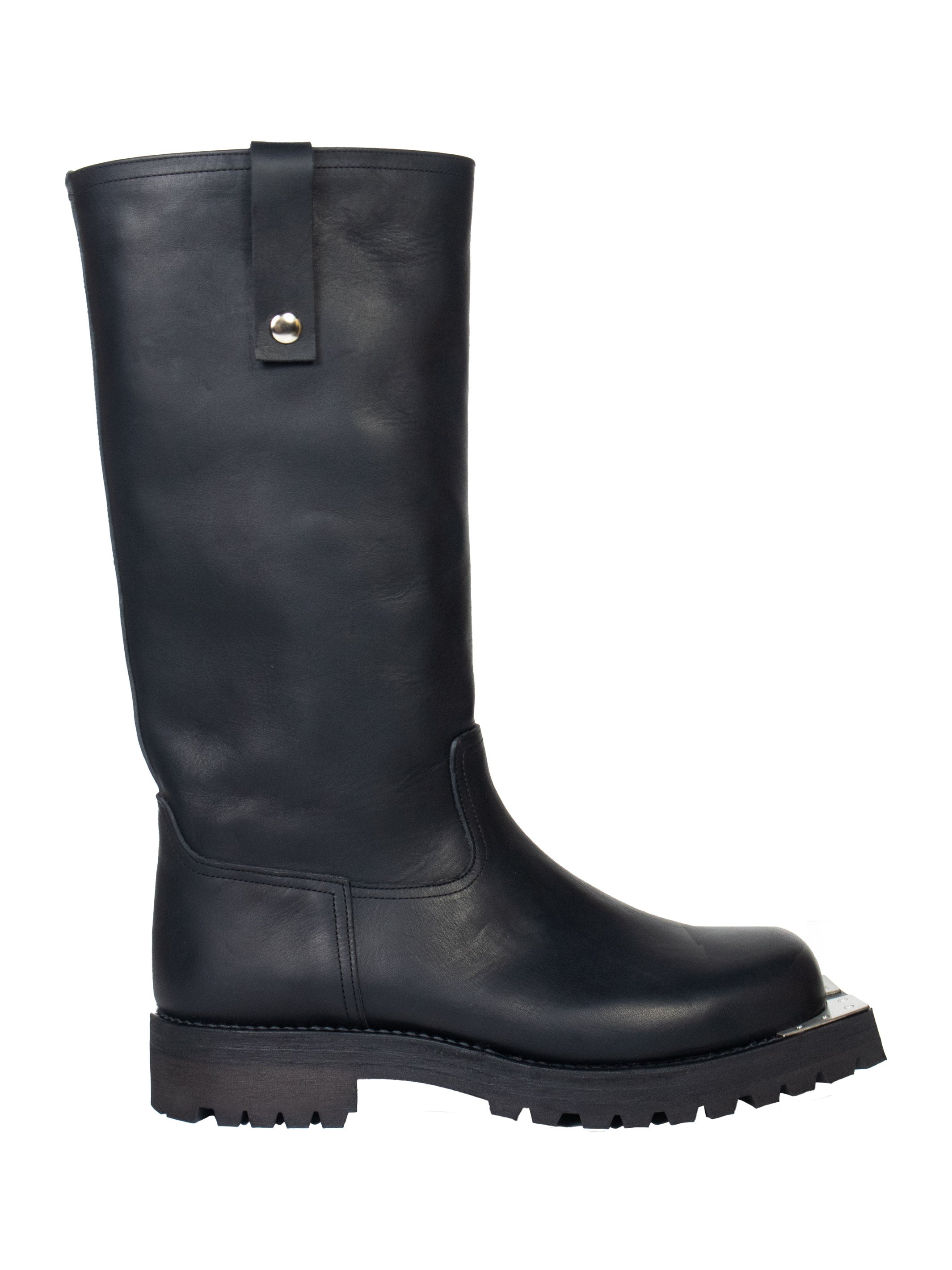 トゥにインパクトのあるメタルパーツを施したペコスタイプのハーフ丈ブーツ。無骨でありながらモードな印象の一足。