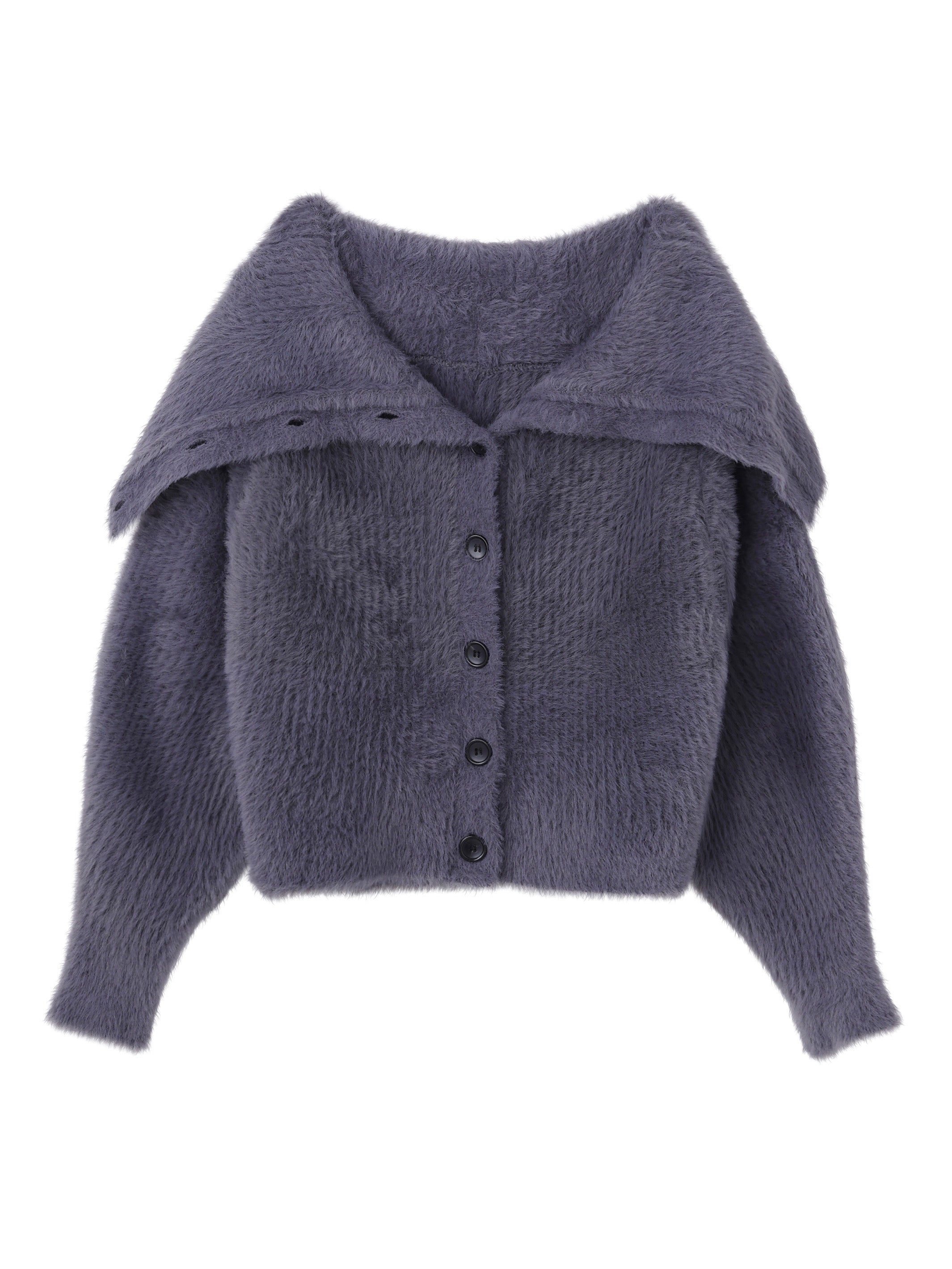 RIBBED SHAGGY OVER HI-NECK KNIT CARDIGAN