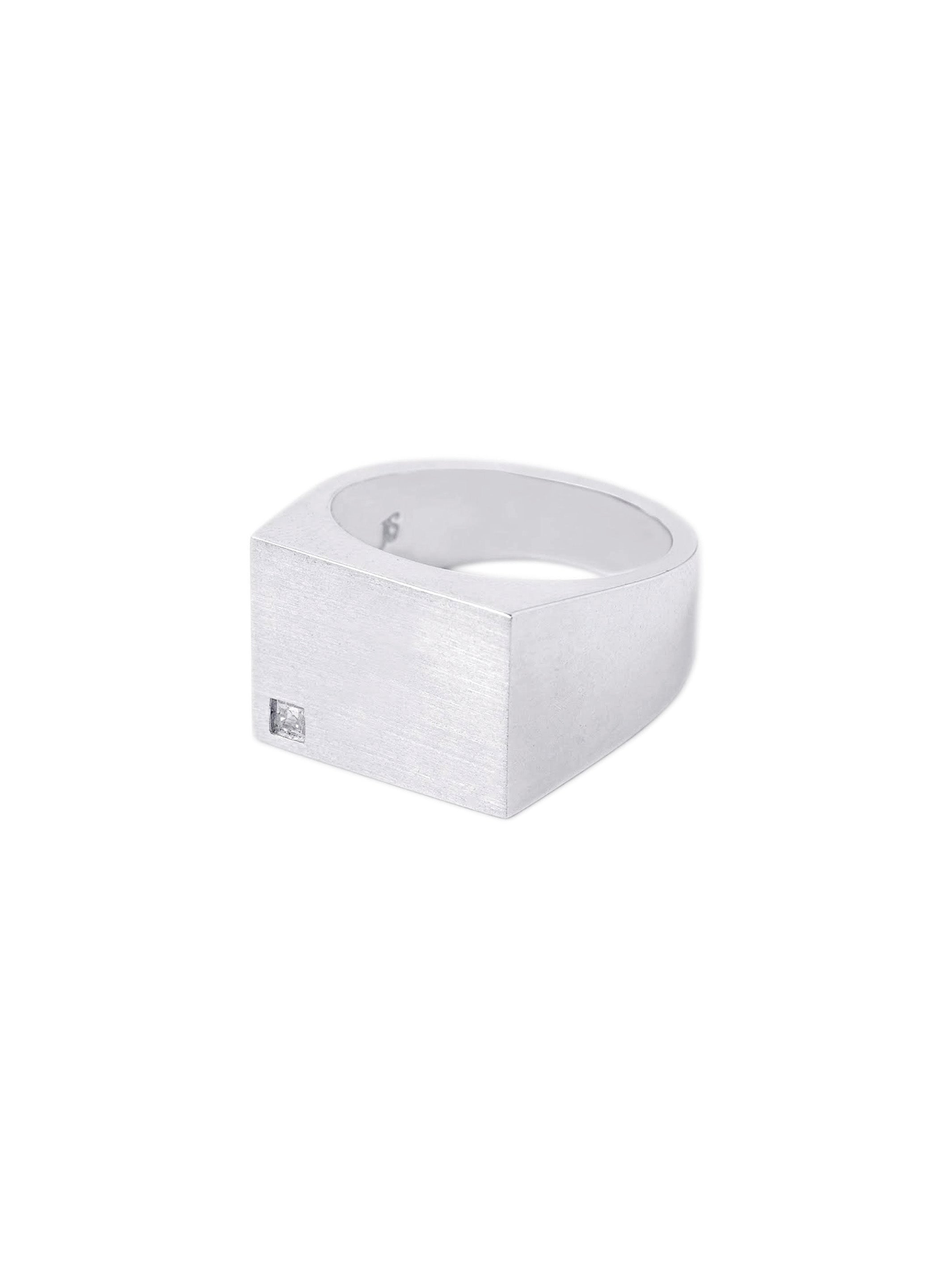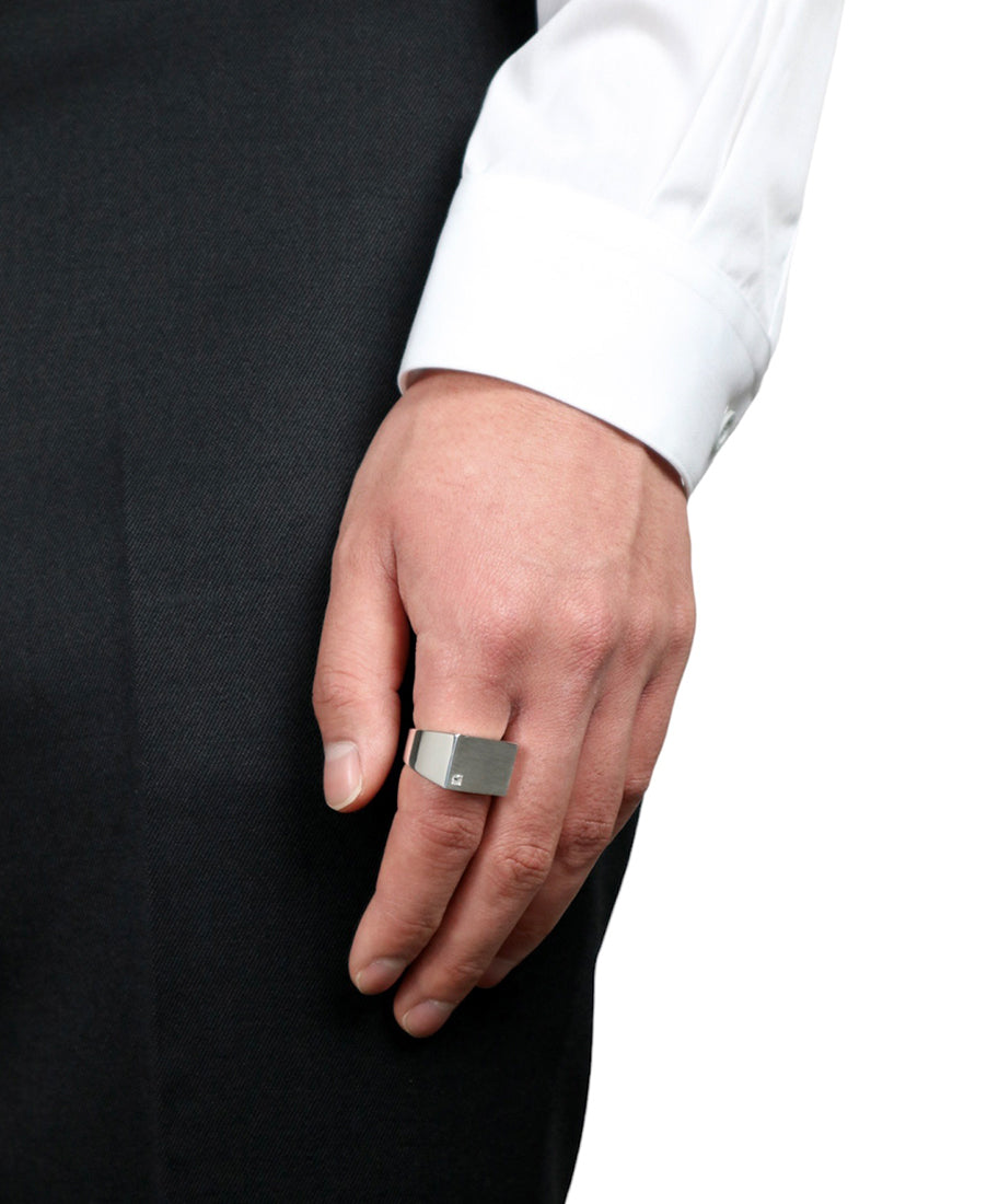 クラシカルで紳士的な風格を持つジルコニアが埋め込まれたシグネットリング。シルバー925を使用した重量感のあるメンズジュエリー。