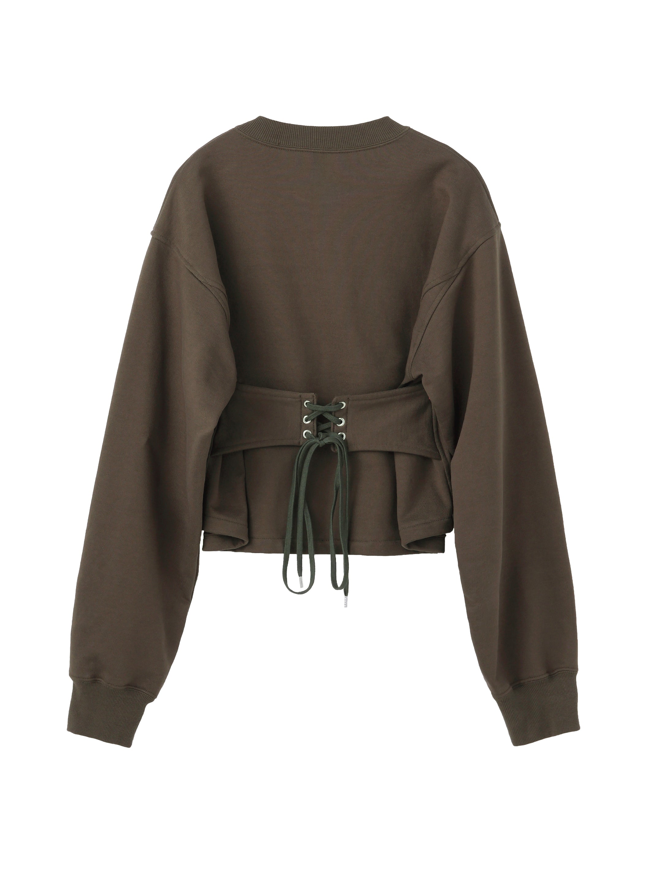 細腹から伸びるバックレースアップディテールでウエストシェイプの効いたタイトシルエット