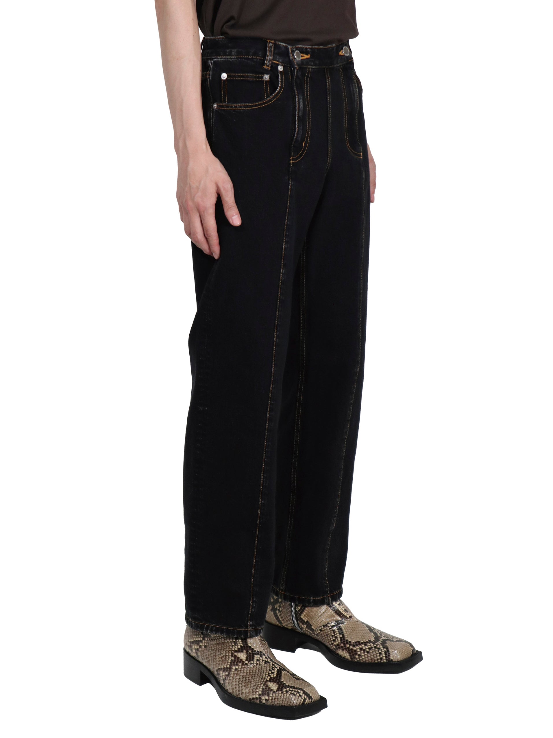 WASHED DENIM DOUBLE ZIPPERFLY PANTS