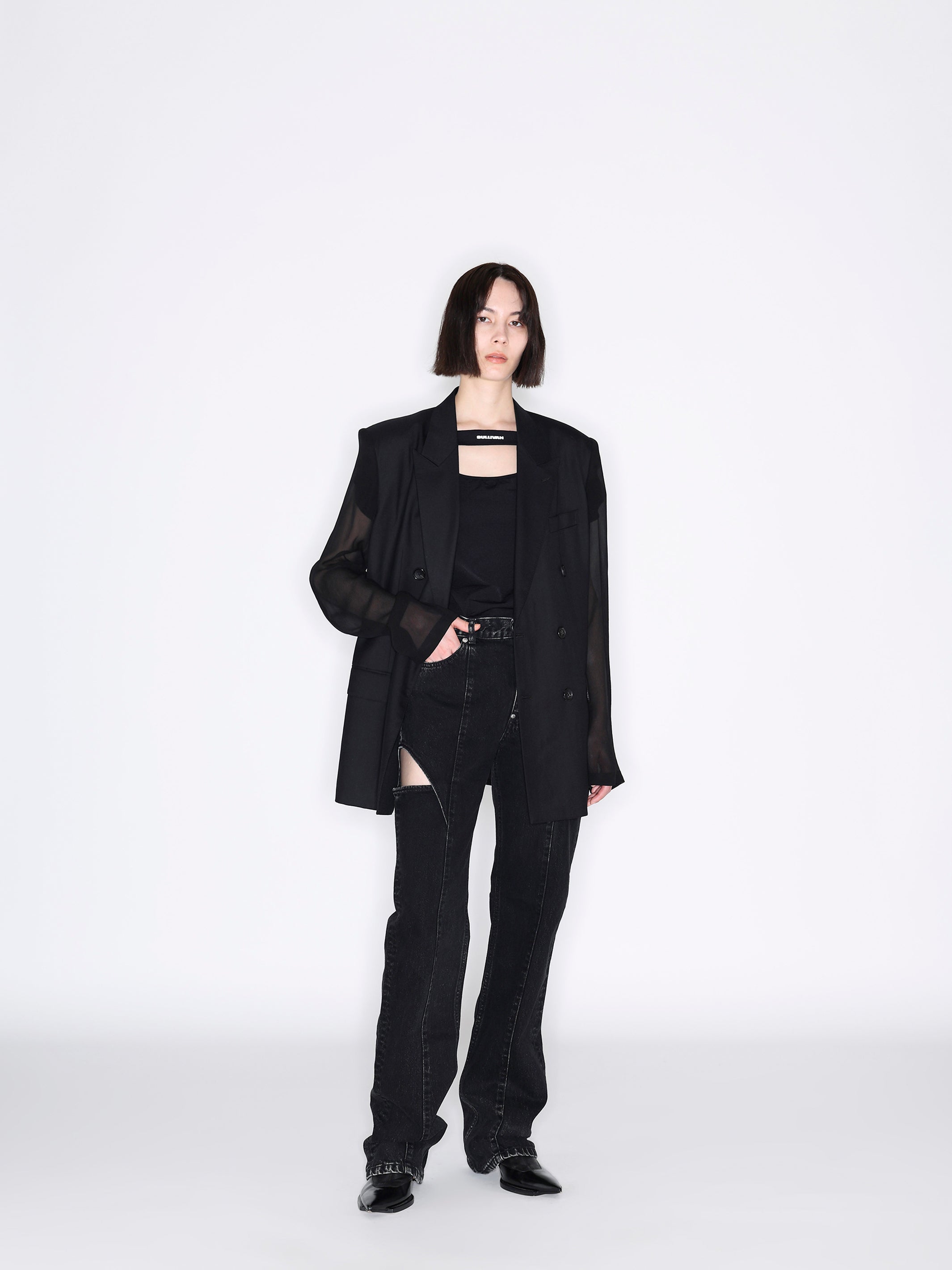 腿部分に入ったカットアウトディテールがポイントの5ポケットデニムパンツ。